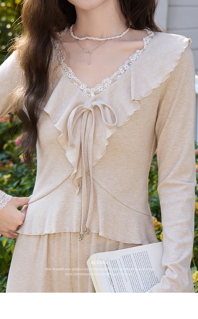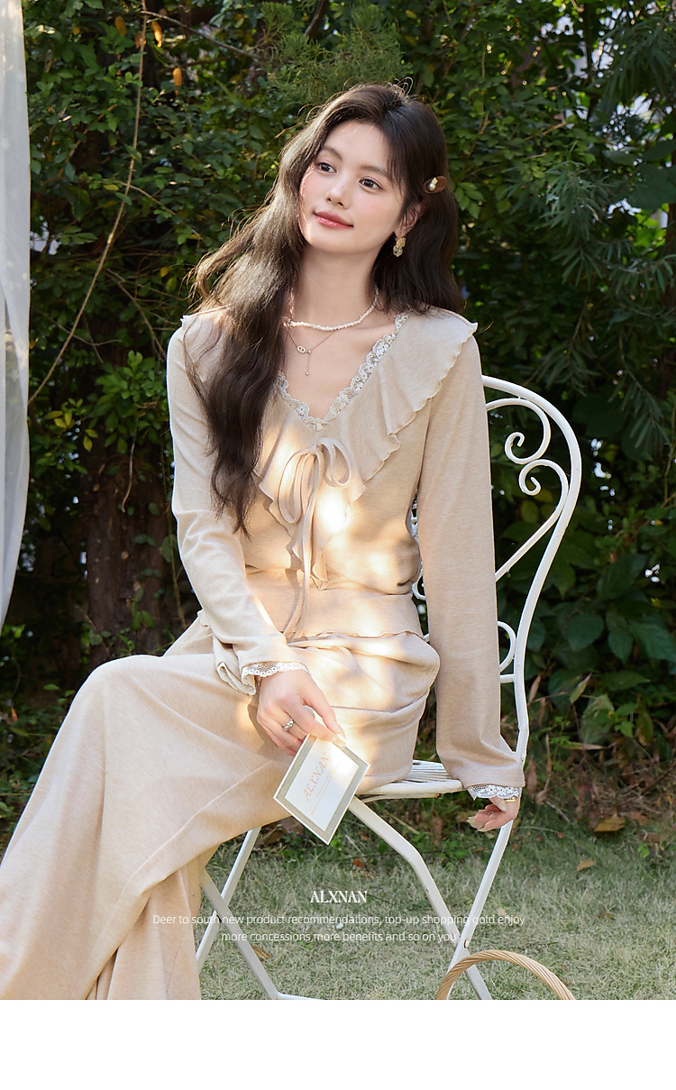 鹿向南「林间絮语」气质燕麦色时尚套装女春季长袖法式上衣两件套