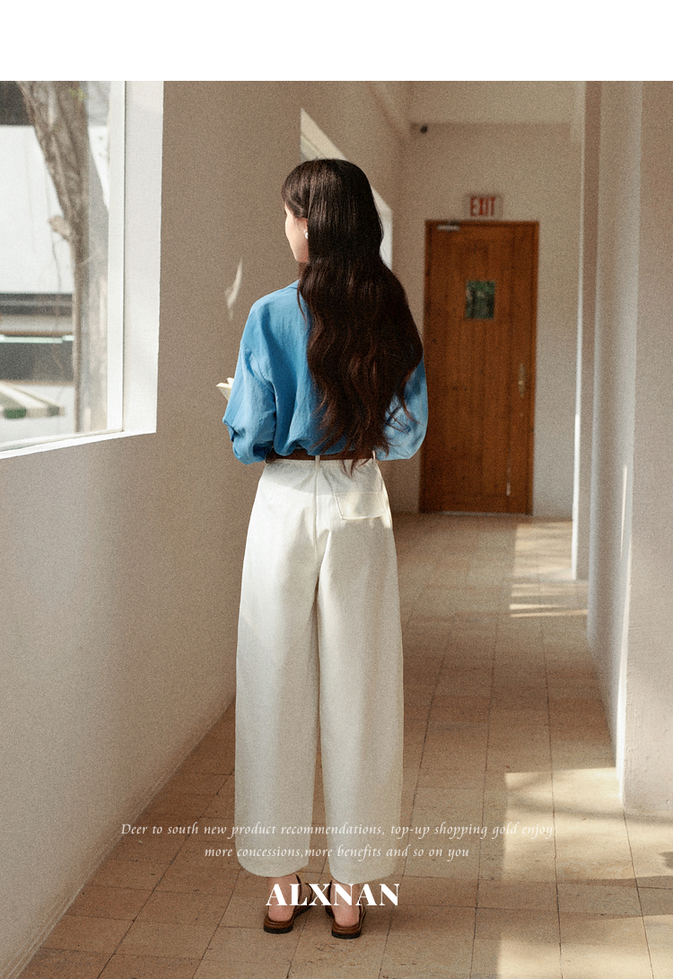 鹿向南「雾感墨色」百搭黑色阔腿牛仔裤女夏季新款宽松显瘦直筒裤