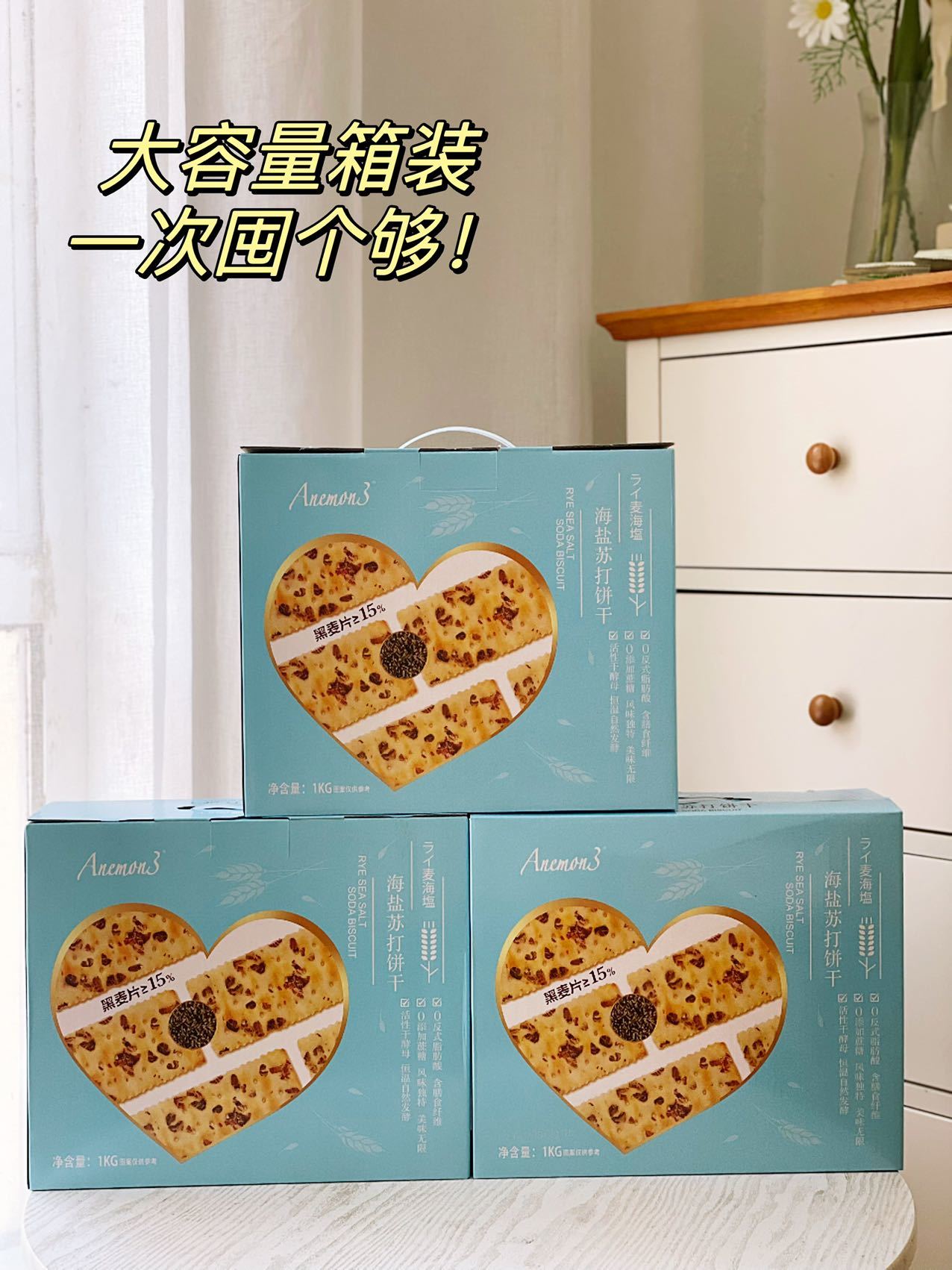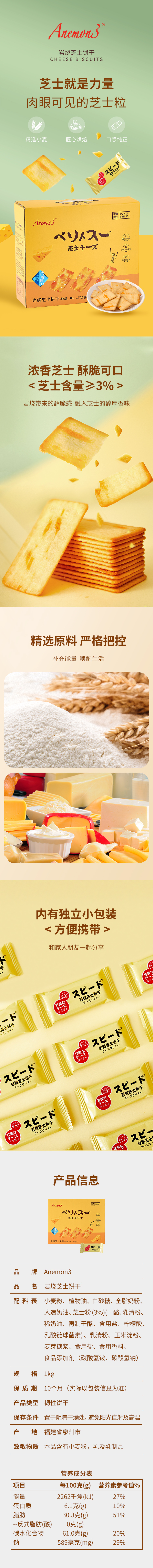 【品牌】Anemon3爱你们 【产品上架规格】 Anemon3爱你们黑麦海盐苏打饼干1kg Anemon3爱你们 比利时风味焦糖饼干1kg Anemon3爱你们9果薄脆饼干1kg Anemon3爱你们岩烧芝士饼干1kg 【规格】1kg礼盒装 【生产日期】 12月 【保质期】芝士 九果10个月 黑麦焦糖12个月 【发货地】浙江宁波 福建晋江 【产地】福建省泉州市 【发货时效】72小时 【发货快递】申通、邮政,圆通随机不指定发货 【不发地区】新疆,西藏及青海快递停发区域(以当天出单为准) 【加运费地区】北京+1元 【是否支持七天无理由退换货】不支持七天无理由 【产品是否有塑封】无 【拆开塑封是否支持退换】不支持 【拒收是否扣除来回运费】不扣 【是否拆分包裹发货】拍多份拆分 【售后说明】收货请当面验收,如遇到破损、少件、错发等情况,务必在签收24小时内申请售后,提报售后请提供快递面单图,产品问题图(所有的售后都基于提供照片或视频为凭证,未提供凭证或超过售后时效,不予处理,请理解!)