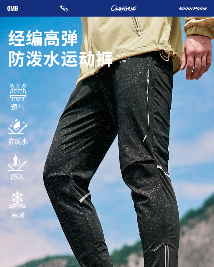OMG运动 【防泼水】跑步裤男休闲裤直筒运动裤户外裤子弹力透气
