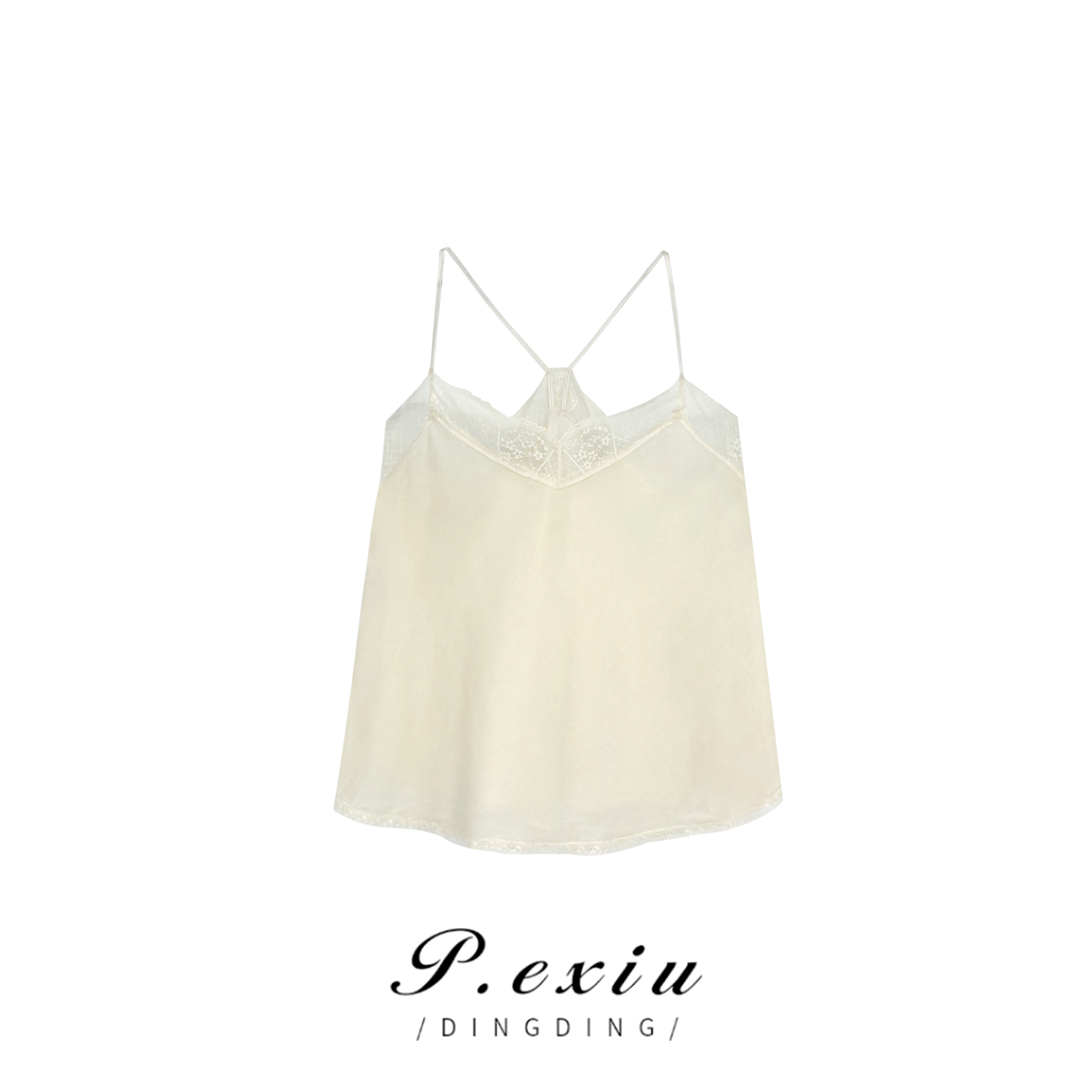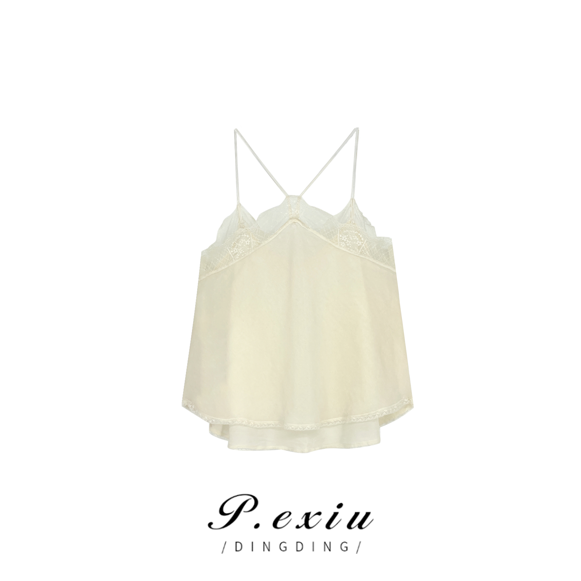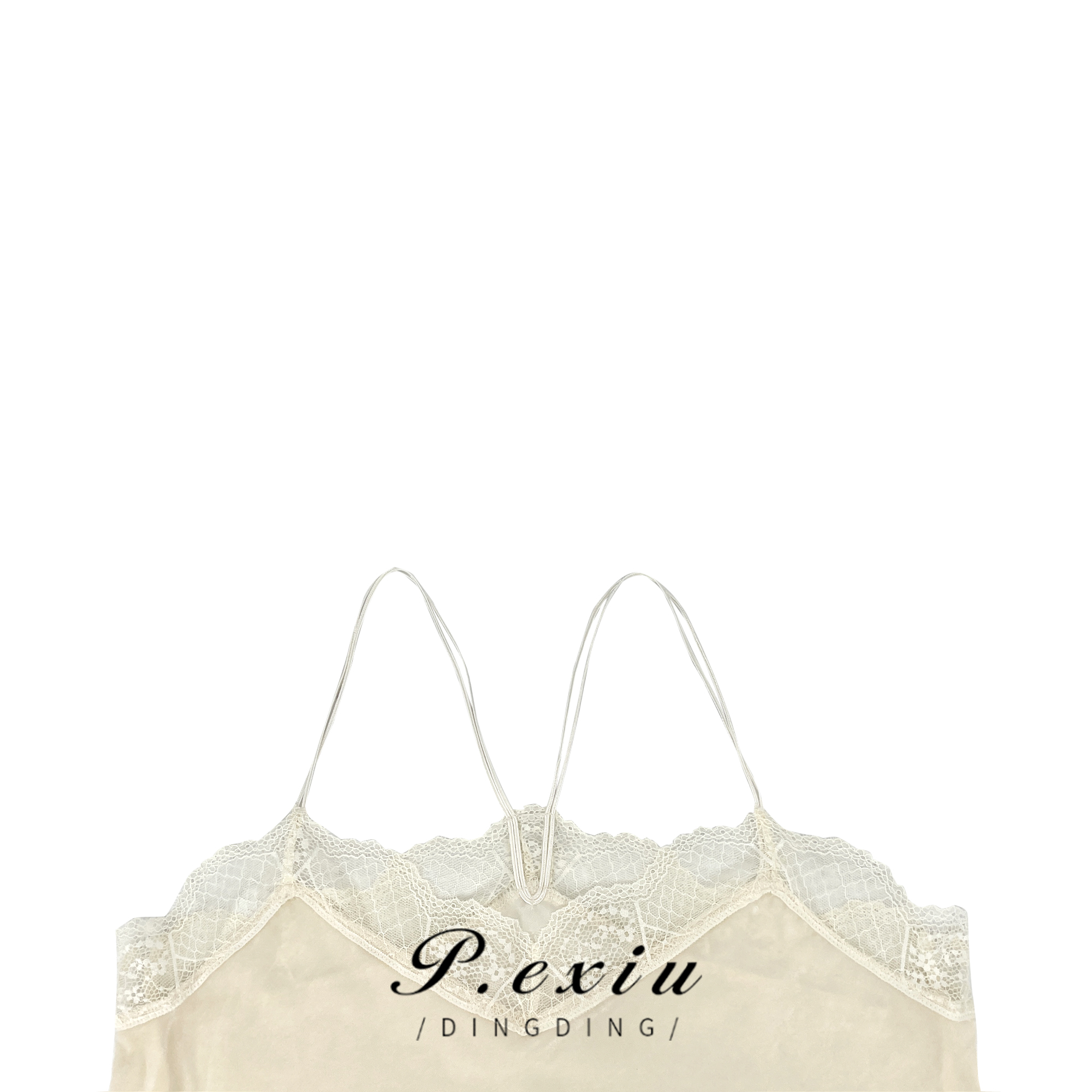 04-3潘依绣丁丁宠粉夏季蕾丝拼接气质丝绒吊带 Z1316