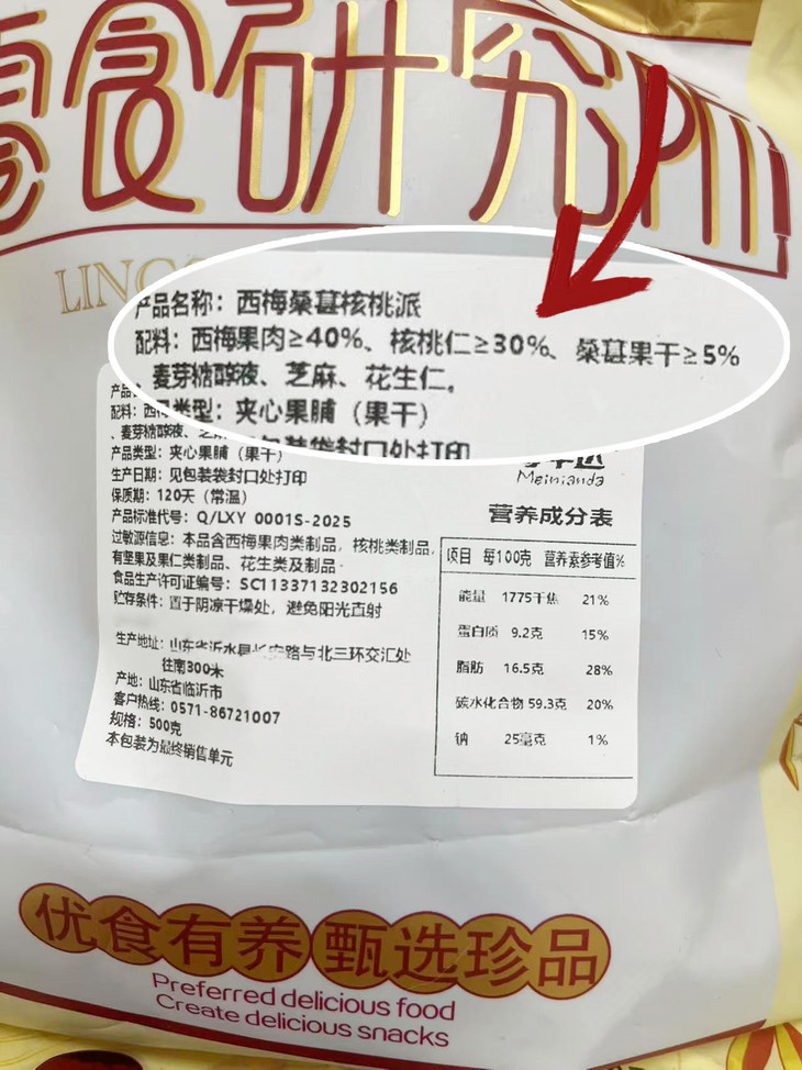 敲重点⚠️⚠️配料表真的很干净 西梅果肉≥40%,核桃仁≥30%,桑葚果干≥5%,麦芽糖醇液、芝麻、花生仁!!! 只有这些食材本身 🈚️防腐剂0️⃣添加吃得超安心~ 没有白砂糖这对于减脂期嘴馋的姐妹们来说! 简直就是福音啊!想吃甜食的时候来上一块,完全没有负担~