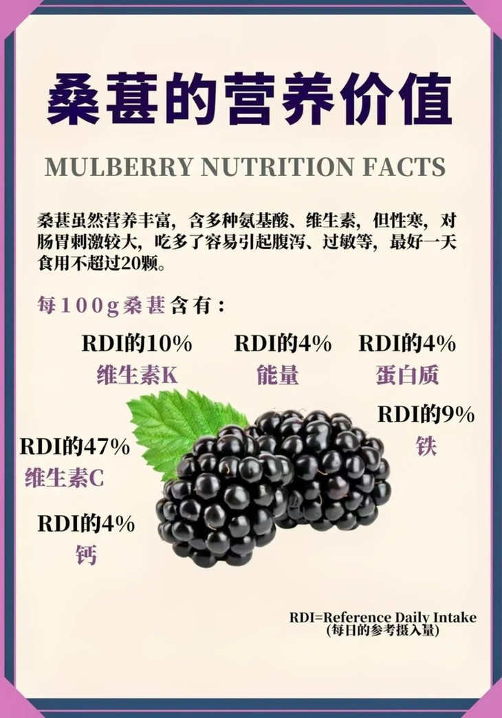 还有桑葚果干别看占比不算最高, 风味和营养却一点不含糊🍇! 桑葚可是个 “补血小能手”, 富含铁元素和花青素,能滋阴补血、美容养颜,女生吃了气色会越来越好。 而且它的抗氧化能力超强, 能帮我们对抗自由基,延缓衰老,谁能拒绝这样的 “天然护肤品” 呢?
