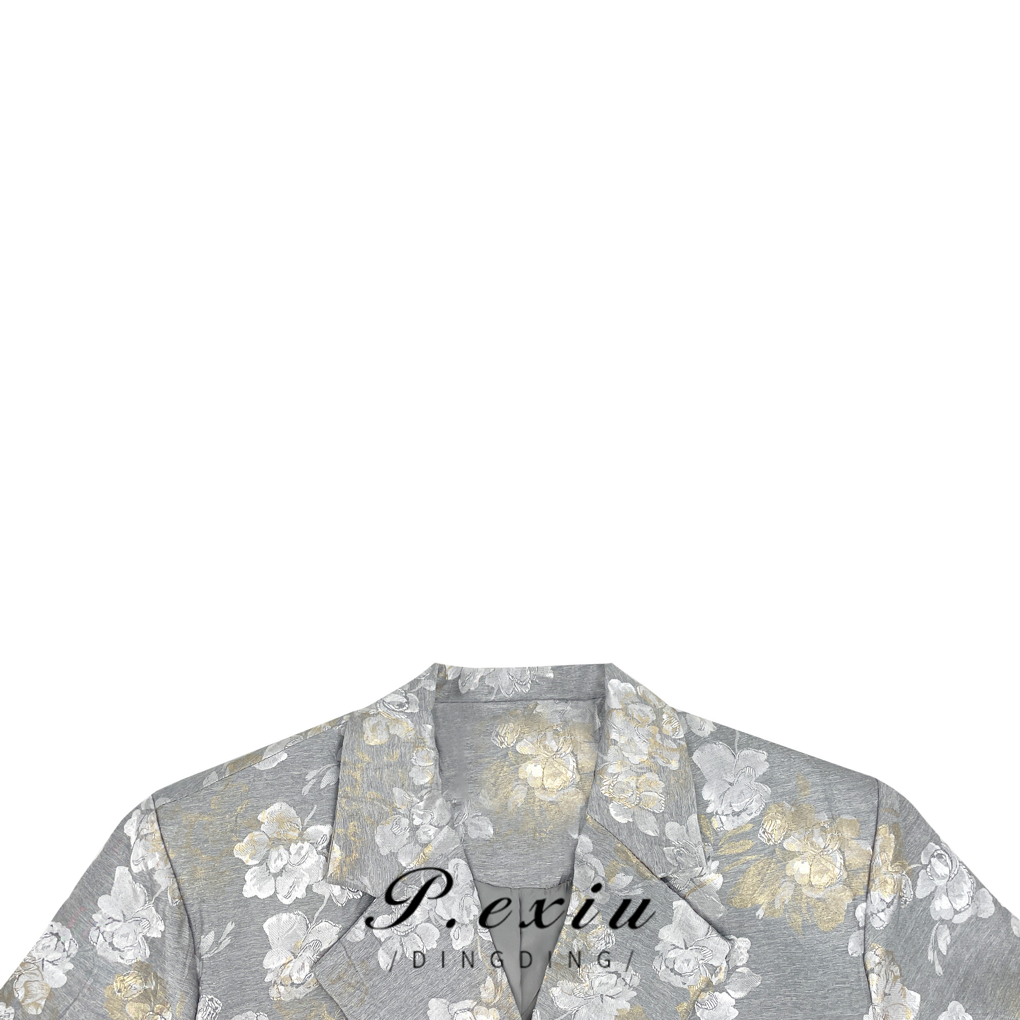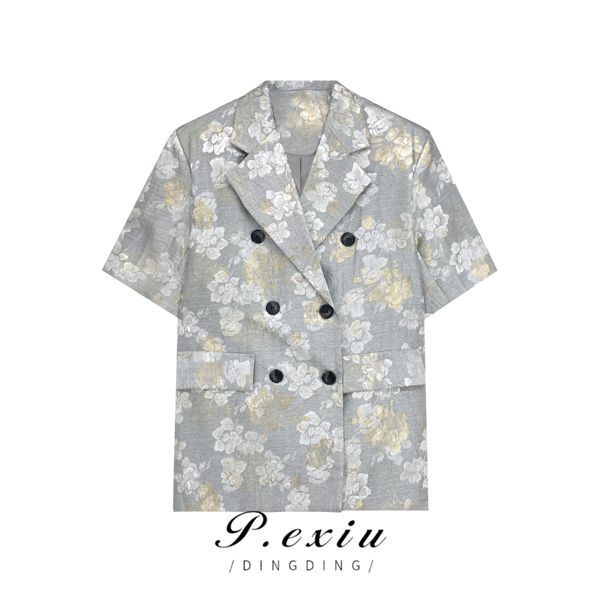 01-1 潘依绣丁丁宠粉夏季新款压花宽松时尚百搭短袖西装 K8143