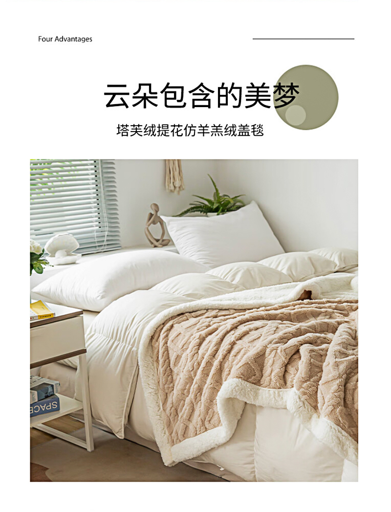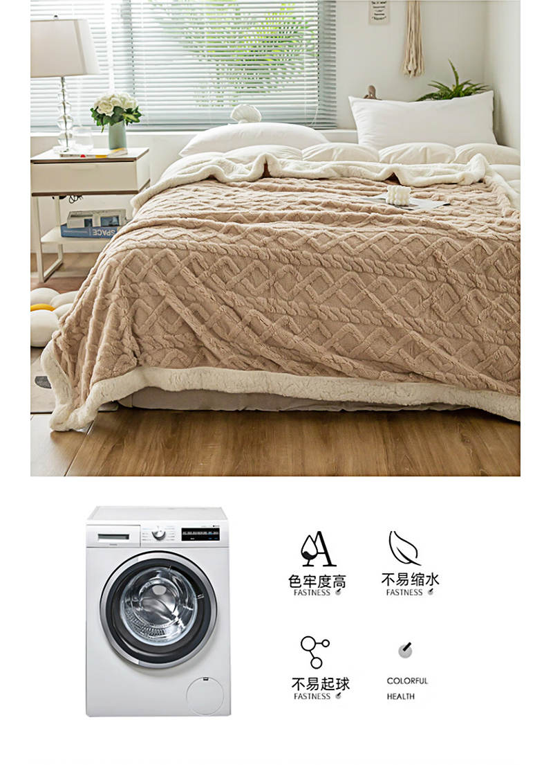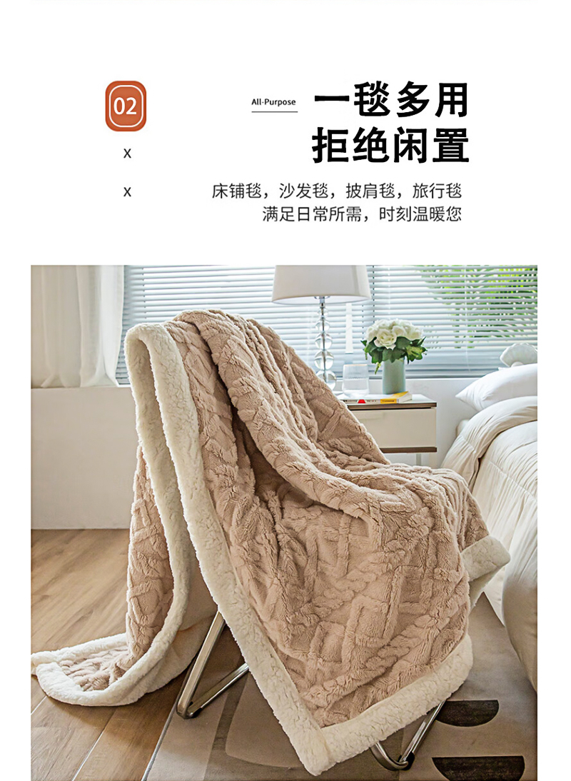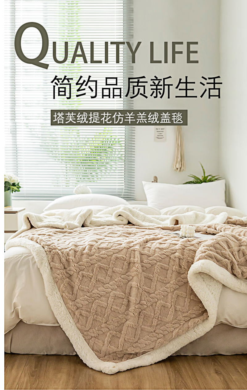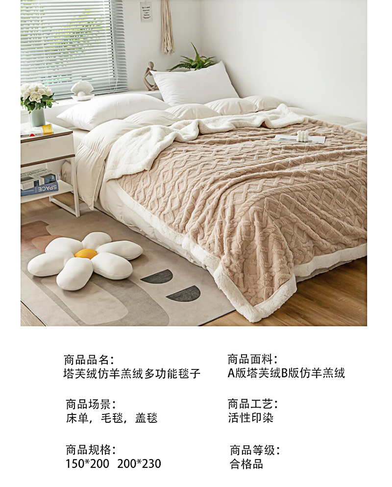 洁丽雅塔芙绒毛毯加厚2*2.3M2400G 卡其 JF-240001