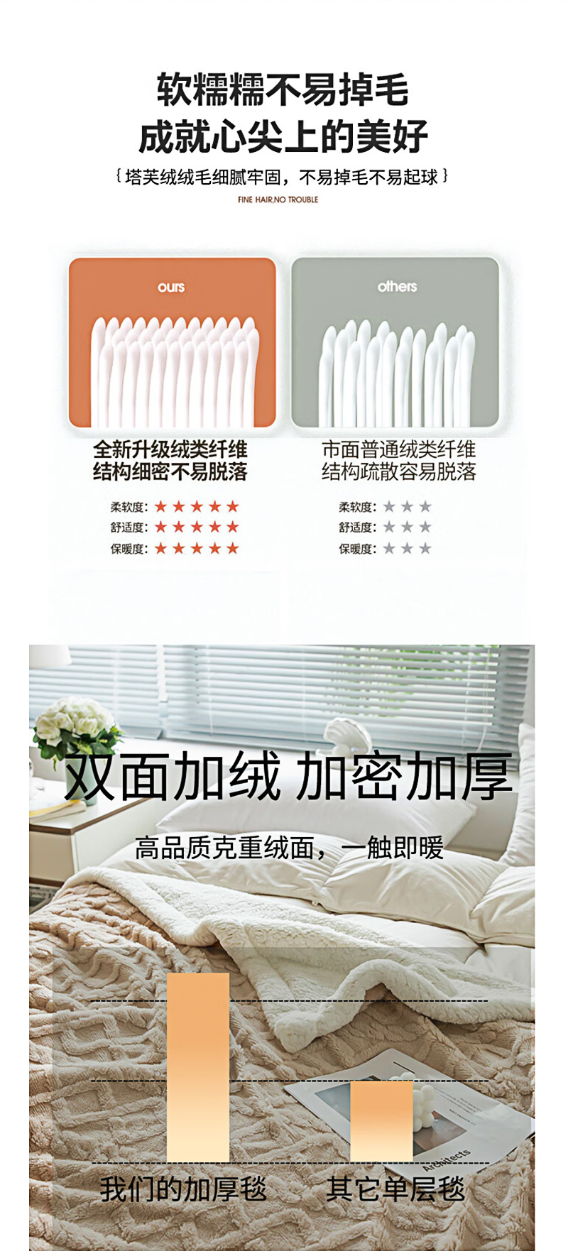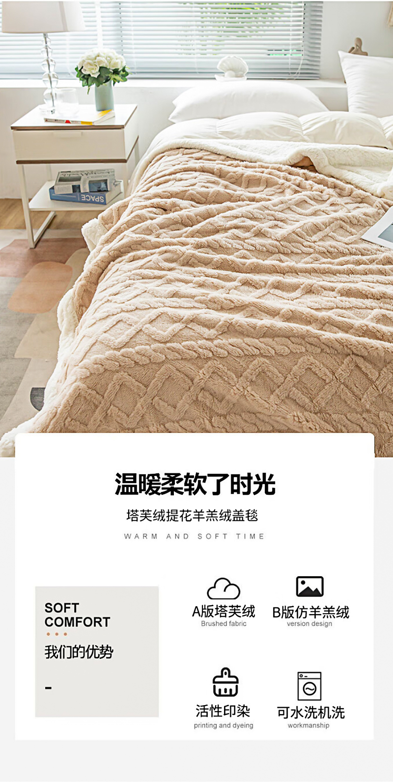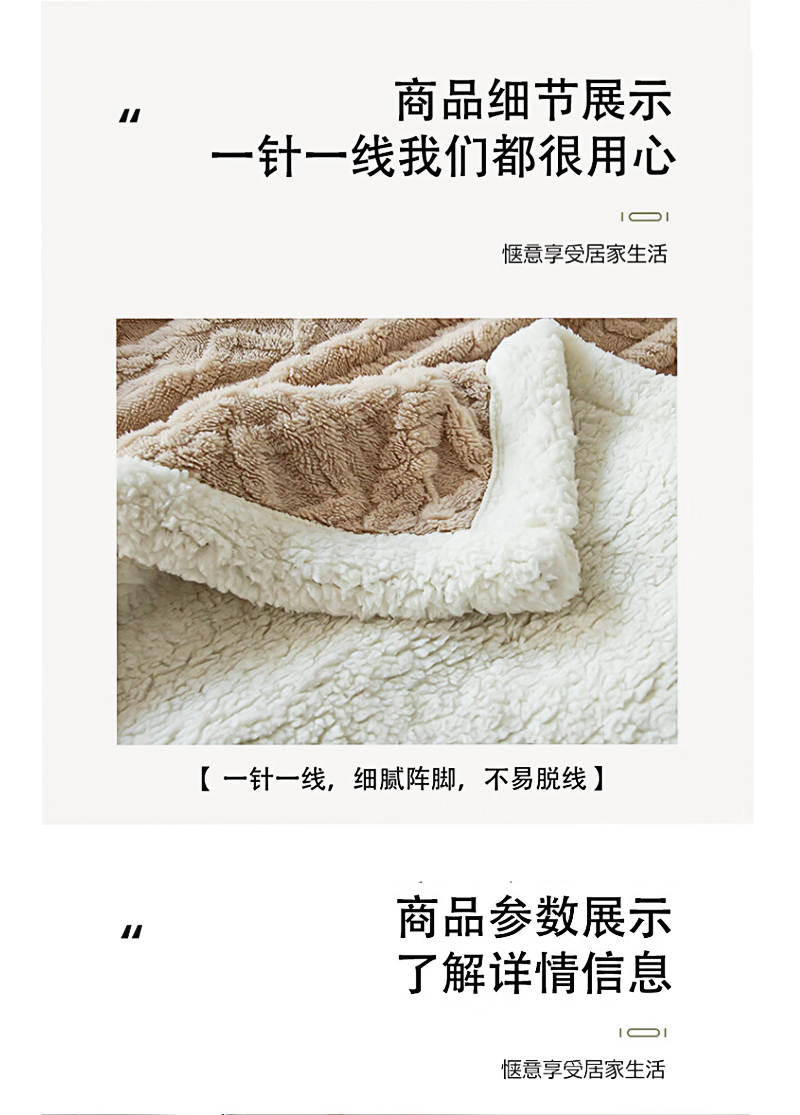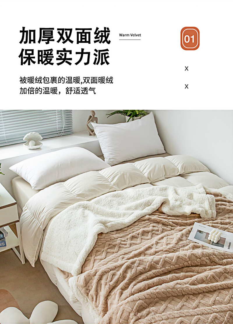 洁丽雅塔芙绒毛毯加厚2*2.3M2400G 卡其 JF-240001