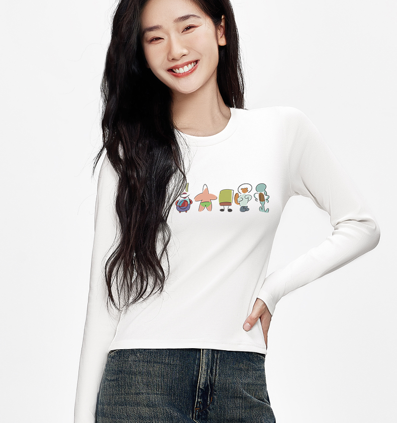 「棉的美学」 修身打底可外穿长袖T恤女印花秋季舒适柔软百搭上衣