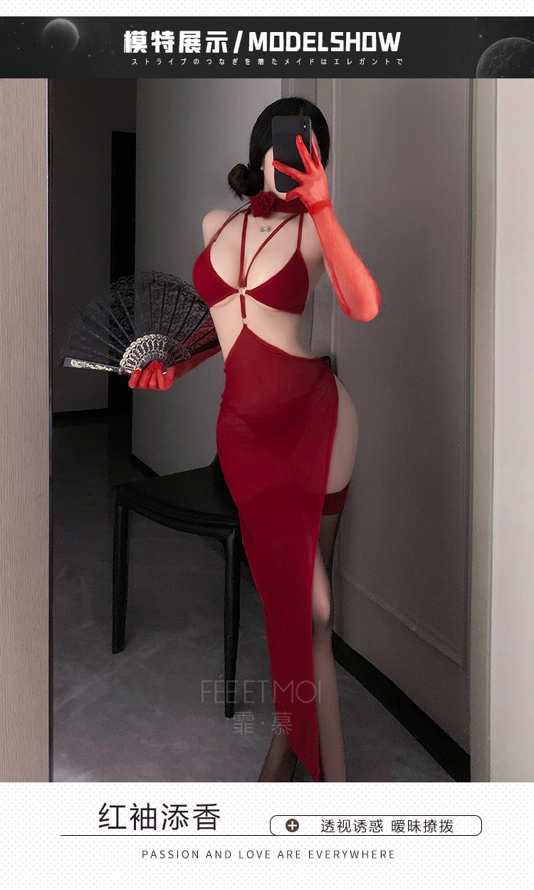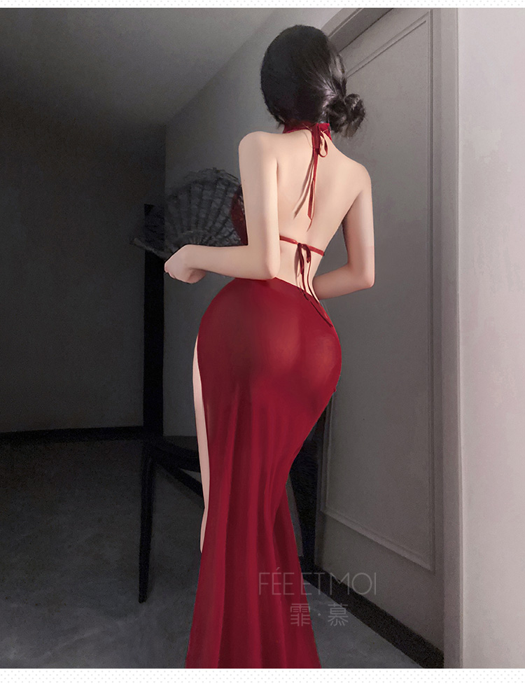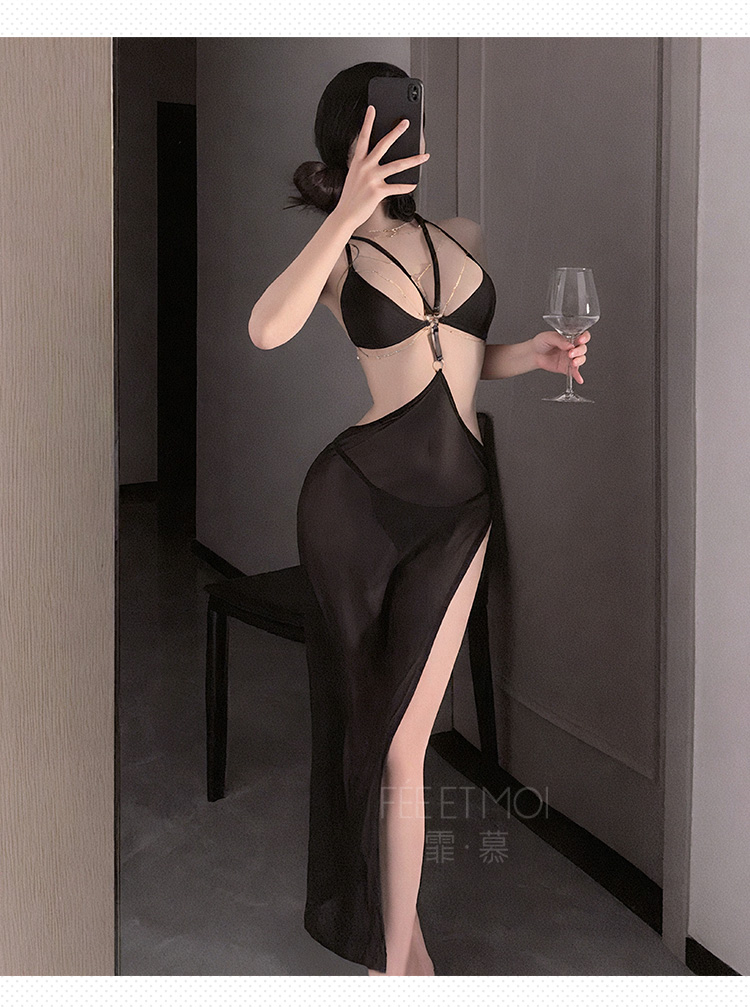 【情趣内衣】霏慕 迷迭花漾挂脖网纱睡裙6526