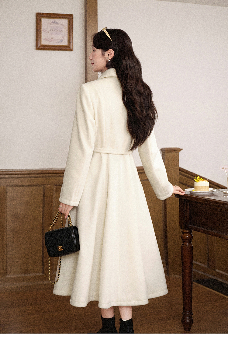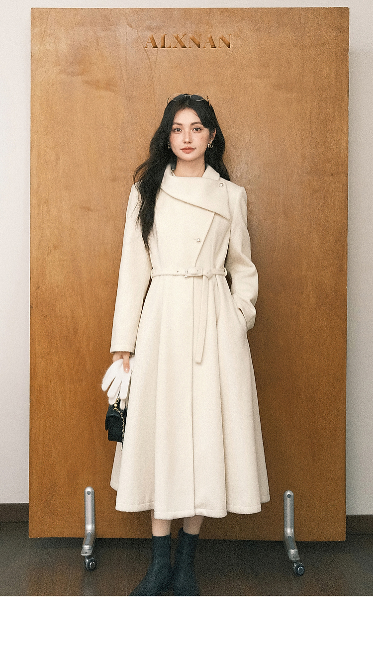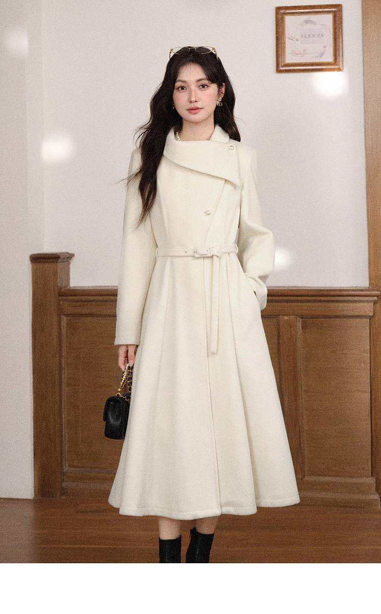 鹿向南「海岛热恋」秋冬装新款气质杏色毛呢外套长款呢子连衣裙女