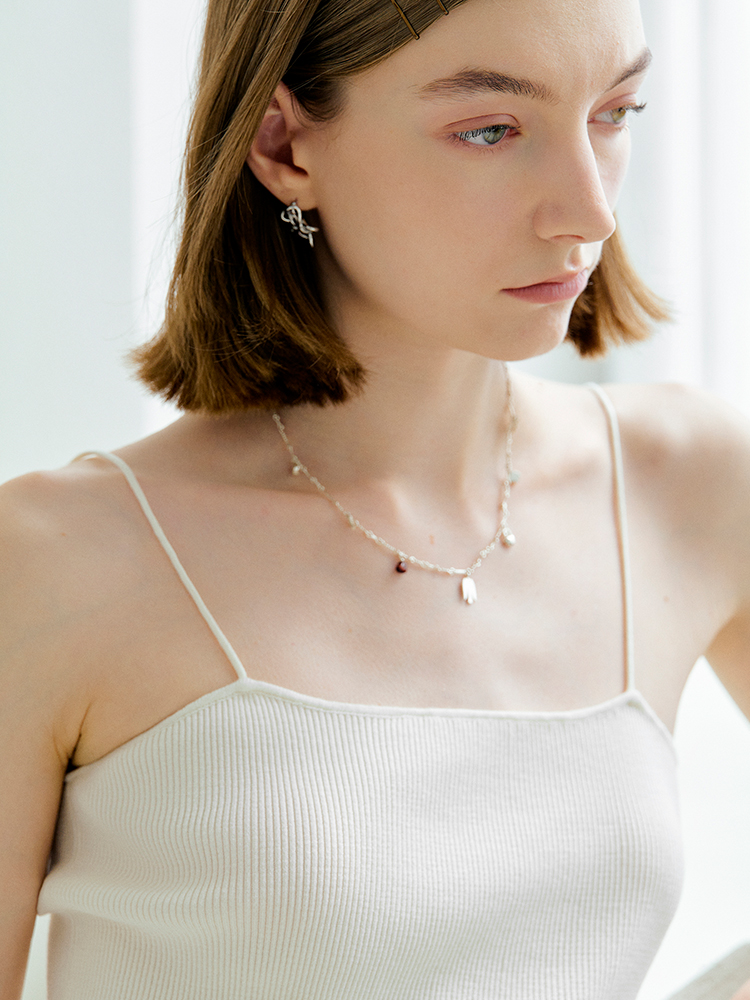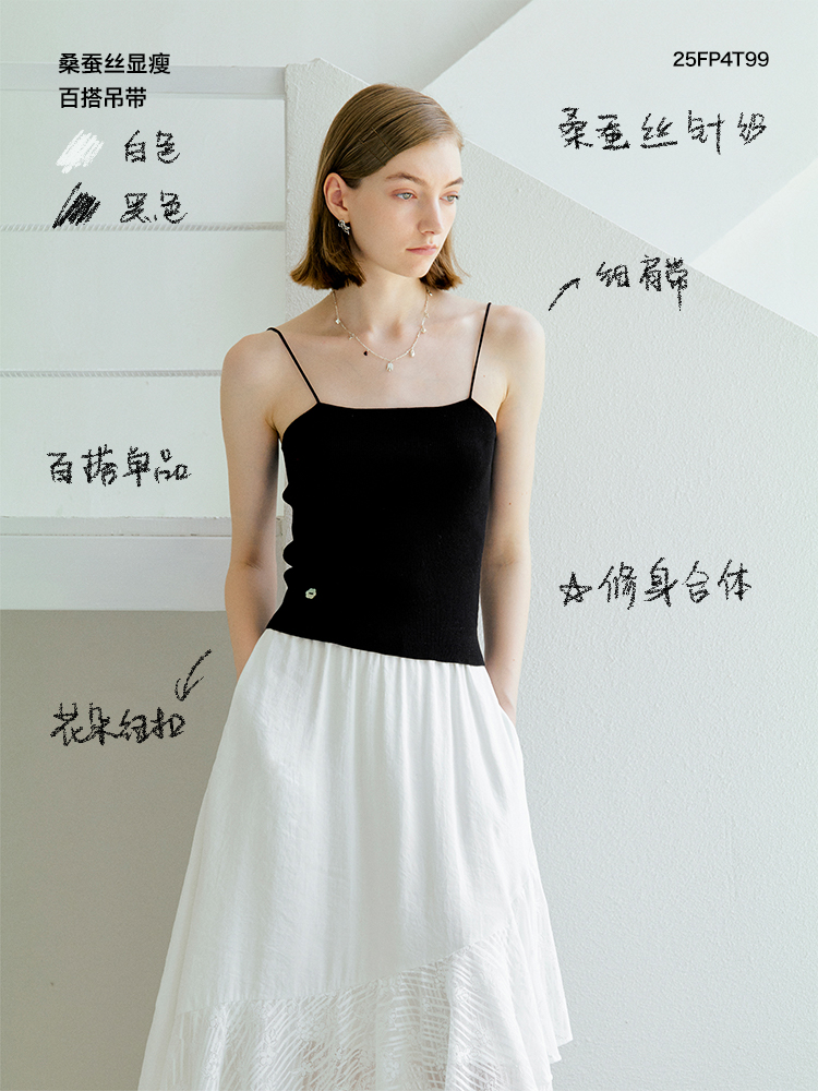 ForPoem 现货 25/SS原创设计桑蚕丝花朵纽扣百搭吊带背心