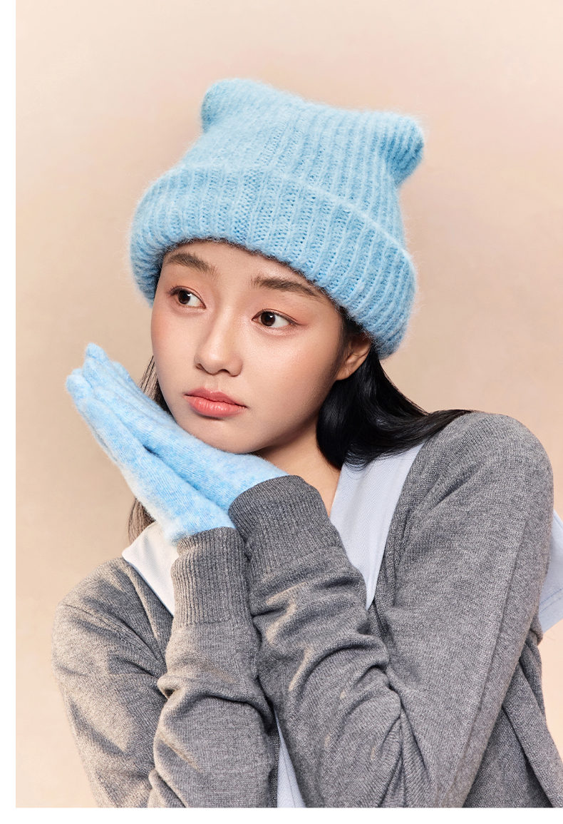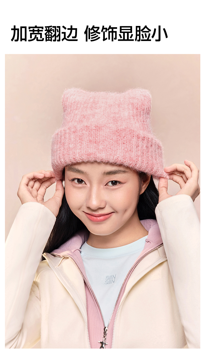 SIINSIIN猫耳朵帽子女25新款秋冬季保暖大头围针织毛线冷帽显脸小