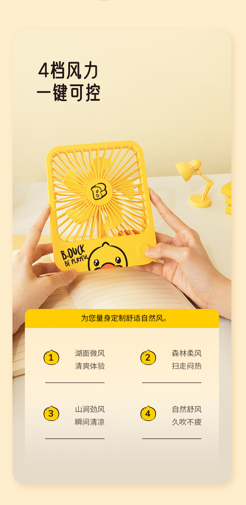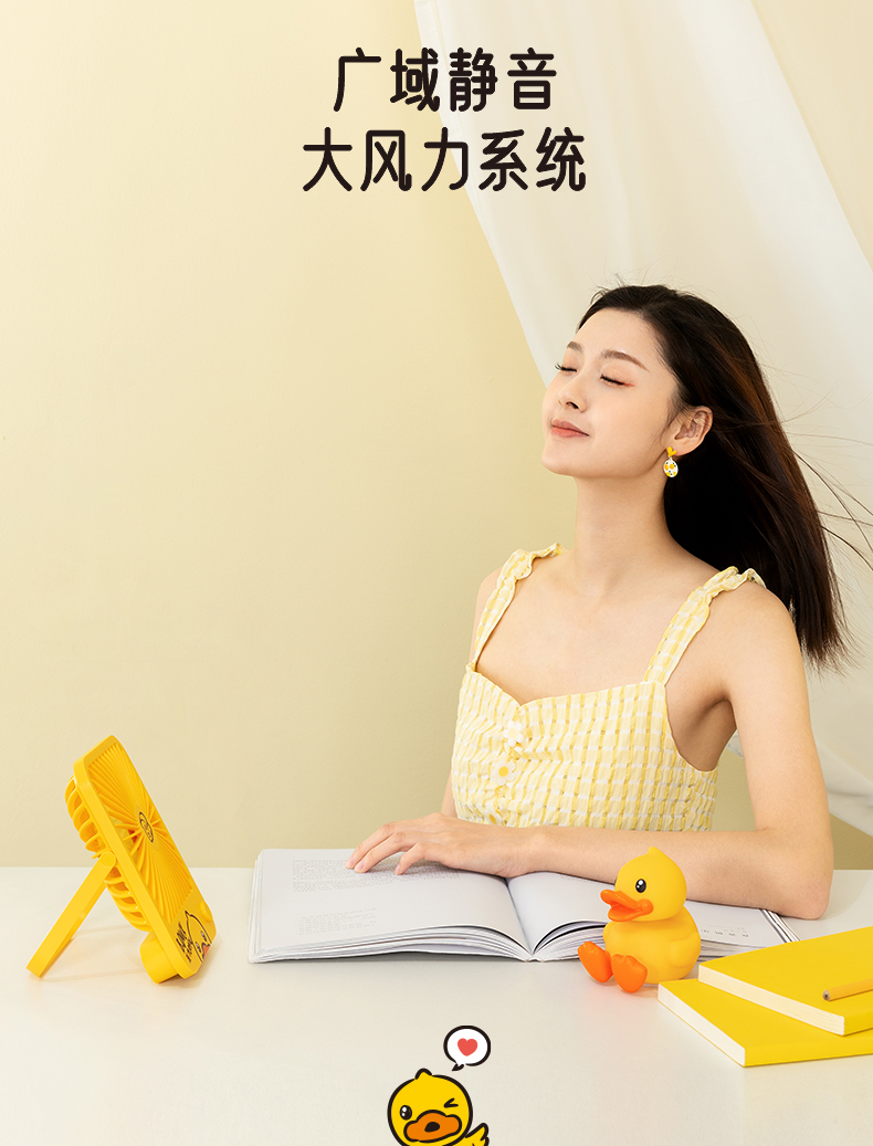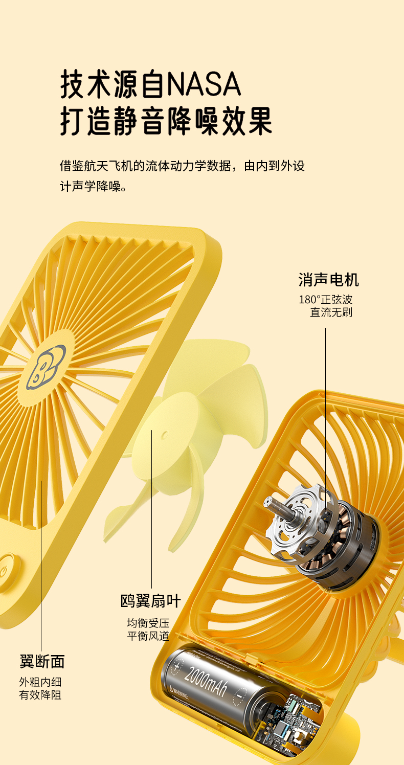 几素小风扇桌面轻音办公室桌上学生宿舍床上迷你便携式充电无线超长续航床头超薄折叠消音手持电扇台扇【小黄鸭联名款】2000毫安I顶配降噪I轻薄折叠