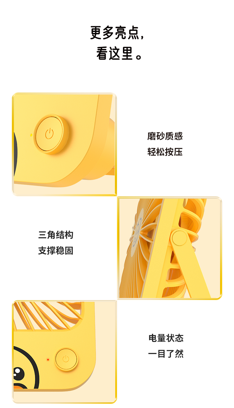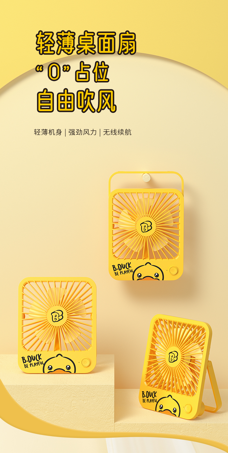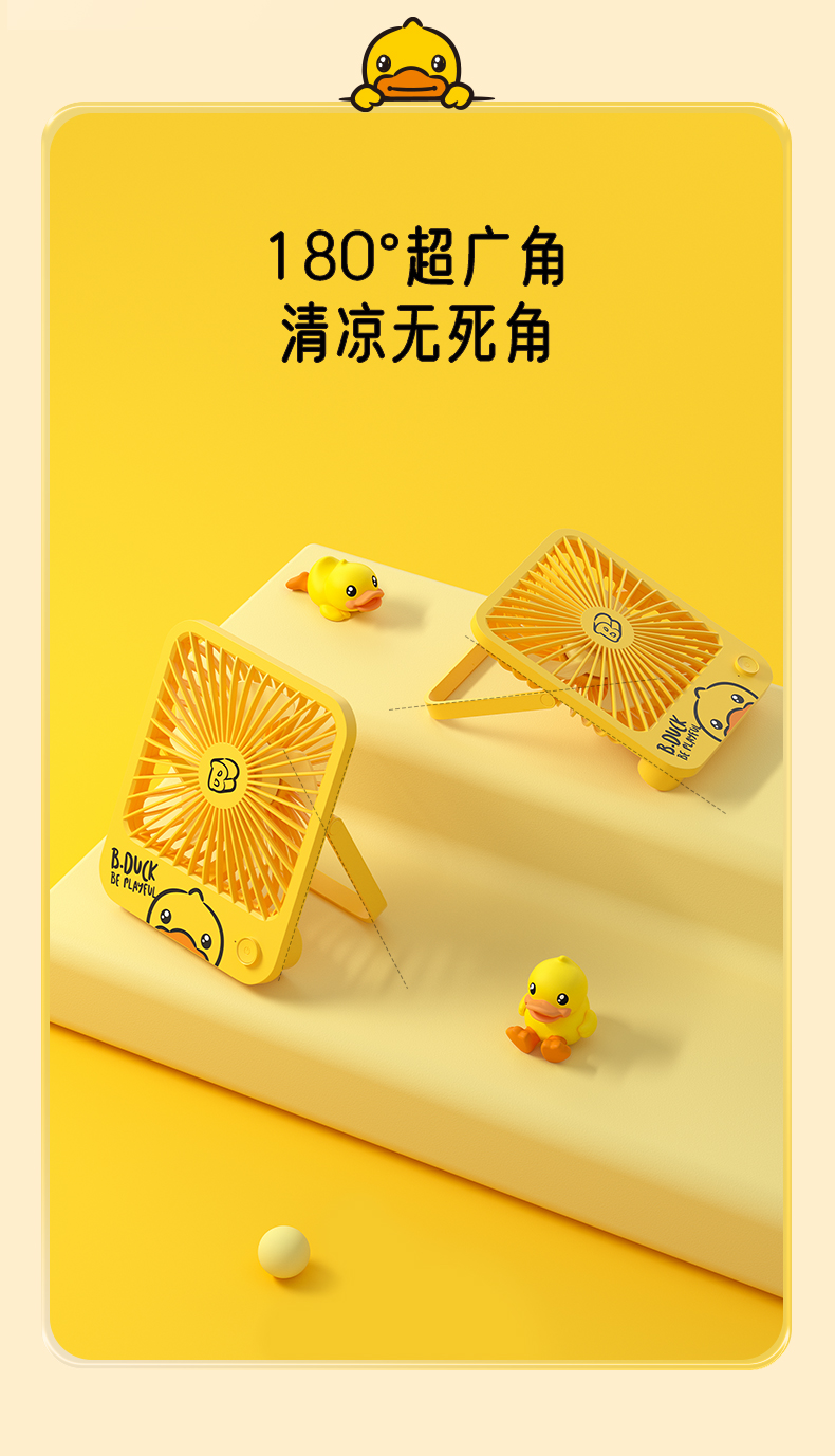 几素小风扇桌面轻音办公室桌上学生宿舍床上迷你便携式充电无线超长续航床头超薄折叠消音手持电扇台扇【小黄鸭联名款】2000毫安I顶配降噪I轻薄折叠
