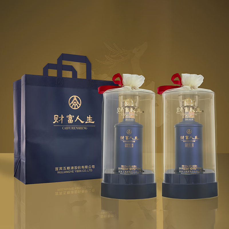 【单瓶133.1】五粮液股份 财富人生蓝韵 52度 浓香型白酒 500ml*6瓶整箱