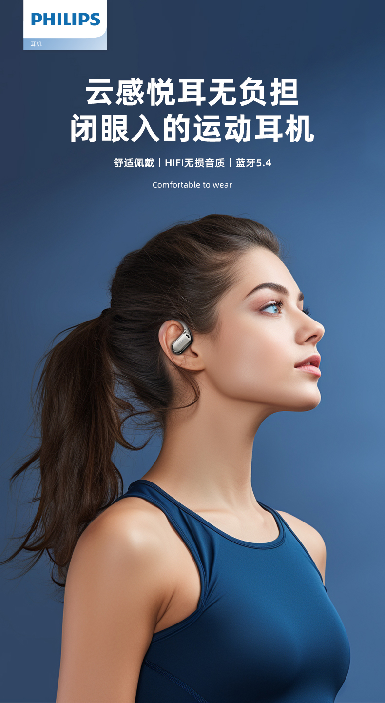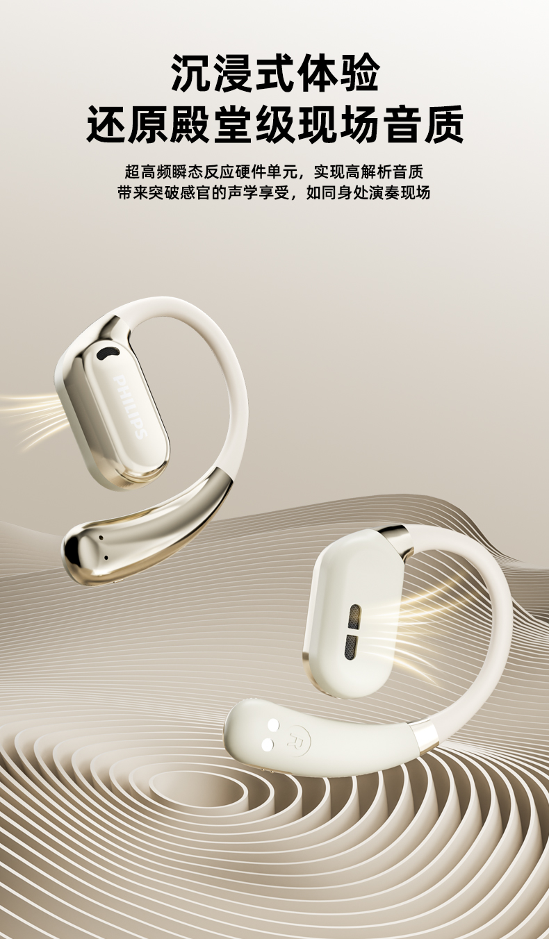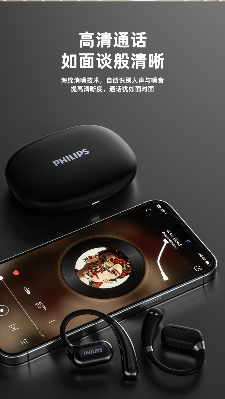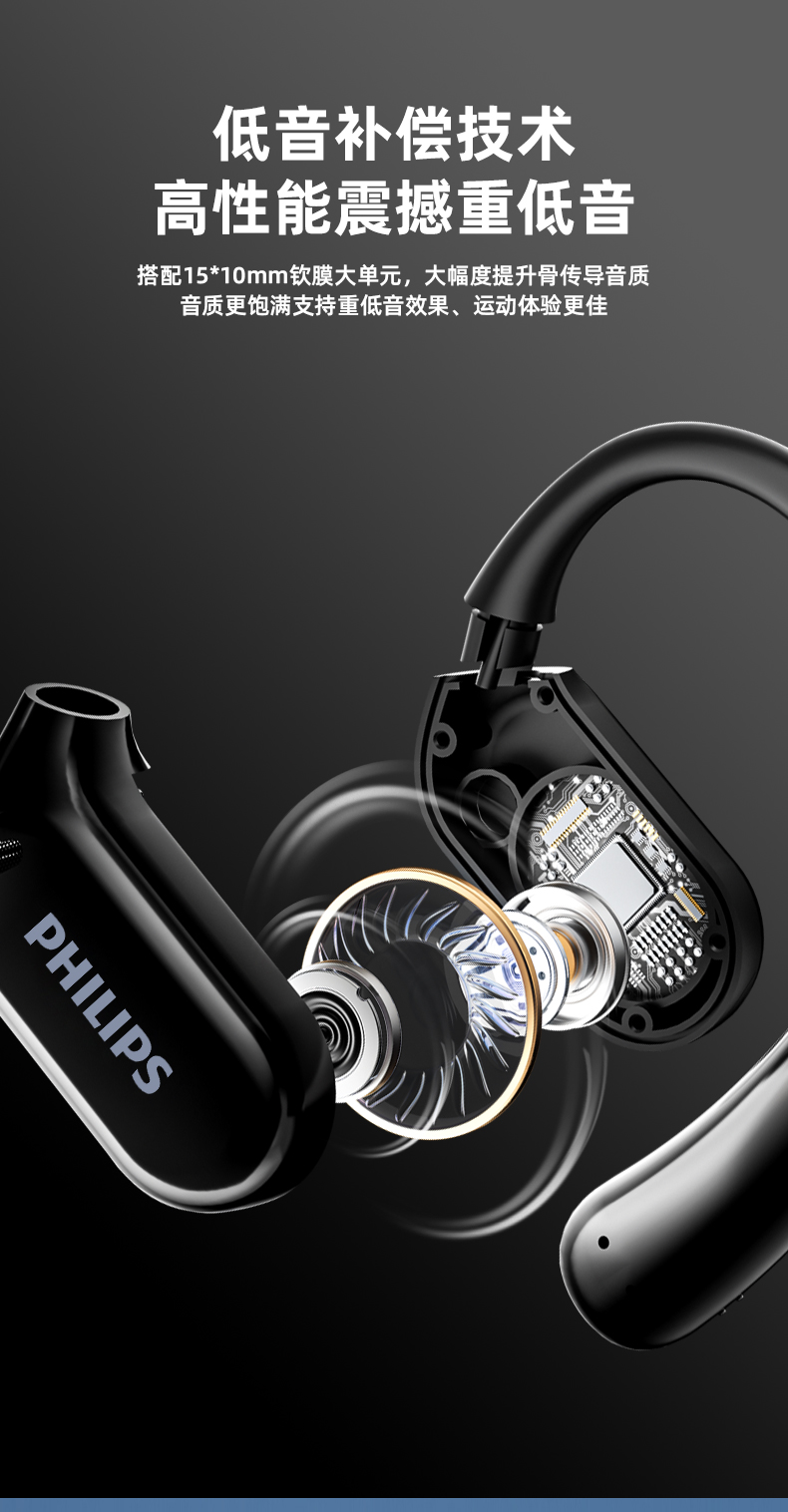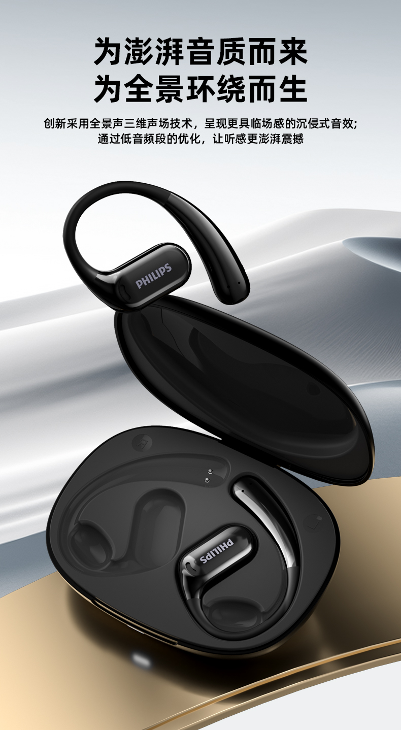飞利浦 舒适圈蓝牙耳机TAT3739 真无线挂耳开放式运动跑步耳机