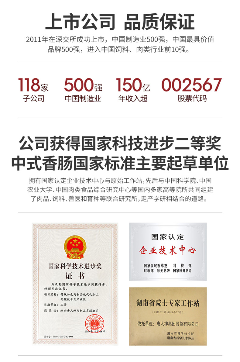 唐人神 牡丹王香肠500g湖南微咸口味腊味腊肠