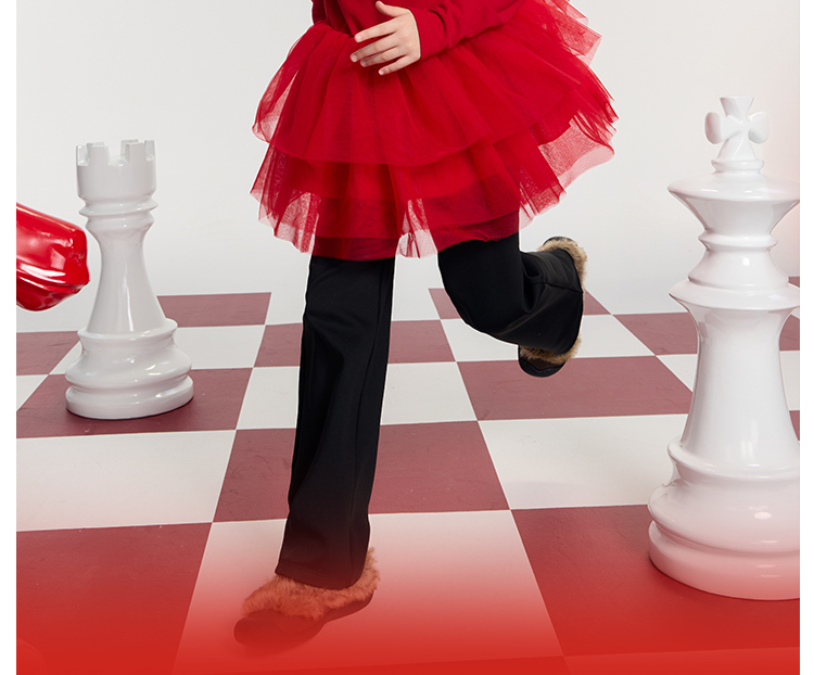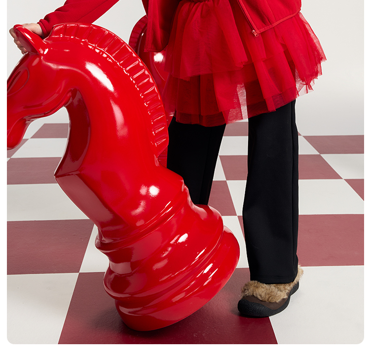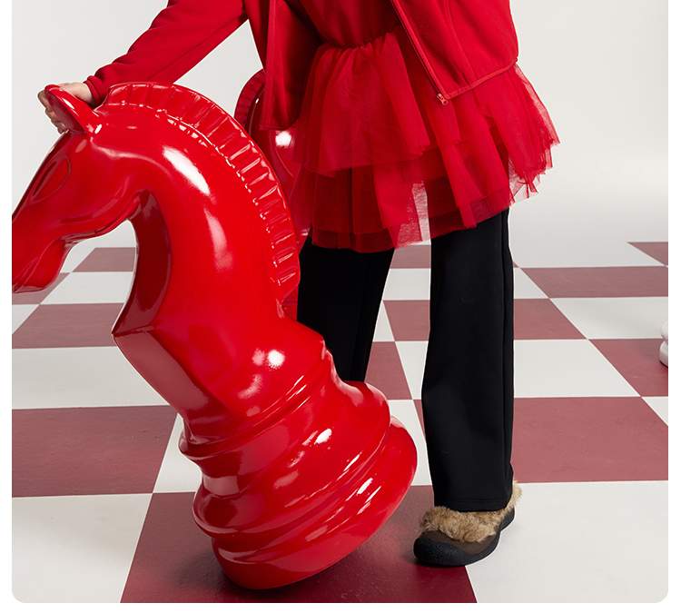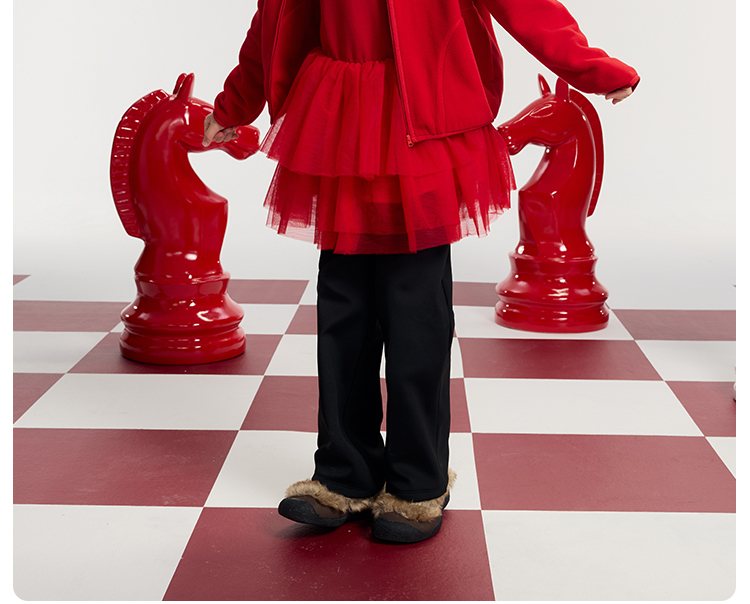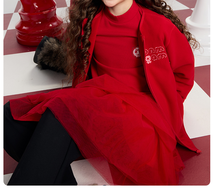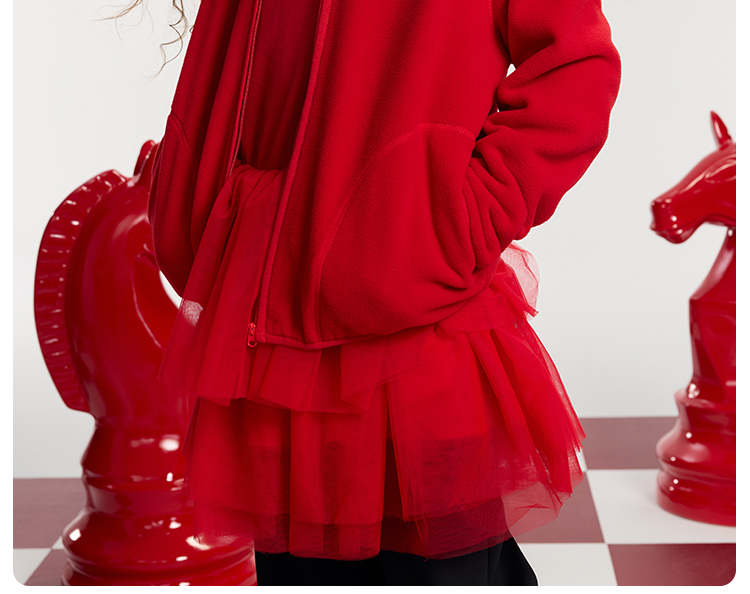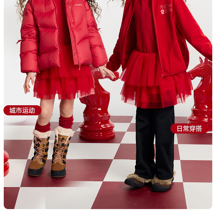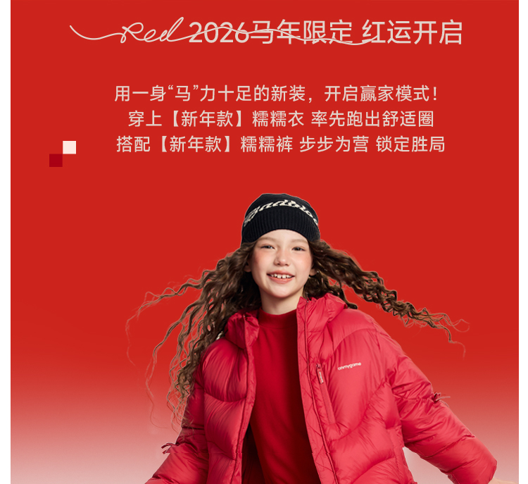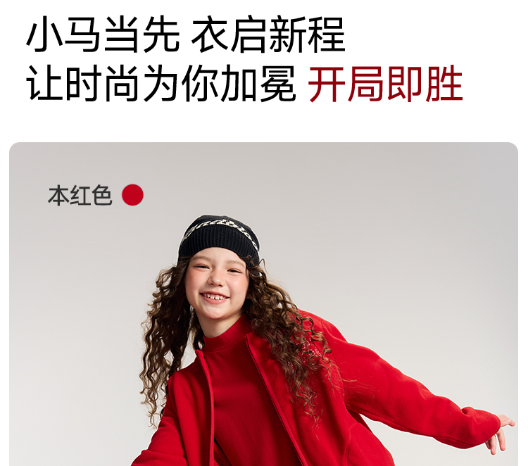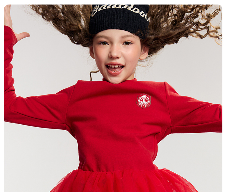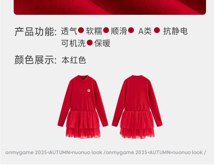 onmygame新年限定【小马当先】女童糯糯衣拼接连衣裙红色新年26新款