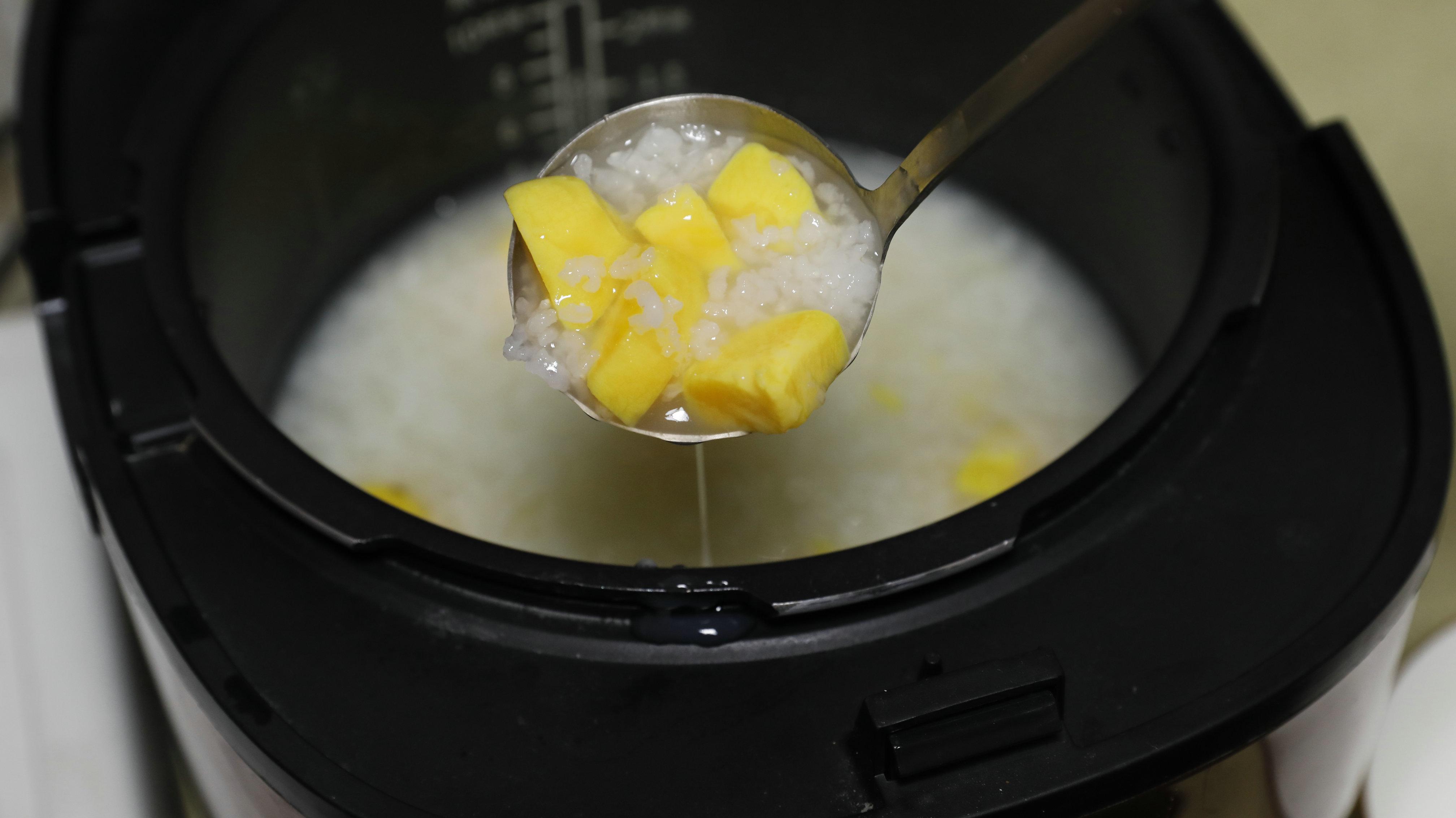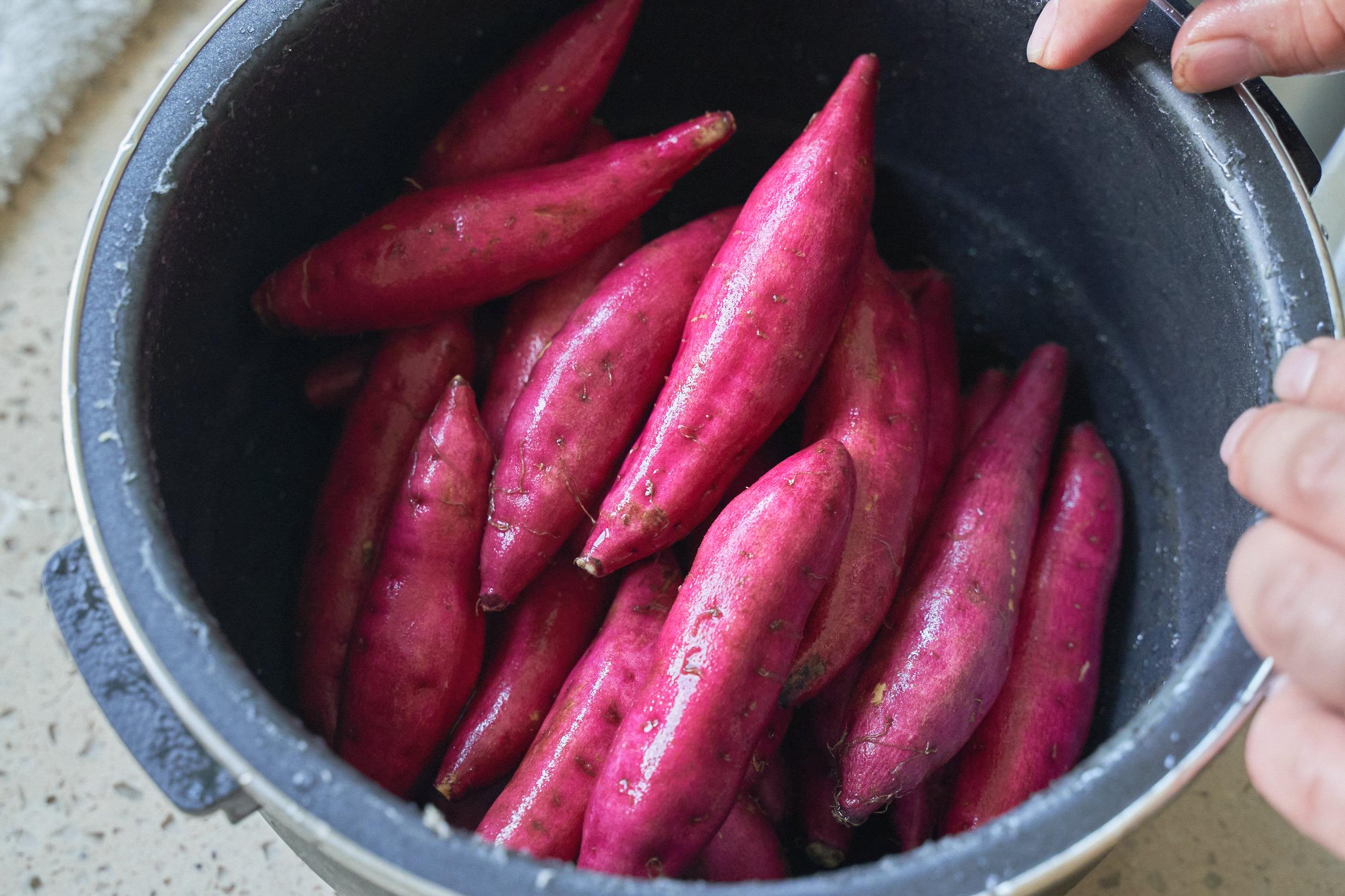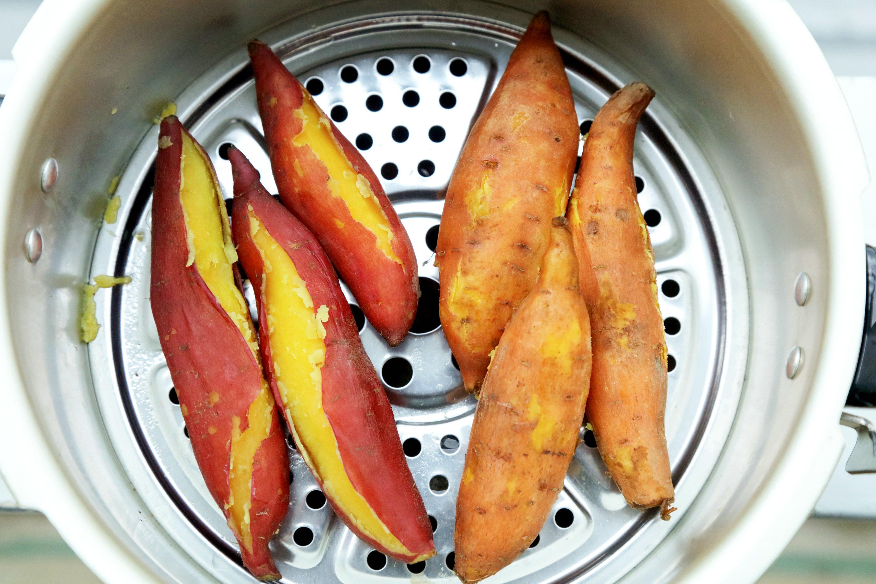 直接放在米饭上面,米饭好了,香薯也熟了。