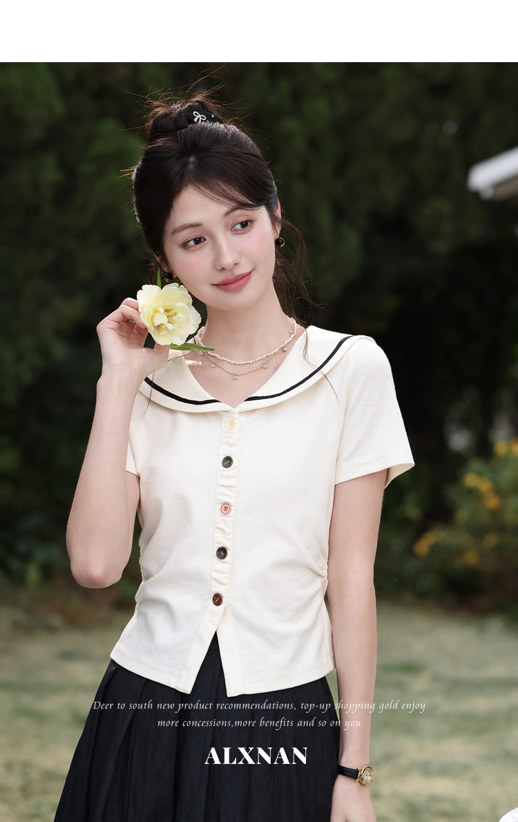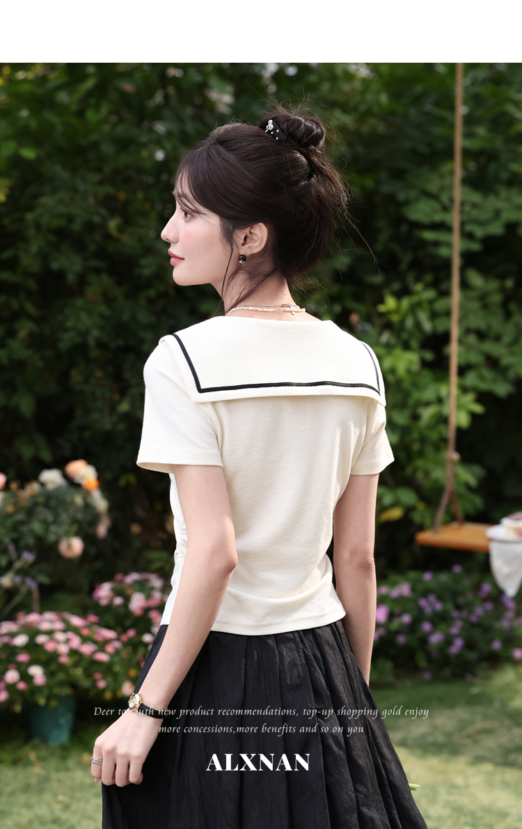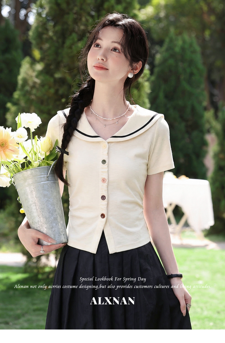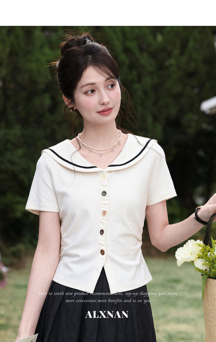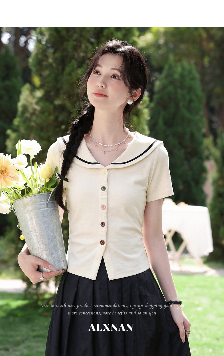 鹿向南「航海微风」杏色减龄学院风T恤女夏季新款韩系氛围感上衣