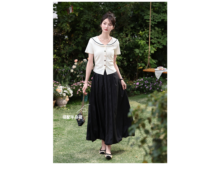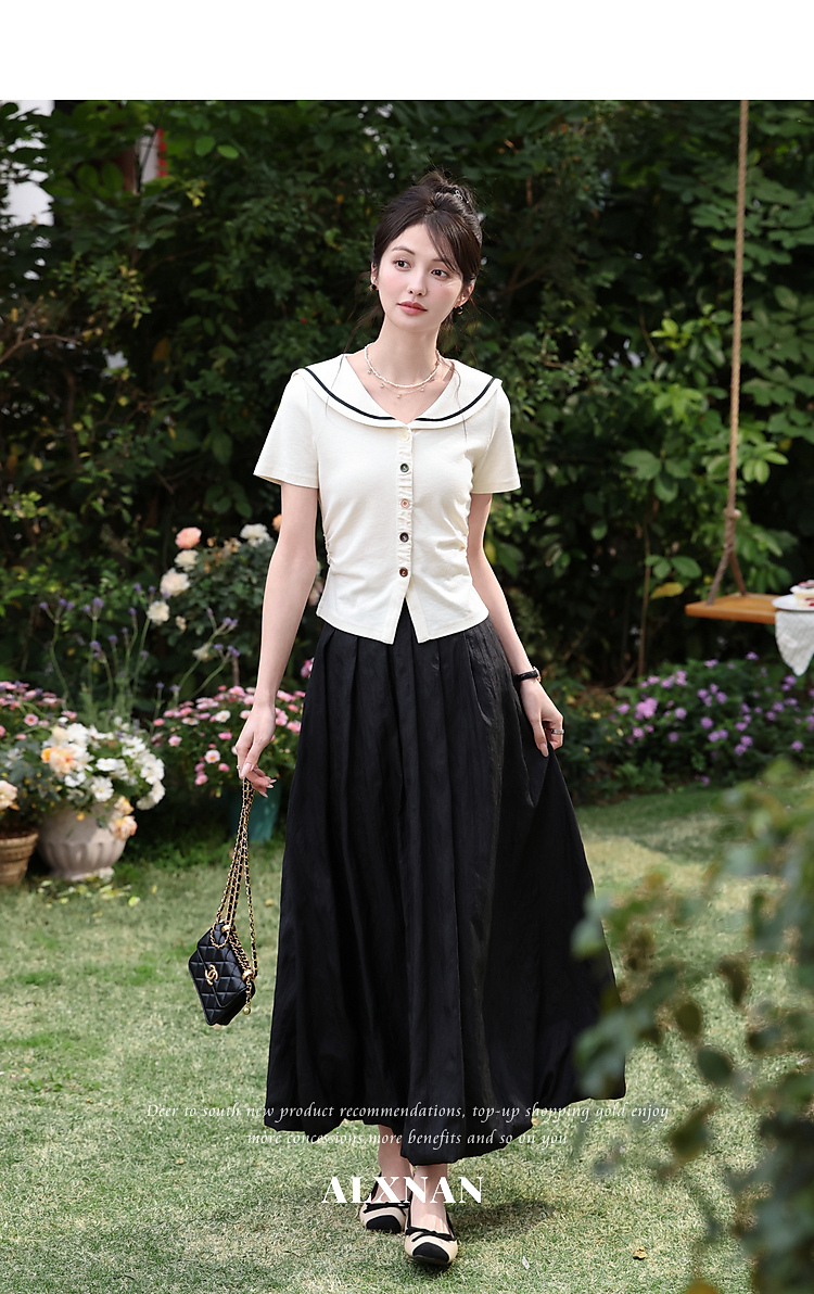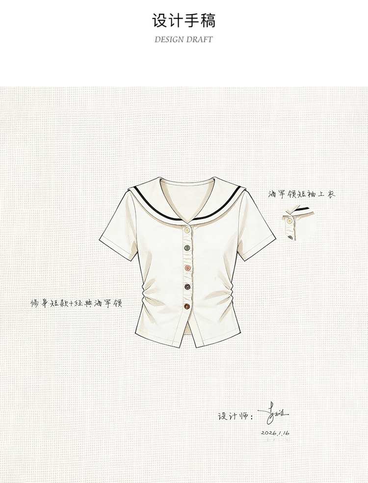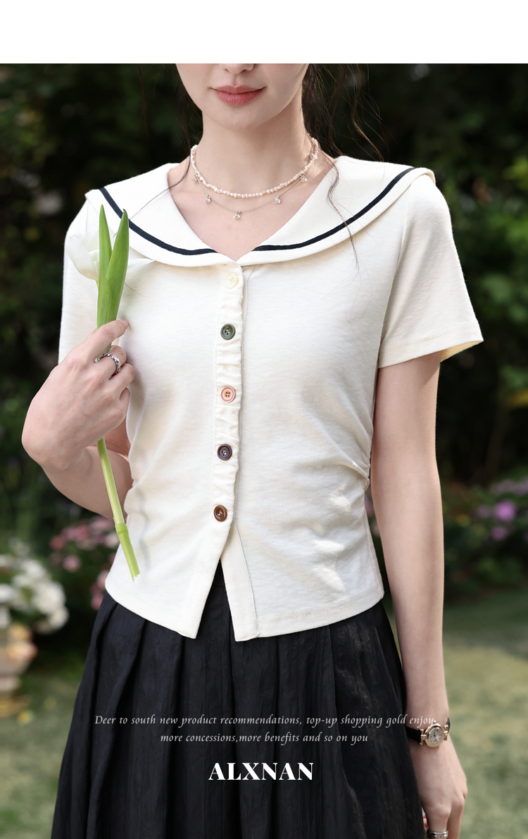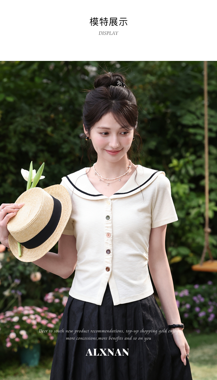 鹿向南「航海微风」杏色减龄学院风T恤女夏季新款韩系氛围感上衣