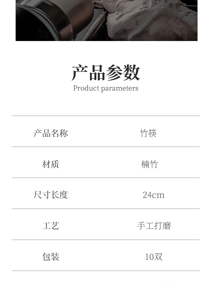 【品名】碳化竹筷(24cm)【规格】10双/袋*2袋【保质期】5年【生产日期】随批次更新