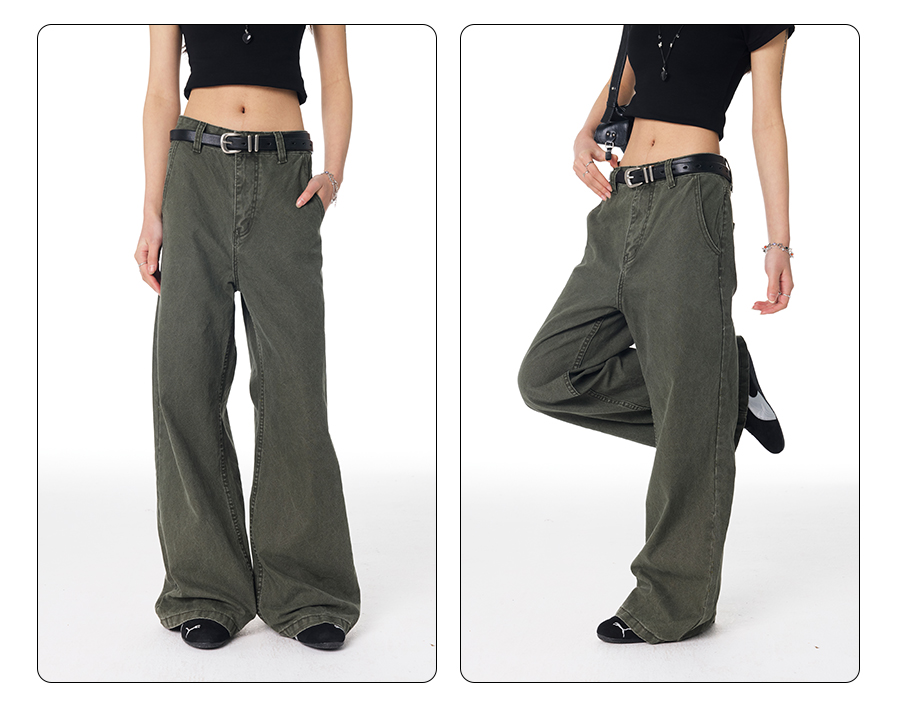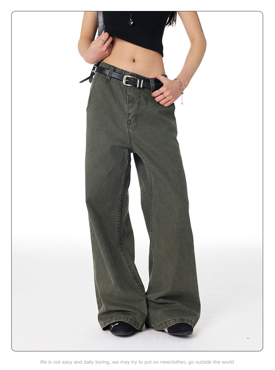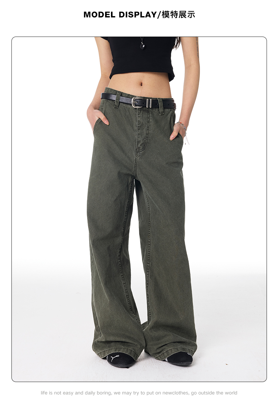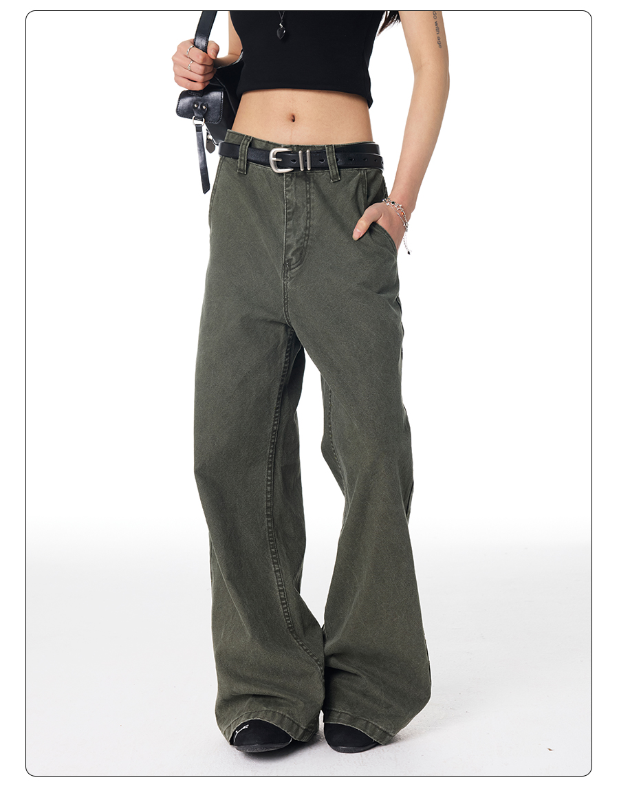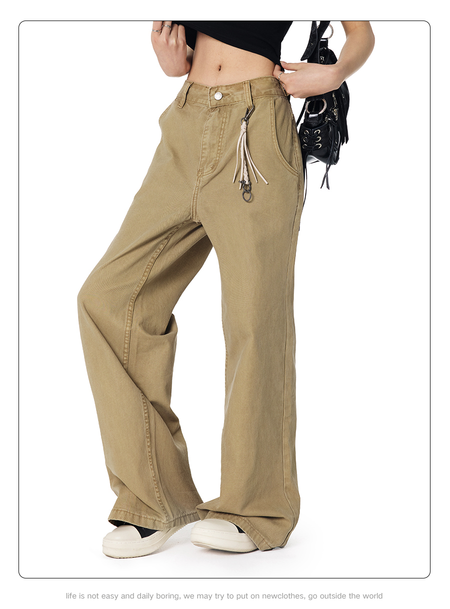 【Achock官方店】美式复古牛仔裤男女设计感宽松阔腿简约工装长裤