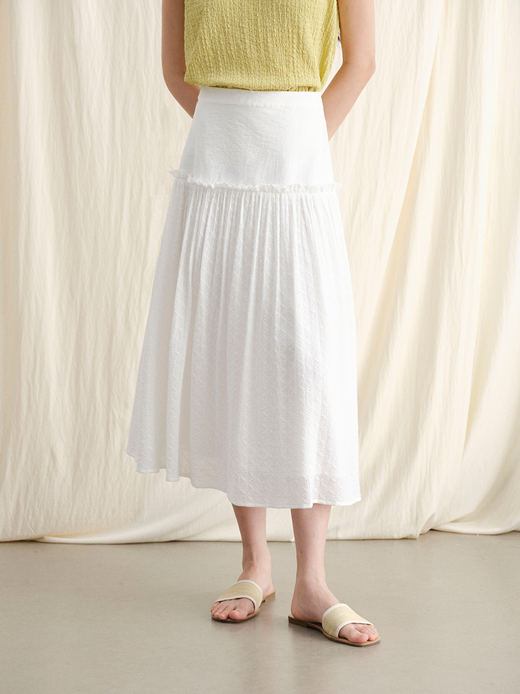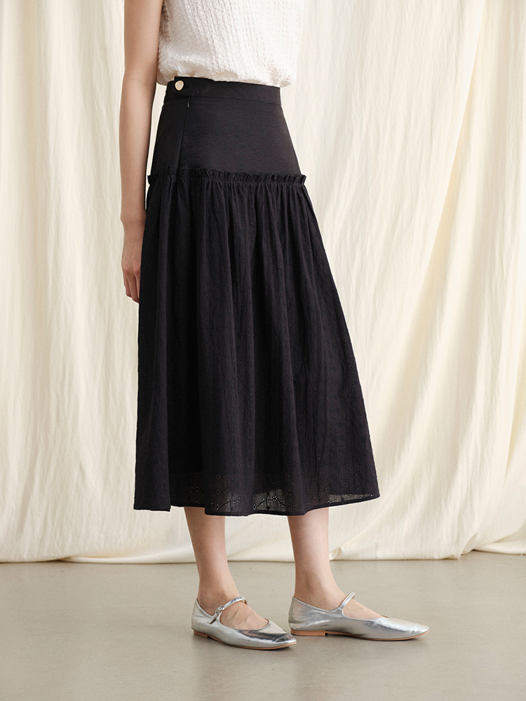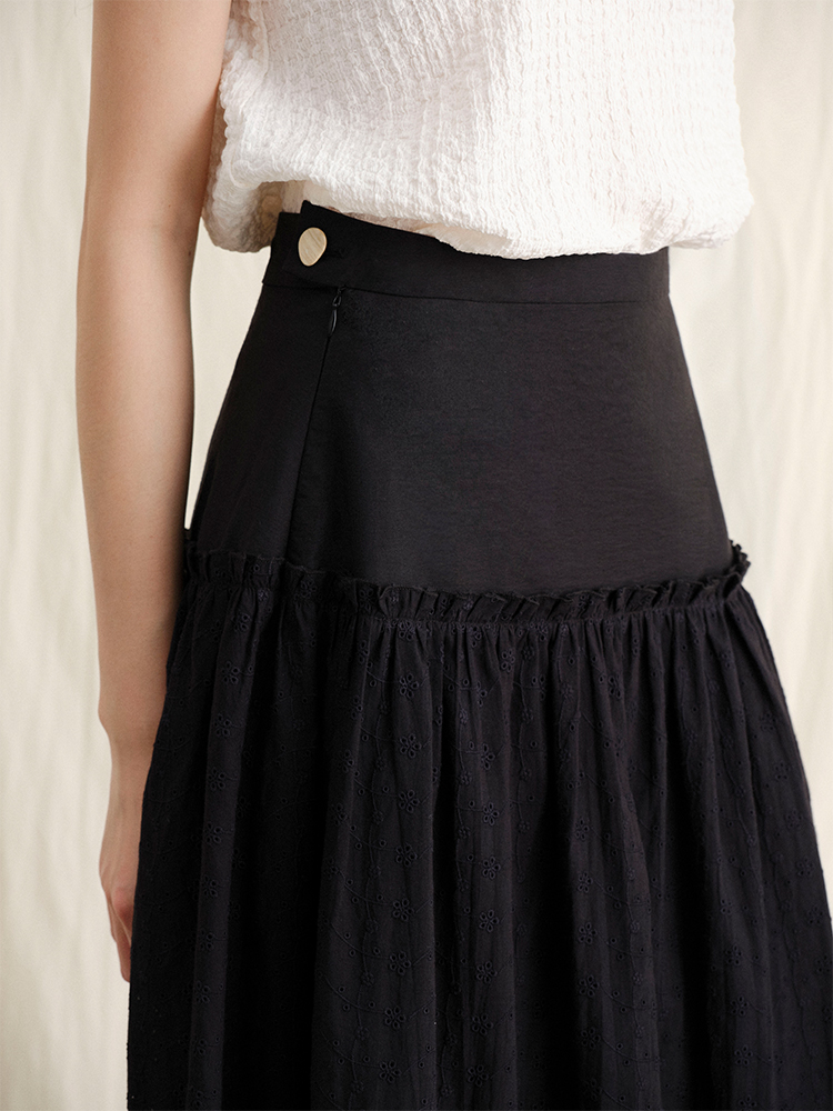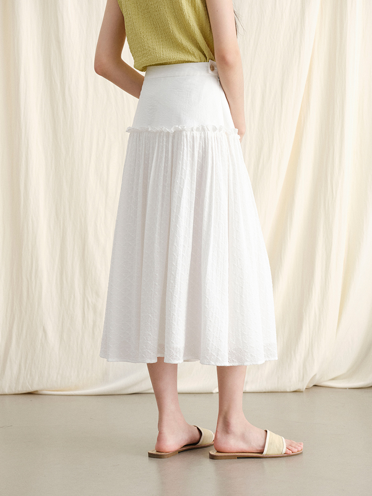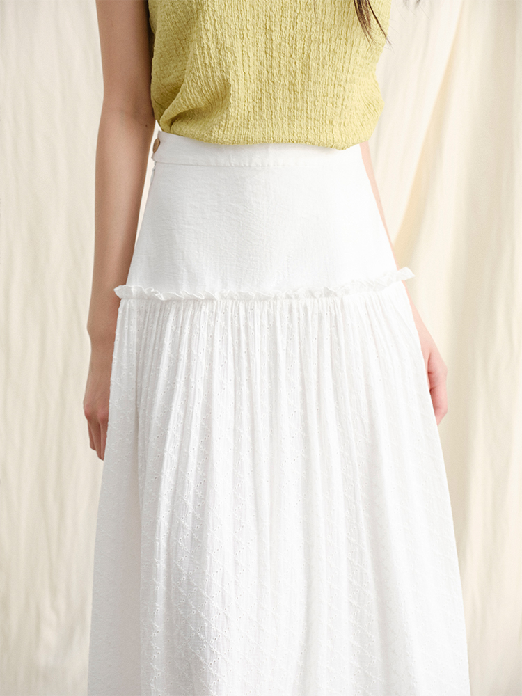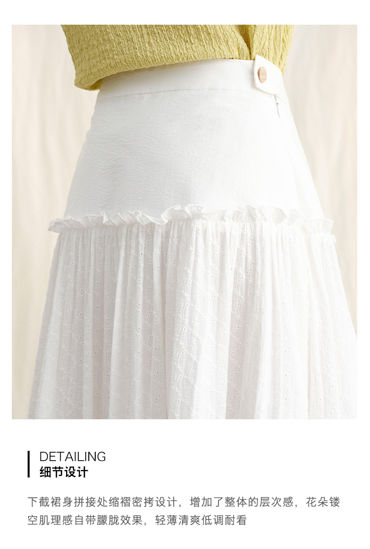 ForPoem 现货 24/SS原创设计夏季镂空肌理面料拼接温柔棉质清新半身裙