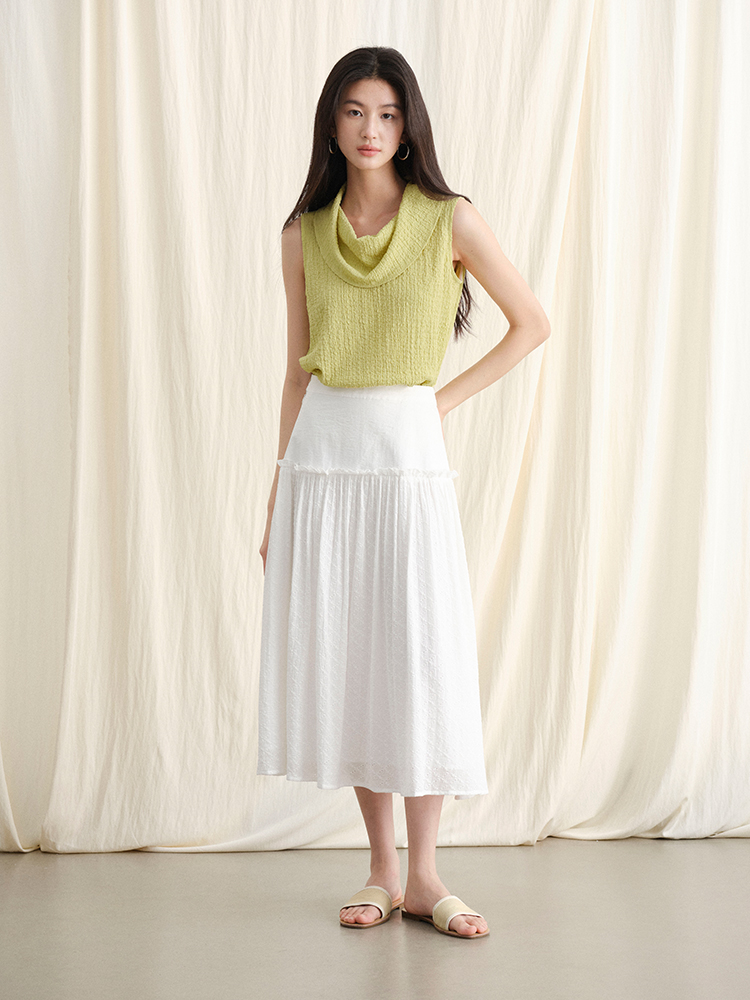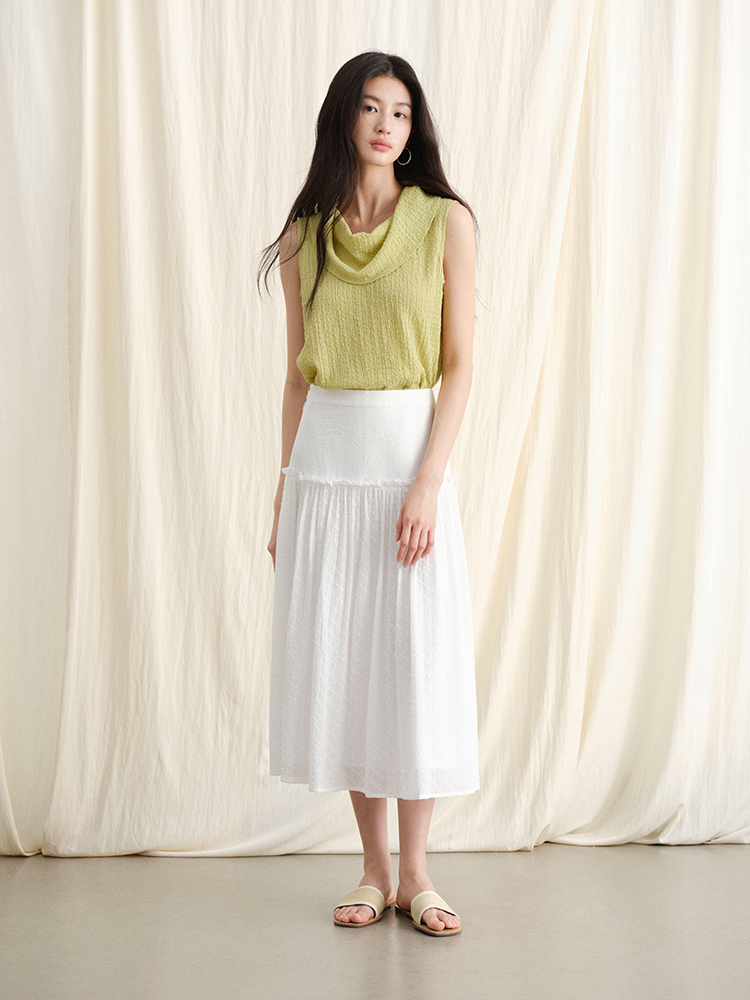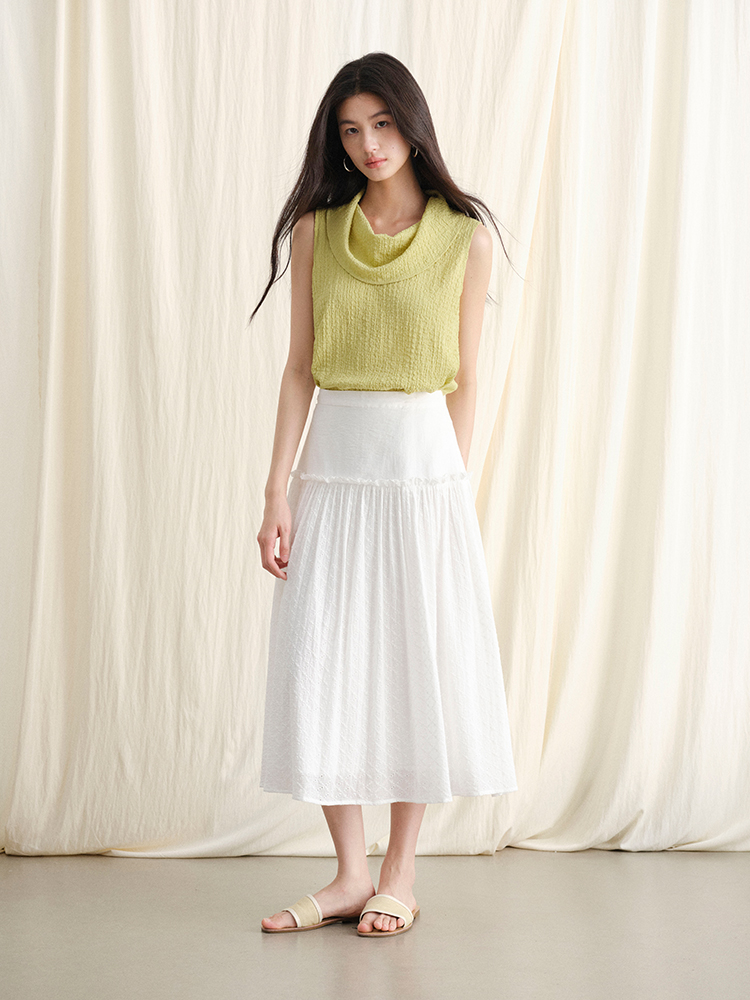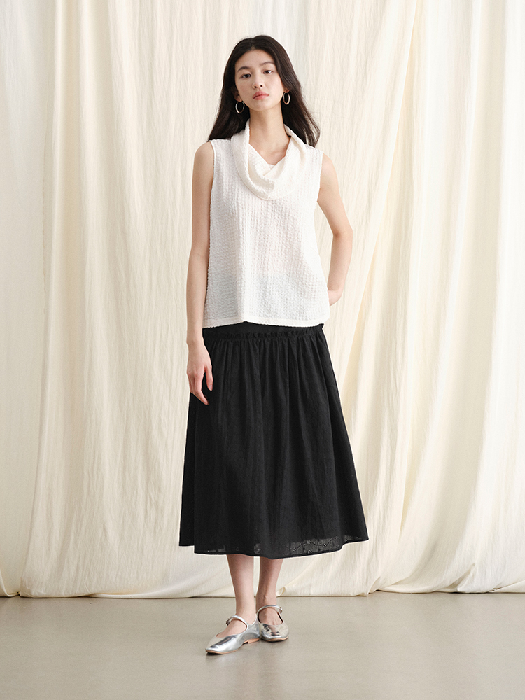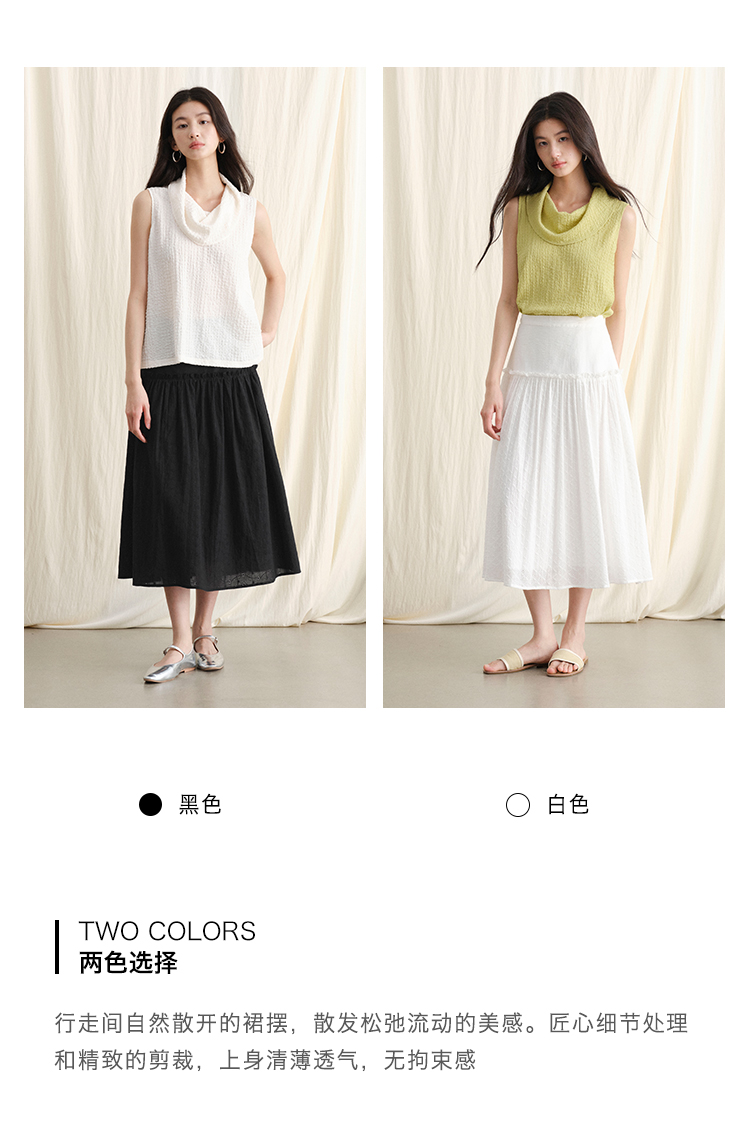 ForPoem 现货 24/SS原创设计夏季镂空肌理面料拼接温柔棉质清新半身裙