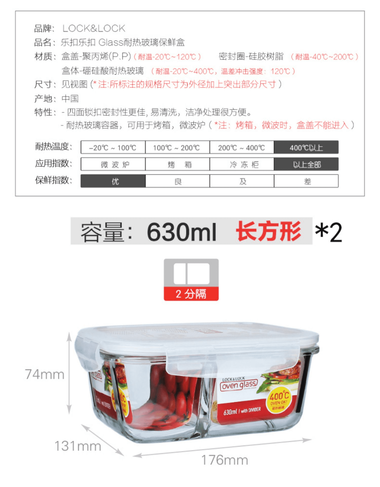 乐扣乐扣玻璃保鲜盒两件套 LLG429CS003B