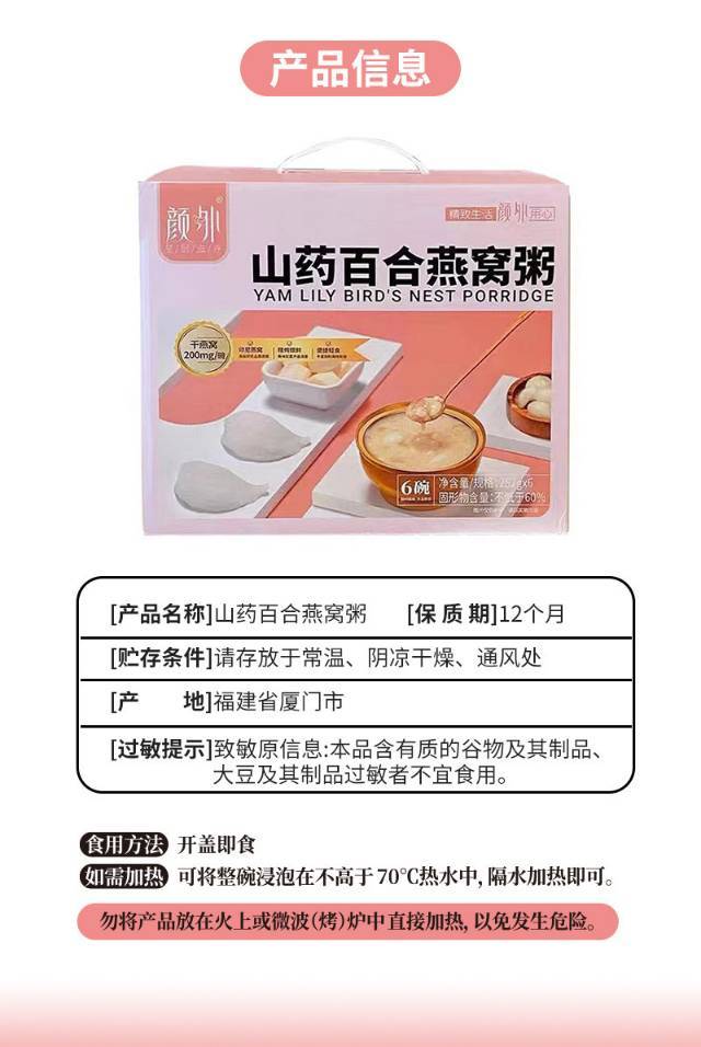 【颜外燕窝粥】🆕6碗💰99!盒马家C位选手!✅甄选印尼优质燕窝,一盒一码可溯源!✅一碗含200mg燕窝,肉眼可见燕窝丝!✅富含胶原蛋白✅0添加0防腐,开盖即食!旗舰店118,团购99!新日期!
