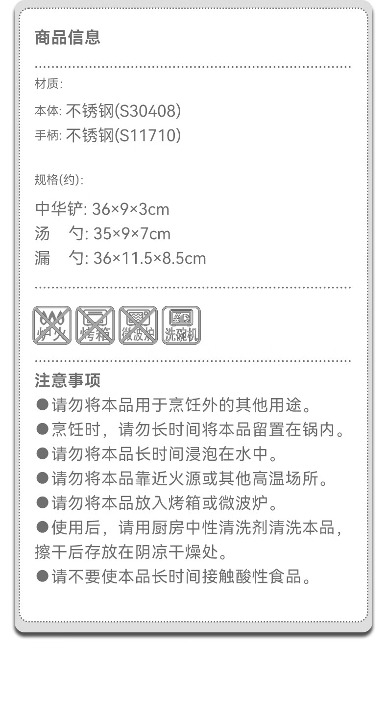 厨房可进洗碗机全不锈钢汤勺漏勺中华铲 FK01系列