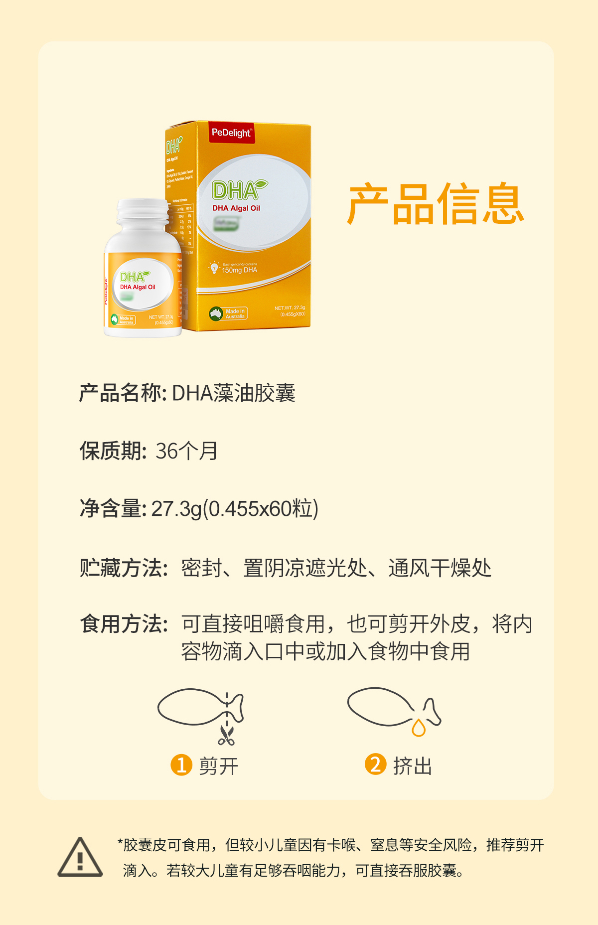 葆迪乐DHA藻油软胶囊(60粒装)
