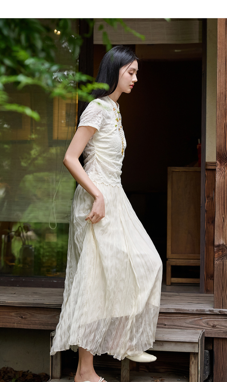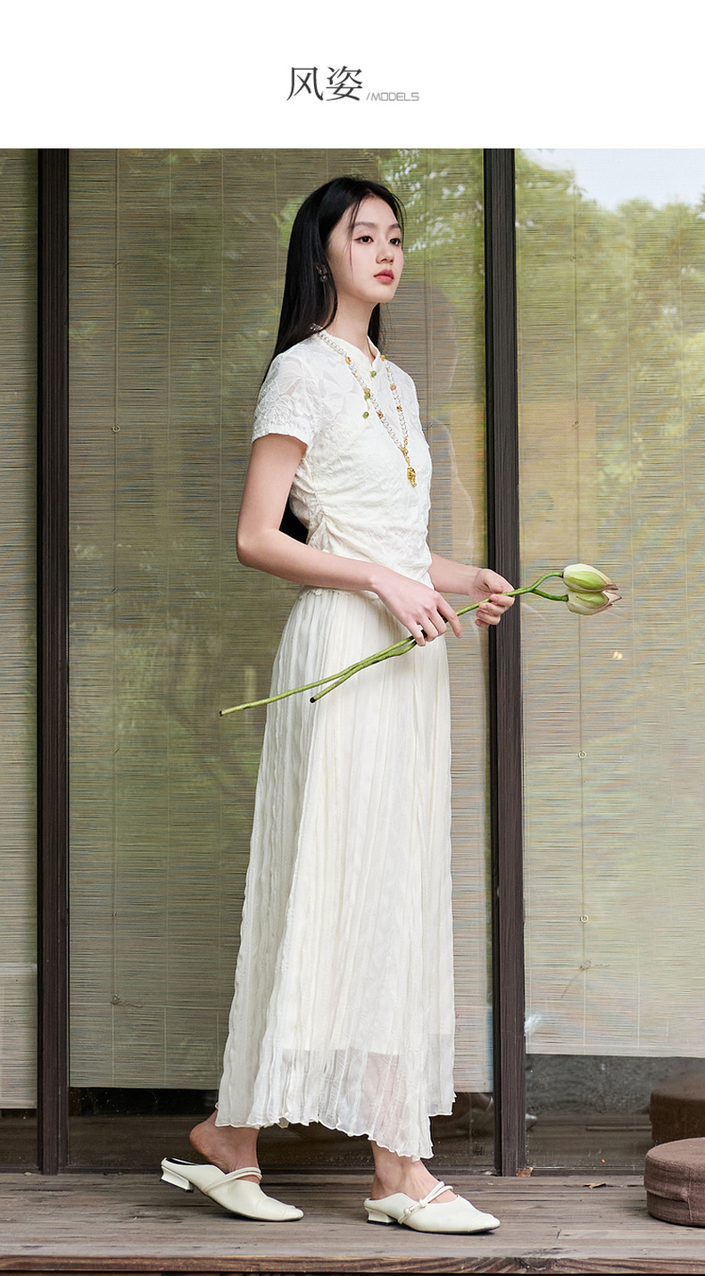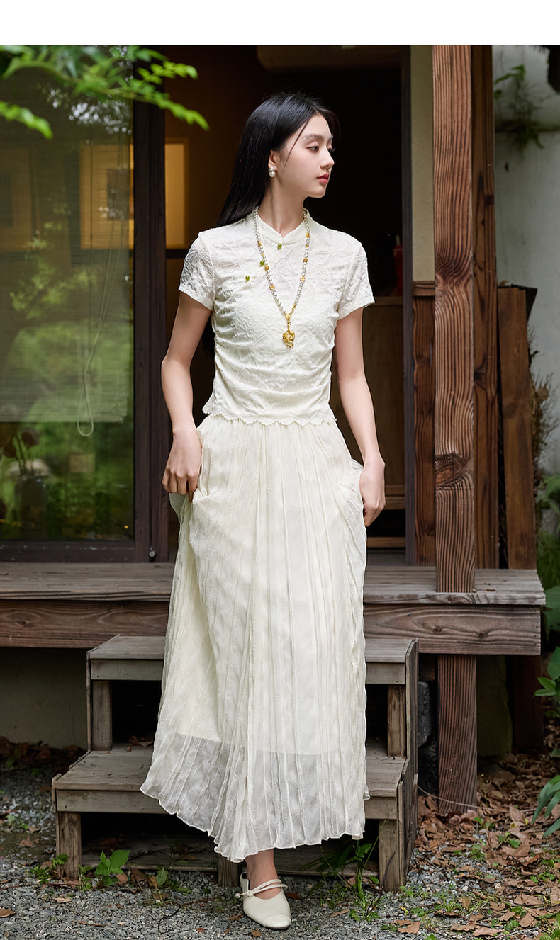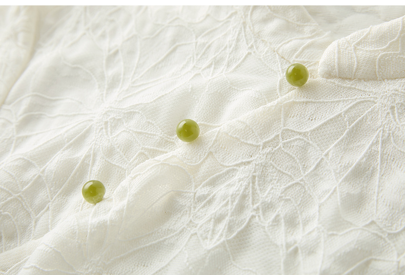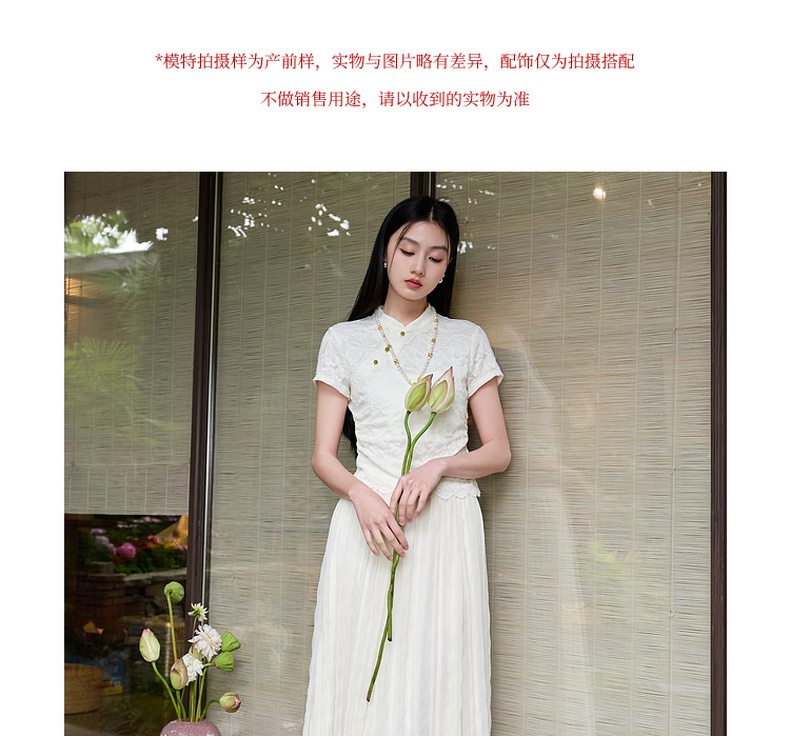三彩【荷叶田田】2025夏季新款荷叶蕾丝衫立领短袖修身套头C