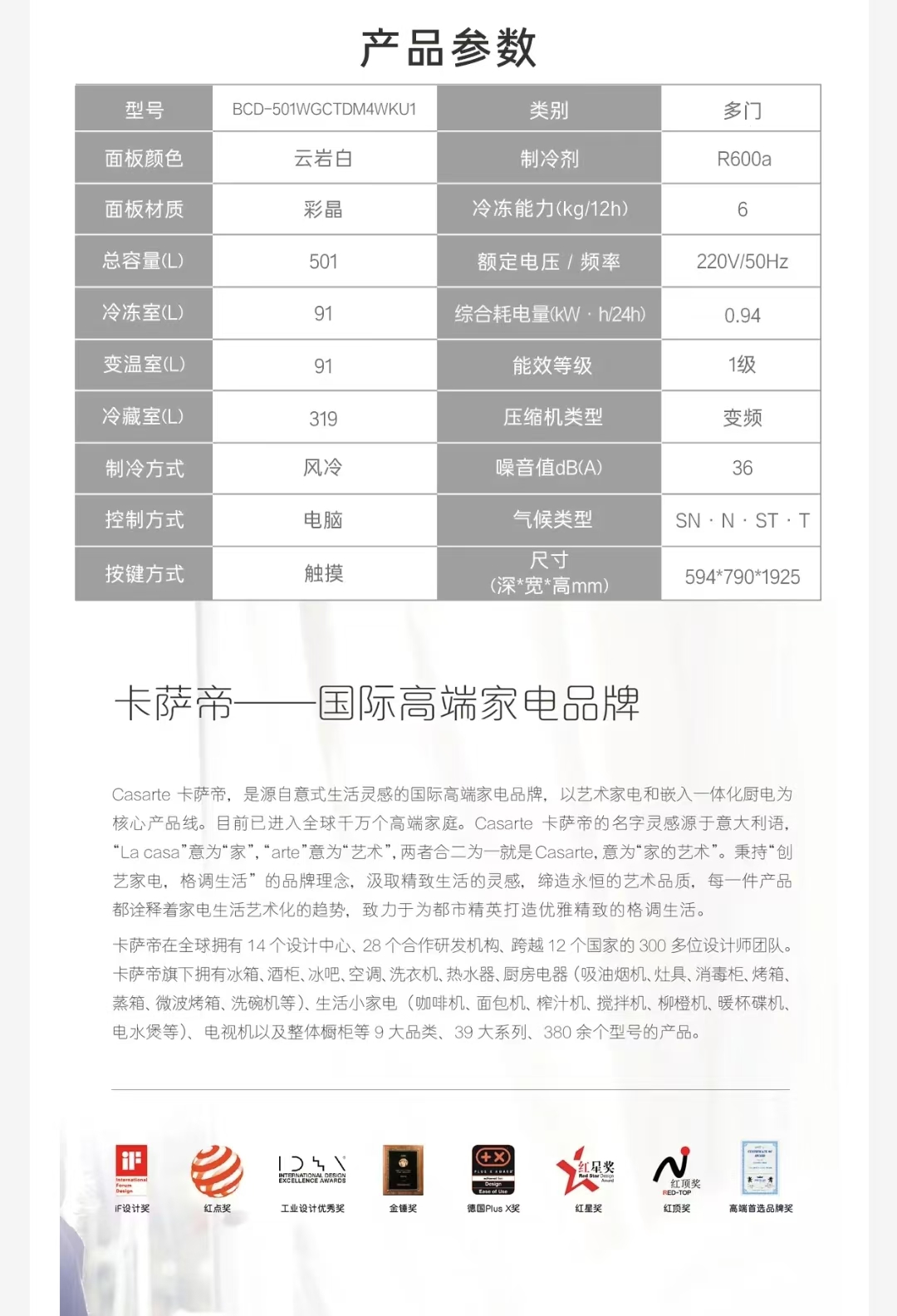卡萨帝/冰箱/BCD-501WGCTDM4WK U1