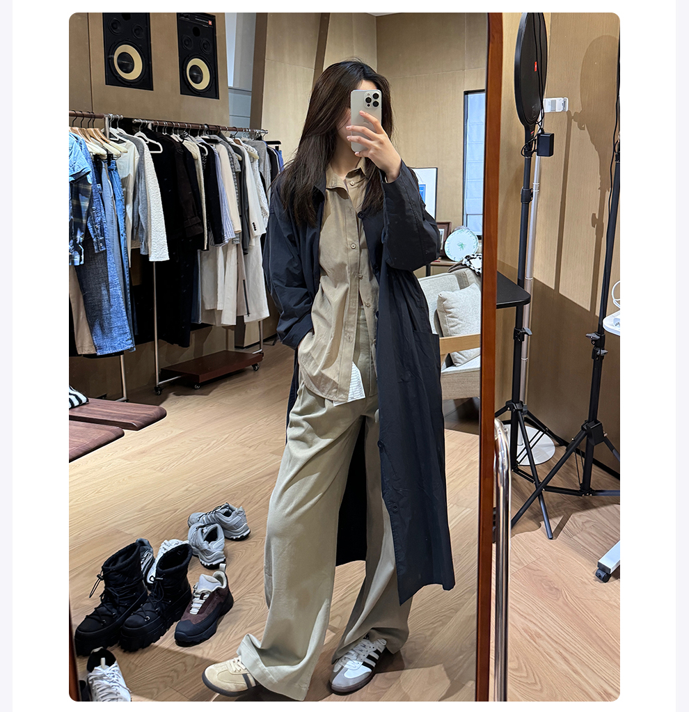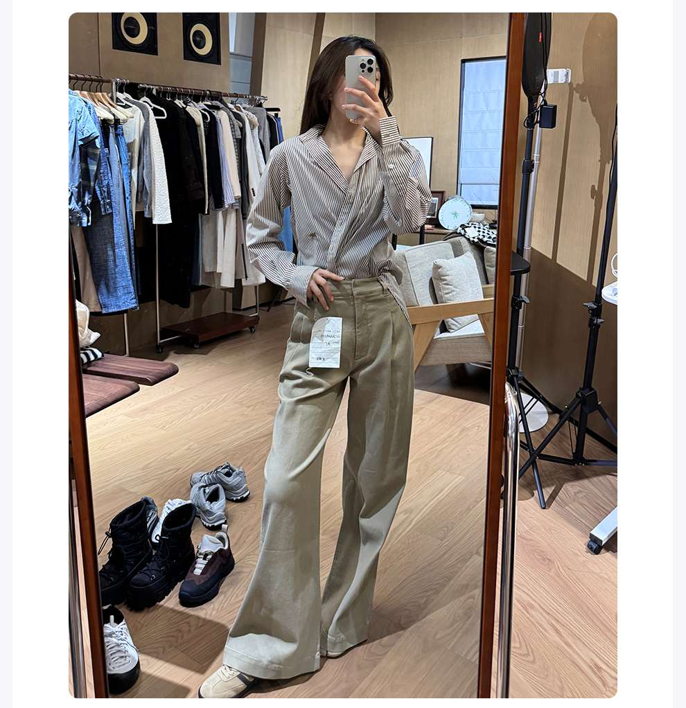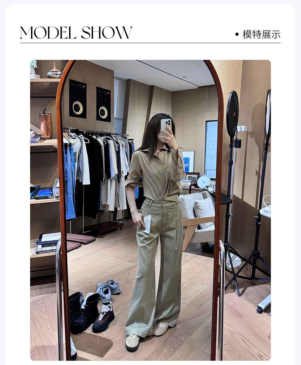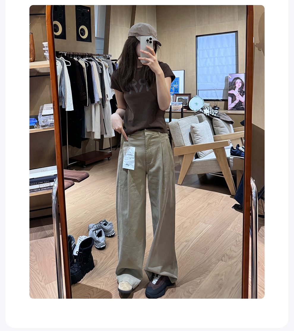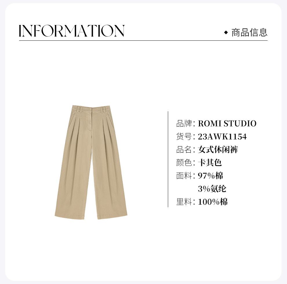 ROMI STUDIO“法式优雅”定染斜纹竹节棉宽松直筒收褶长裤23AWK1154