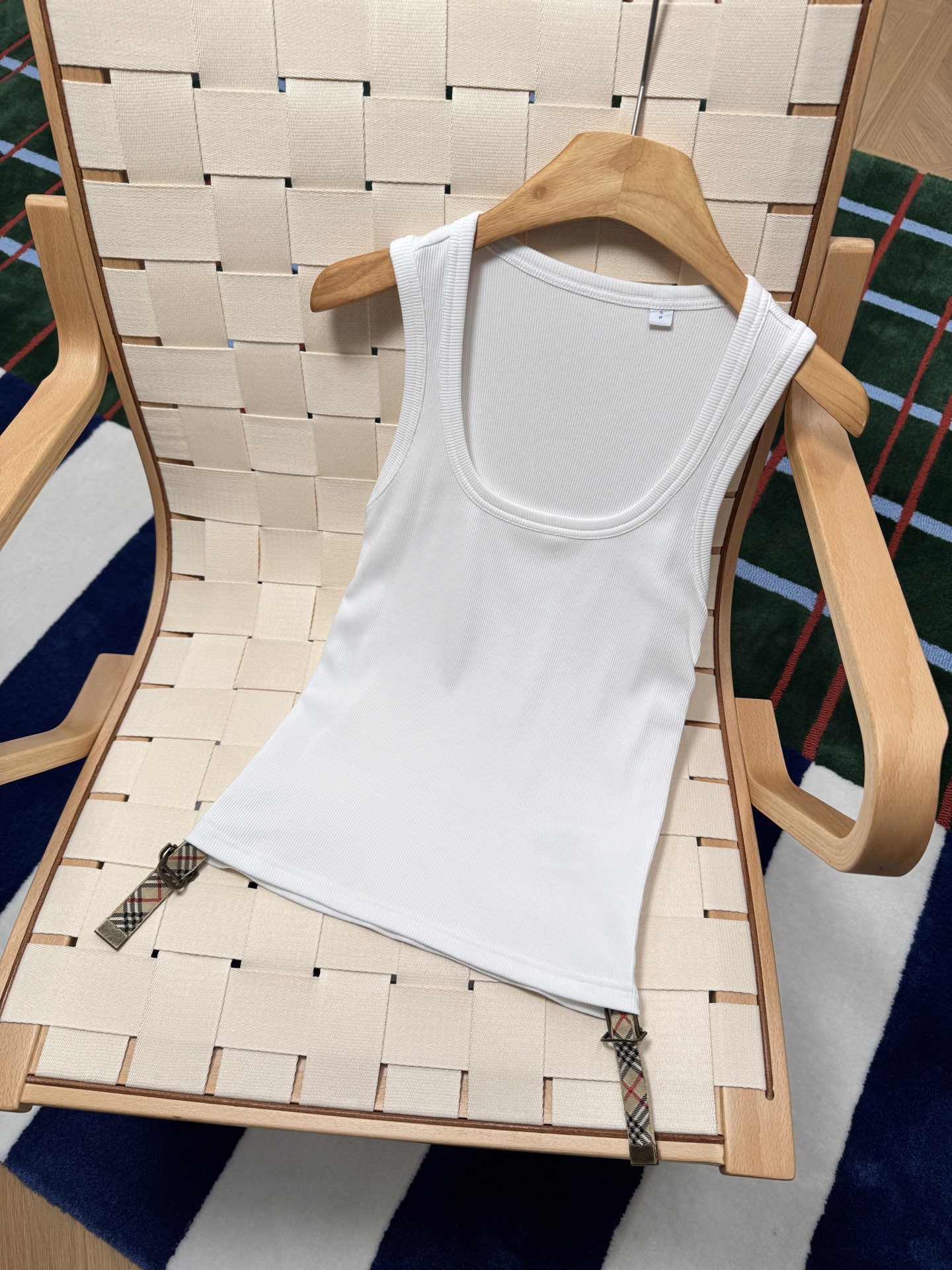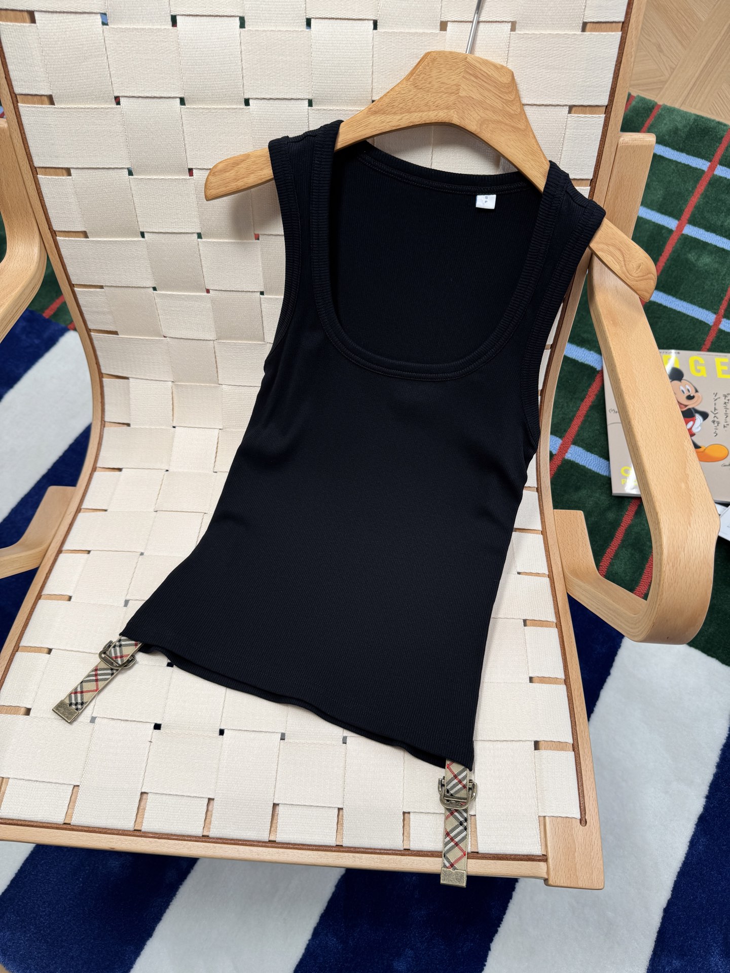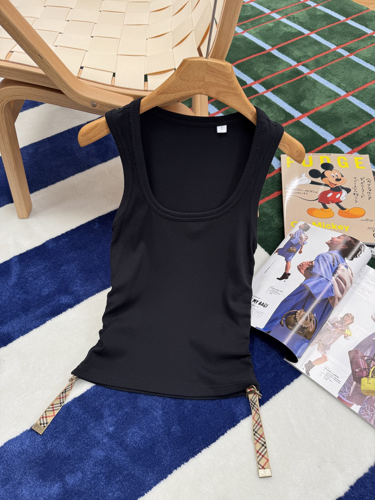 25年新款背心🆕 两侧褶饰设计融入格纹侧边饰带和 B 字型扣环,整件背心质感非常好🔥欧美风极简版型,绝对不会过时👍🏻版型不易走光,很爱它的U型领,拉长颈部线条,四季都可以穿的款式,单穿或者当内搭都很吸睛,单穿尽情演绎性感与柔情,作为内搭穿在外套里,轻松休闲,氛围感瞬间拉满💯绝对是衣橱必备单品,时髦又高级💫黑/白两色,必入➕码数SML