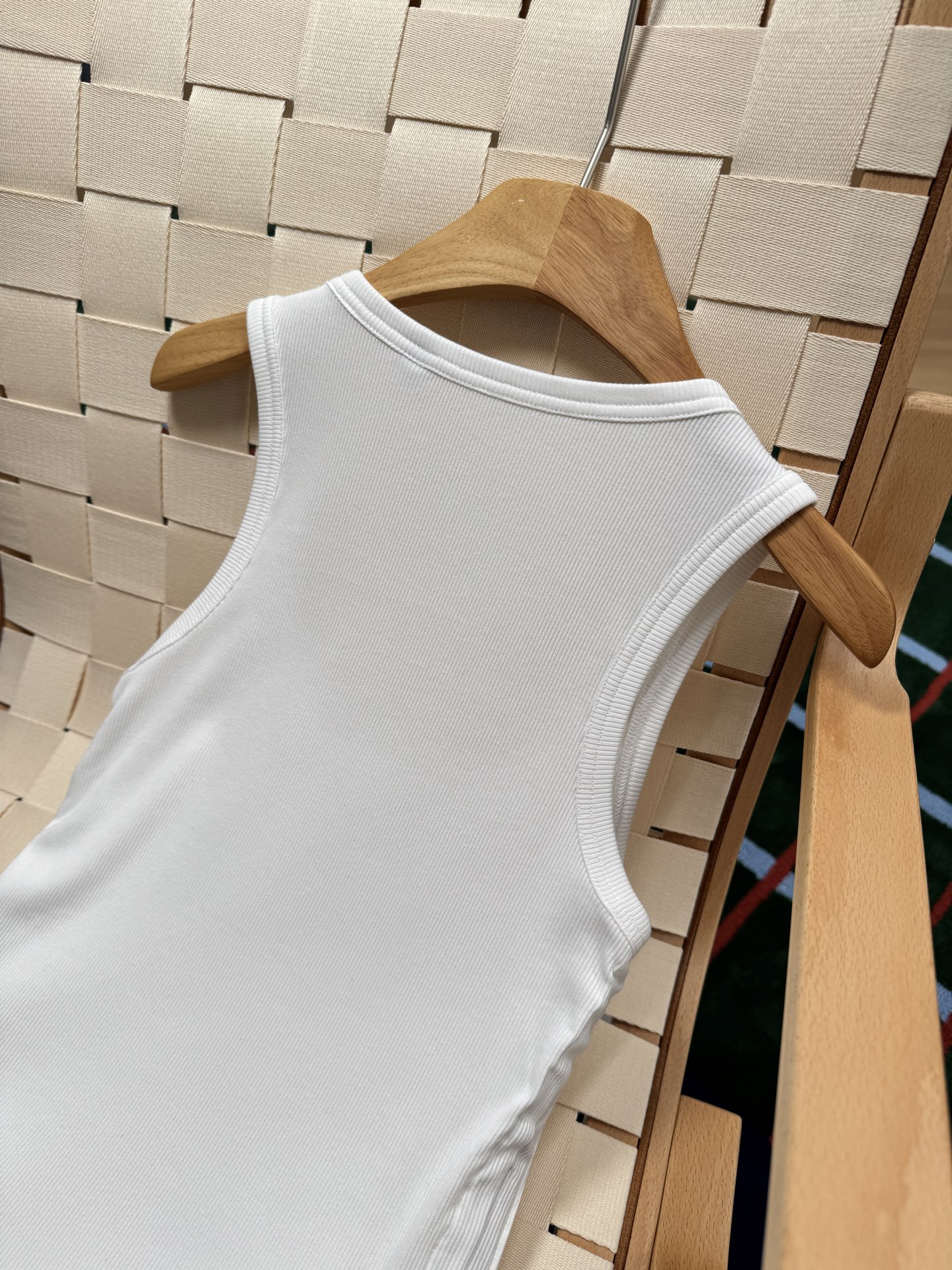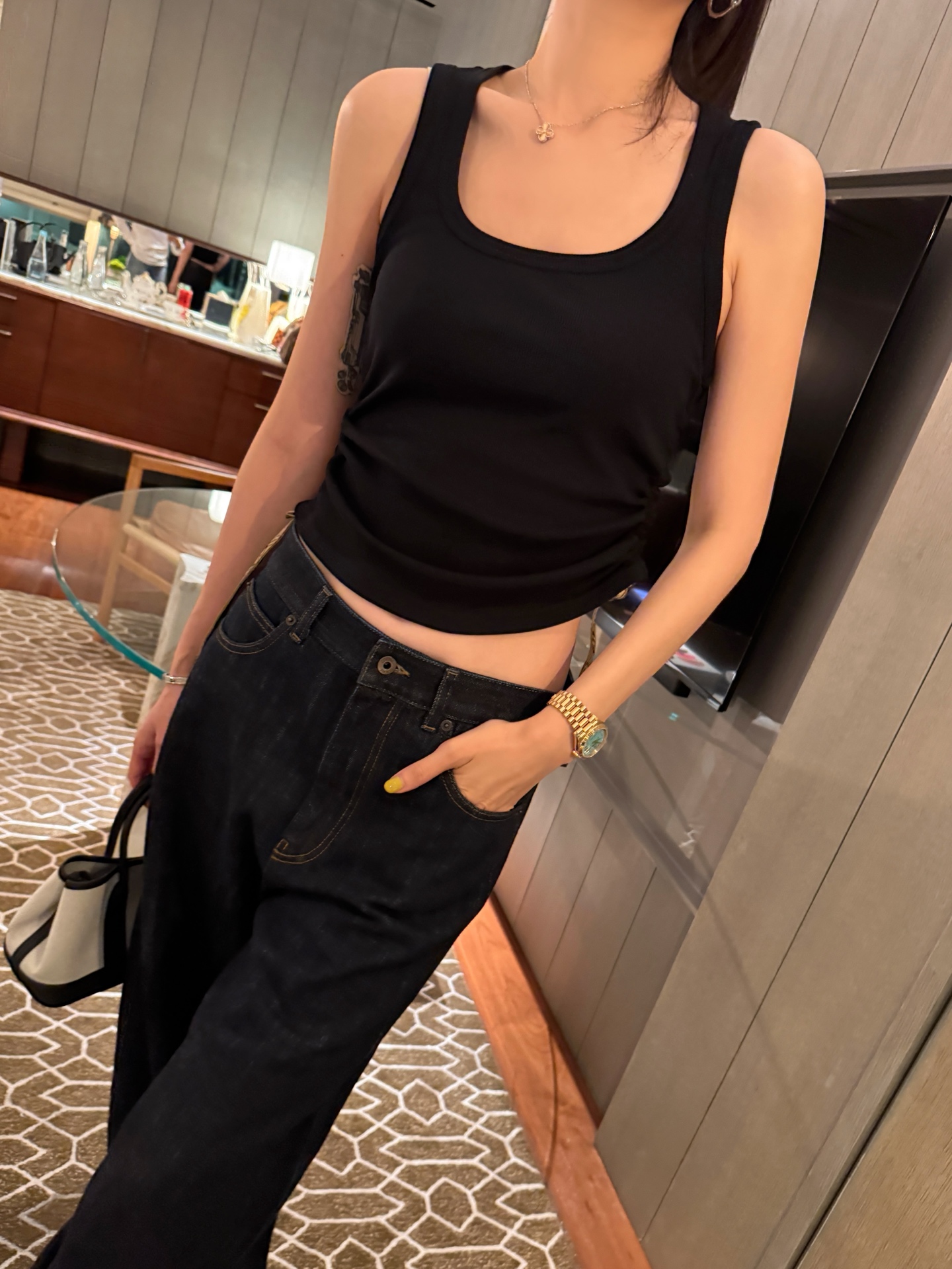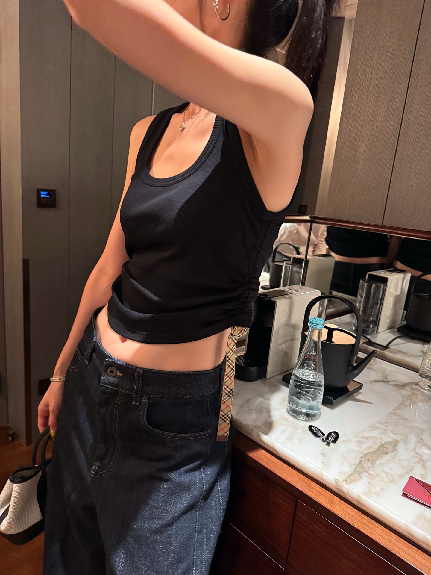 25年新款背心🆕 两侧褶饰设计融入格纹侧边饰带和 B 字型扣环,整件背心质感非常好🔥欧美风极简版型,绝对不会过时👍🏻版型不易走光,很爱它的U型领,拉长颈部线条,四季都可以穿的款式,单穿或者当内搭都很吸睛,单穿尽情演绎性感与柔情,作为内搭穿在外套里,轻松休闲,氛围感瞬间拉满💯绝对是衣橱必备单品,时髦又高级💫黑/白两色,必入➕码数SML