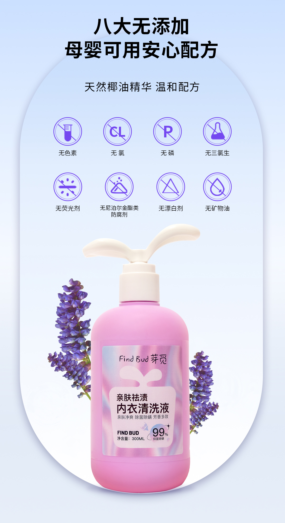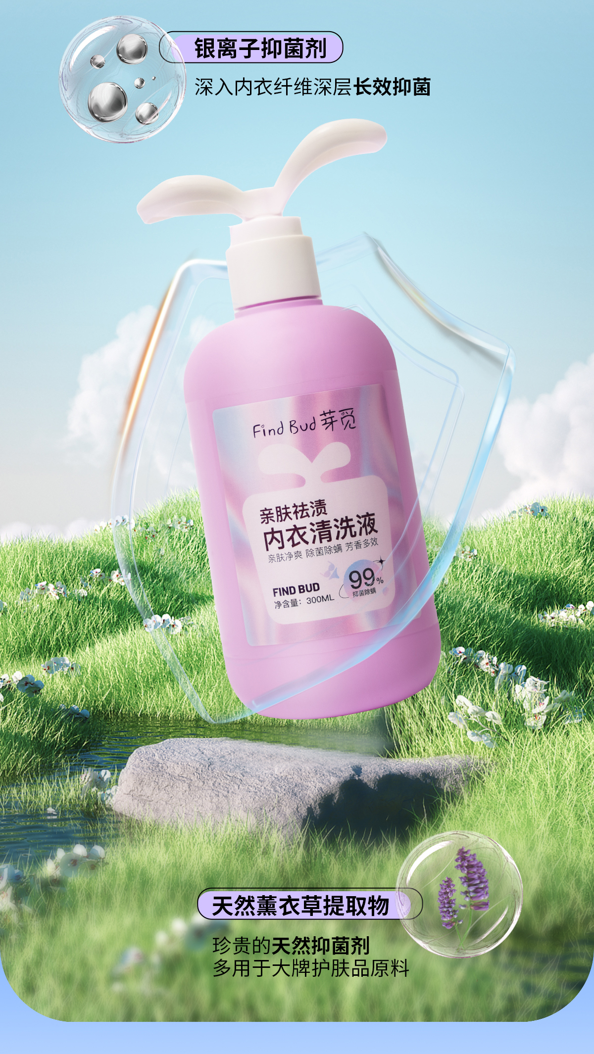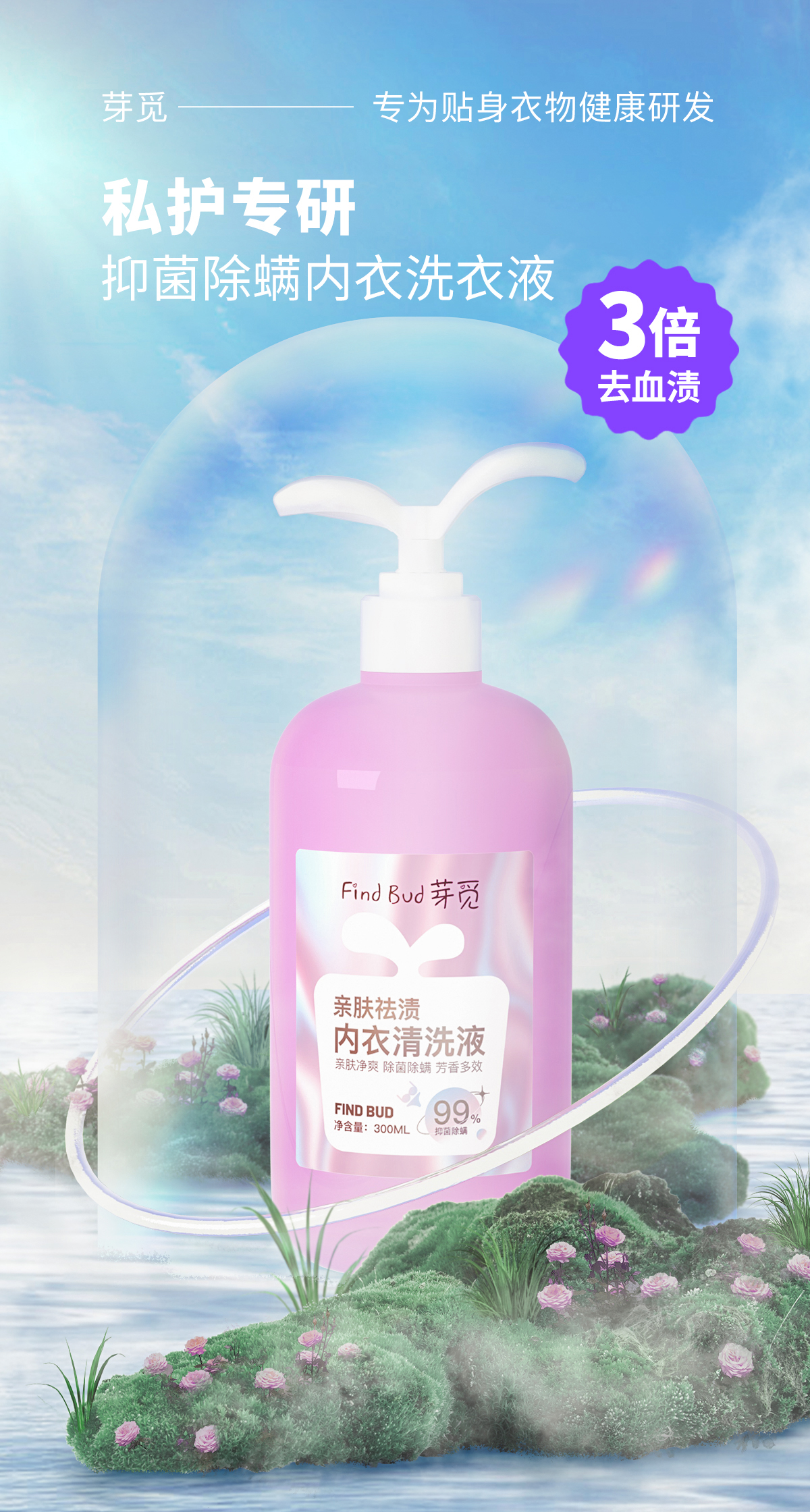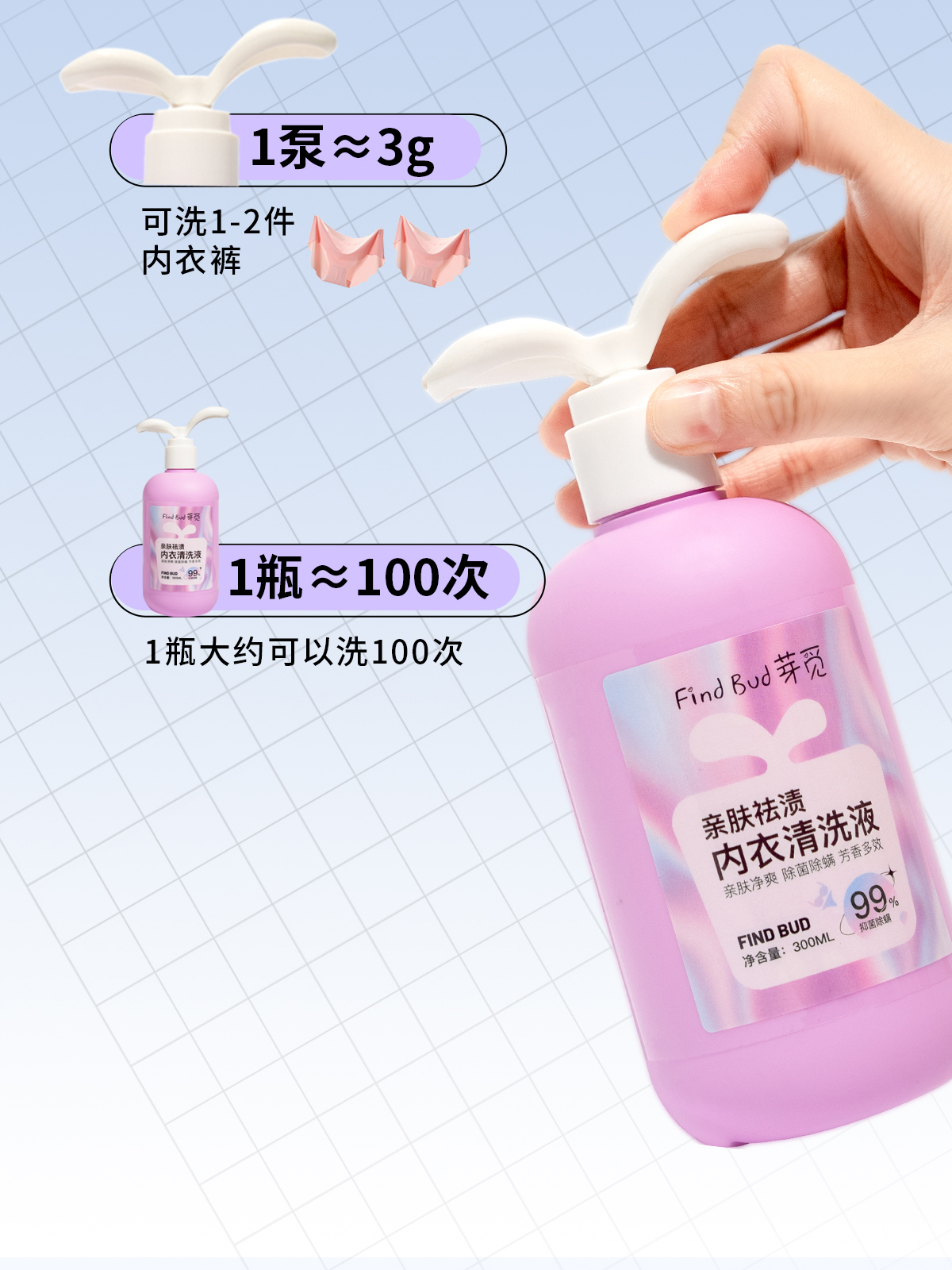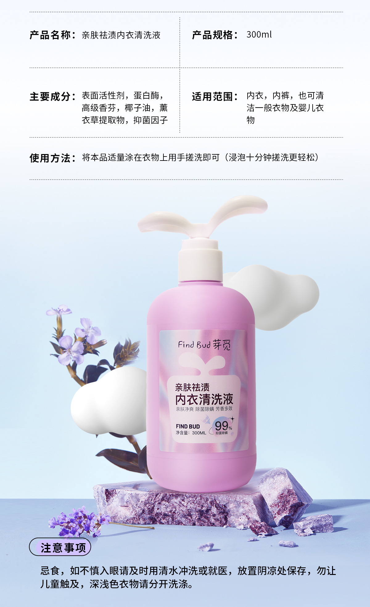 【69元到手6瓶正装,另赠送300ml替换装1包】Findbud芽觅内衣清洗液 | 亲肤祛渍 低泡易漂洗 温和不刺激 抑jun去污 300ML/瓶