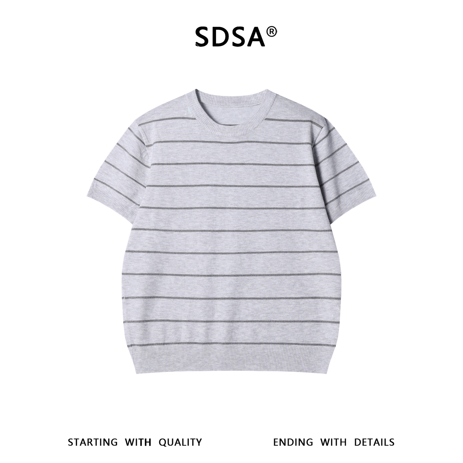 SDSA男装2026新款高贵轻奢韩版撞色条纹肌理短袖T恤百搭时尚上衣