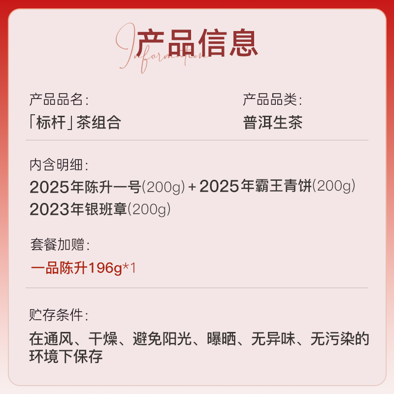 【标杆套餐】陈升号 2025年陈升一号200g+霸王青饼200g+2023年银班章200g加赠一品陈升1盒