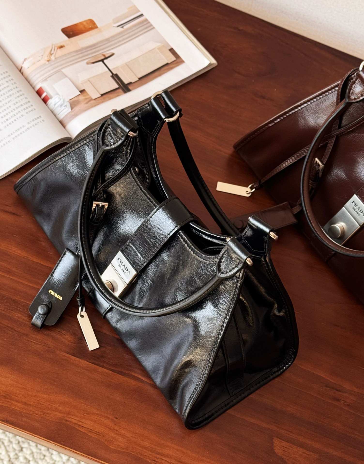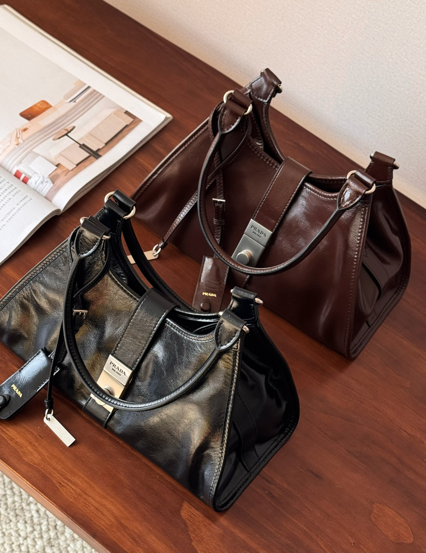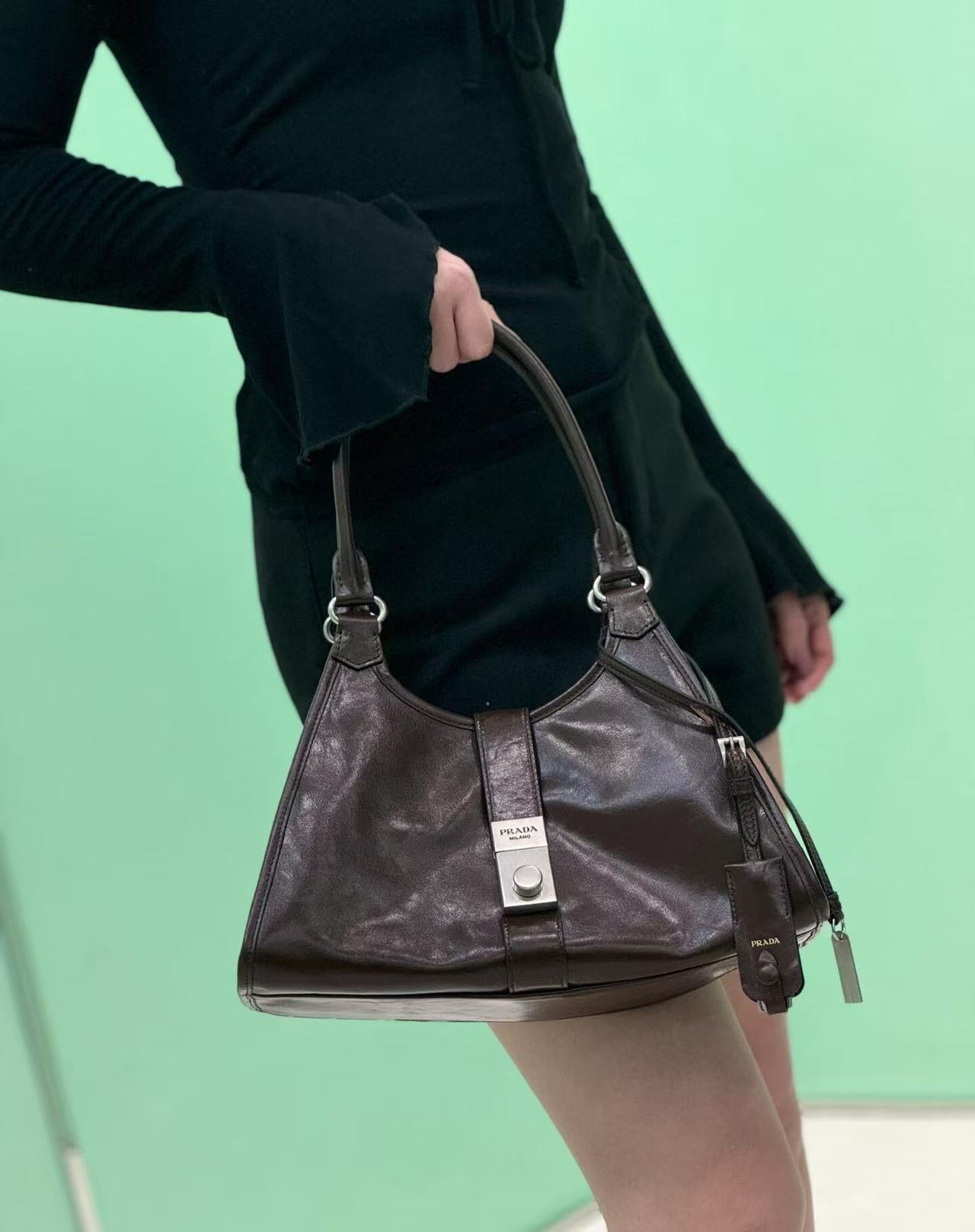 Prada 25SS 走秀款油蜡皮托特包!而且是个大热门款,这油蜡皮质感无敌了 ,复古与现代融合:将复古元素与现代审美相结合,呈现出独特的时尚感,既带有过去年代的韵味,又符合当下的流行趋势。