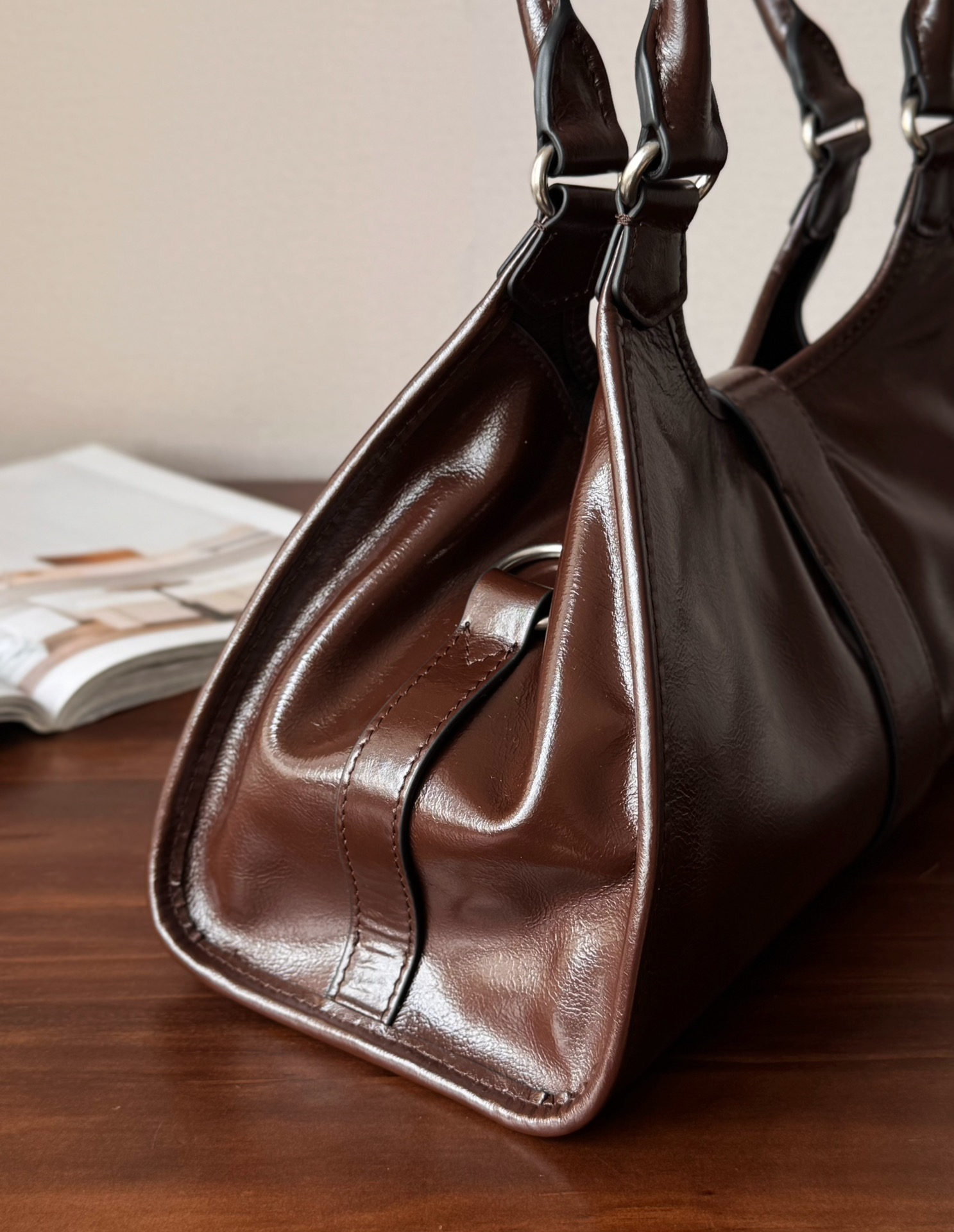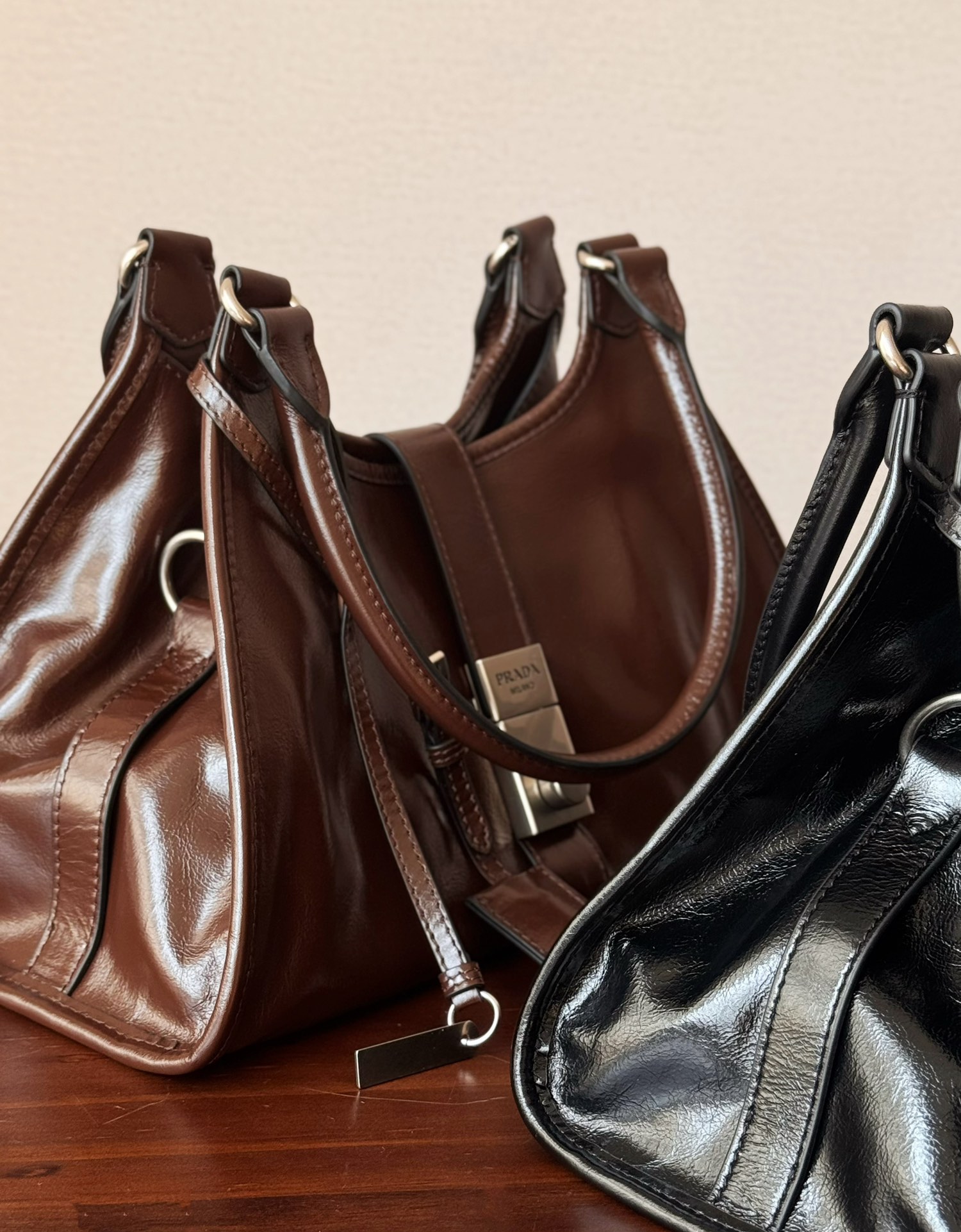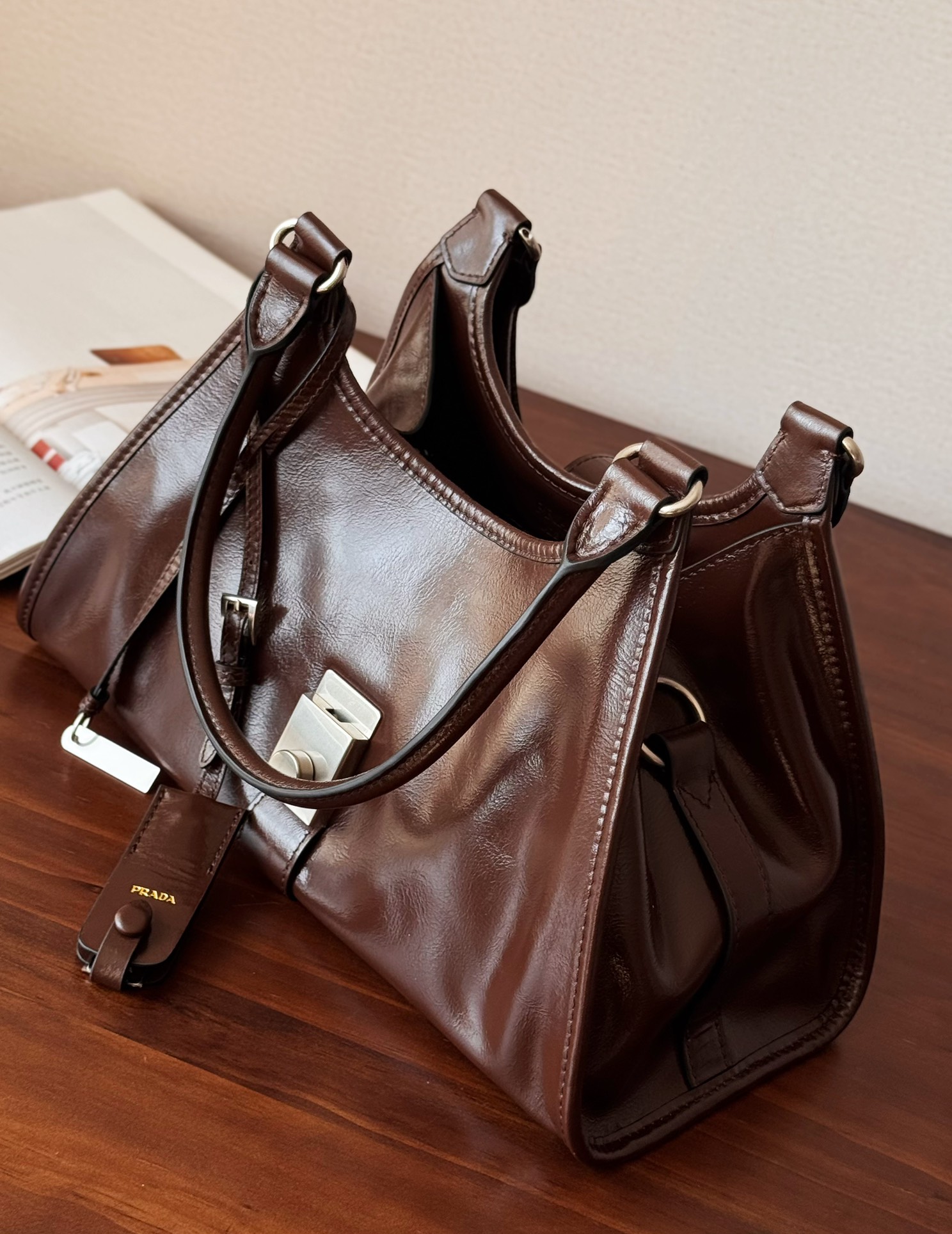 Prada 25SS 走秀款油蜡皮托特包!而且是个大热门款,这油蜡皮质感无敌了 ,复古与现代融合:将复古元素与现代审美相结合,呈现出独特的时尚感,既带有过去年代的韵味,又符合当下的流行趋势。