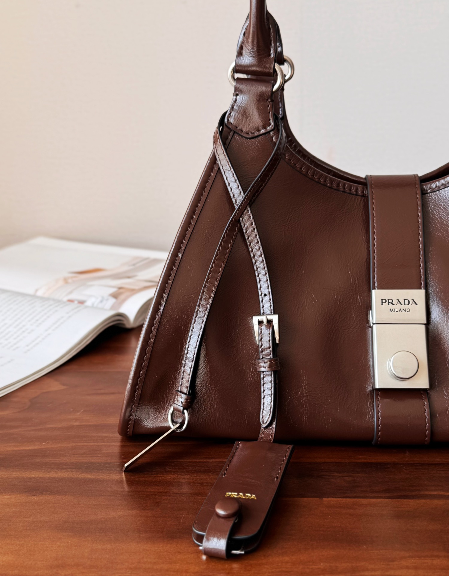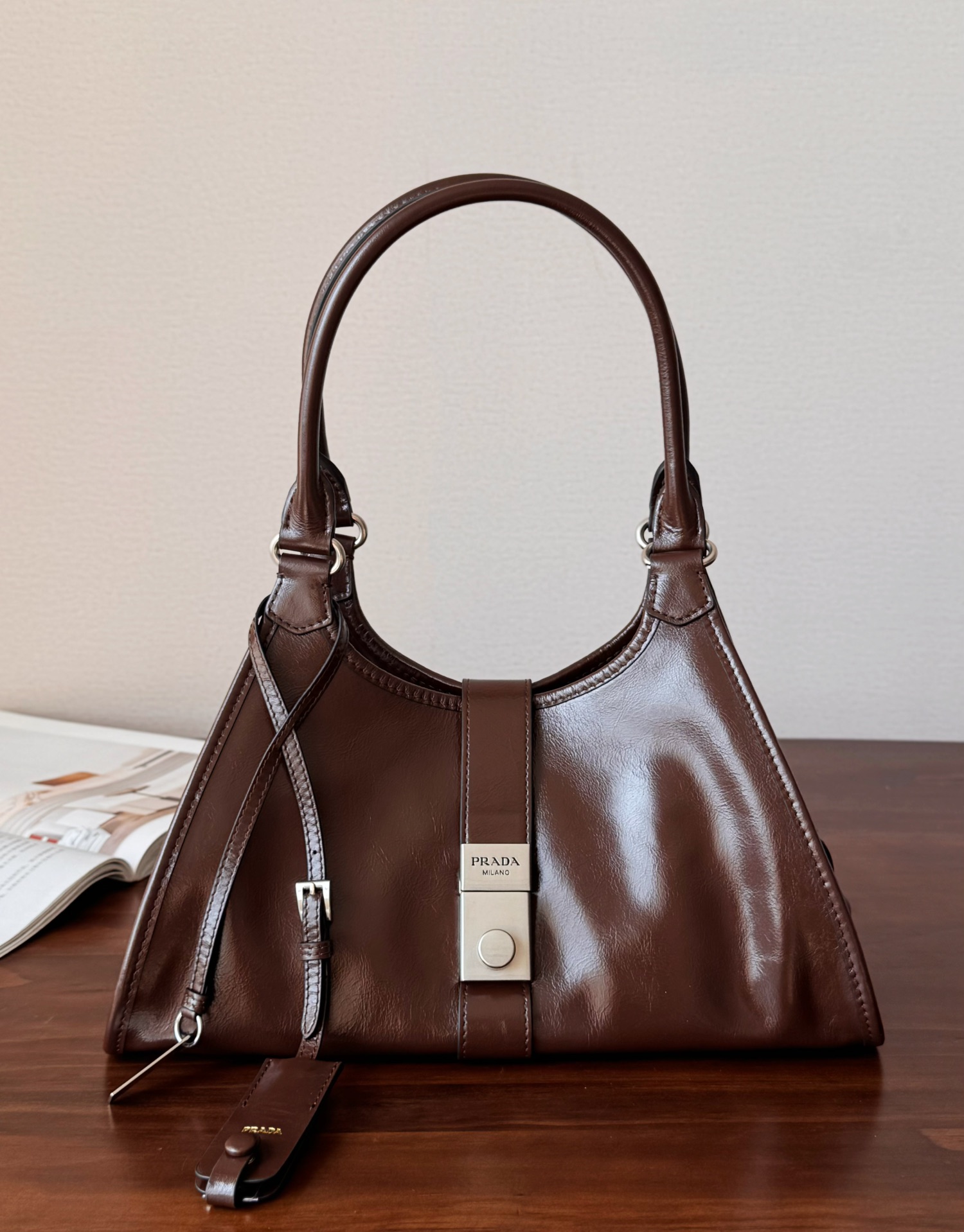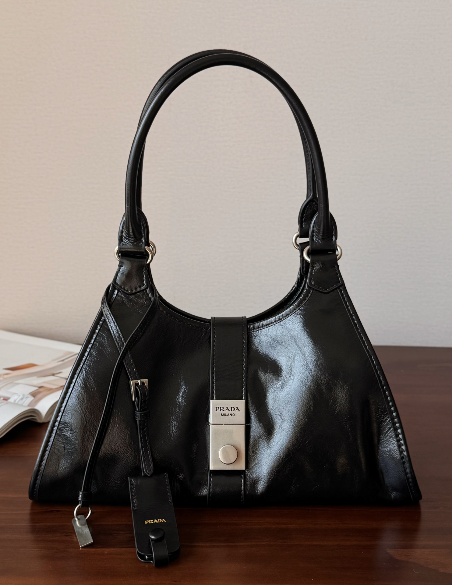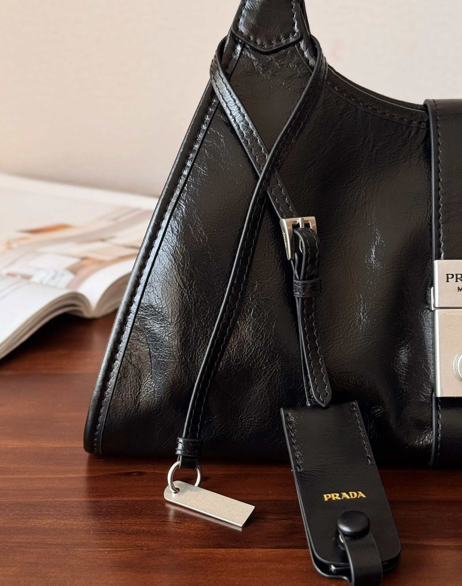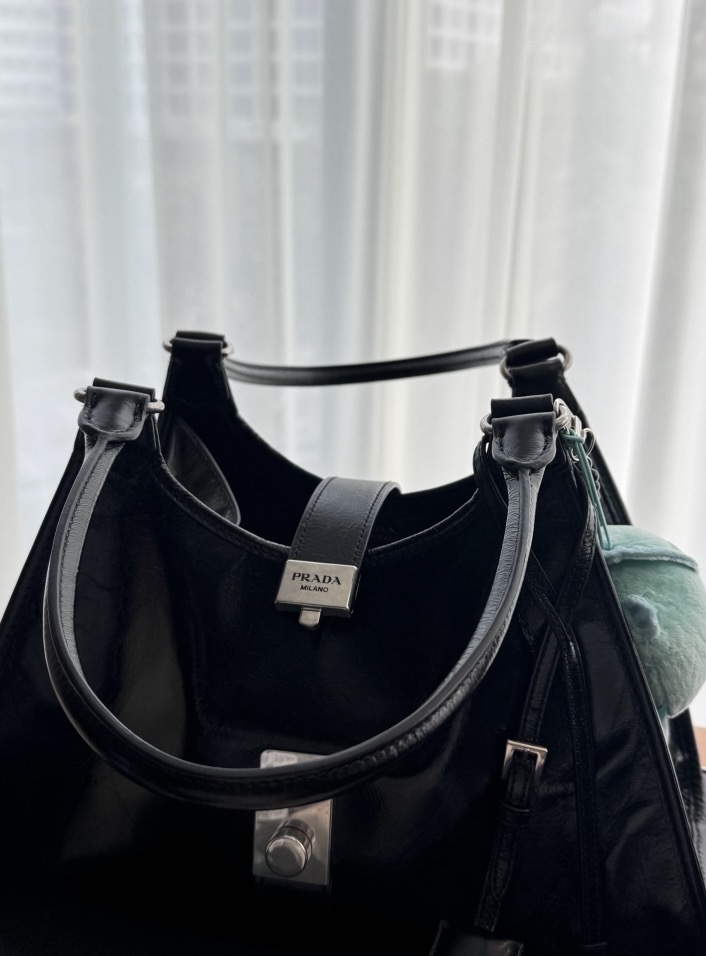 简约而精致是Prada的一贯风格,以简洁的线条和几何造型为主,同时注重细节处理,如精致的袢带、金属扣饰等,展现出品牌的精致工艺。