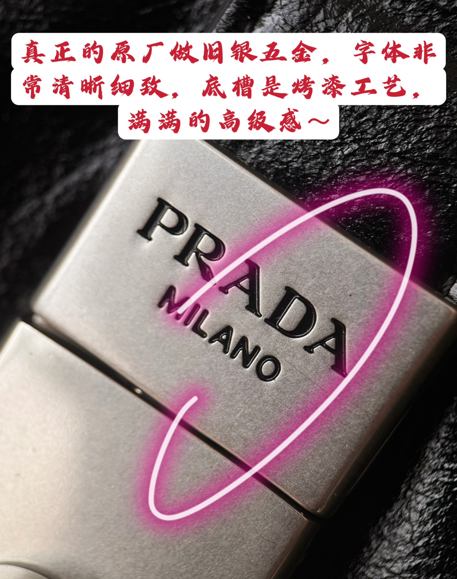 真正的原厂做旧银五金,字体非常清晰细致,底槽是烤漆工艺,满满的高级感~