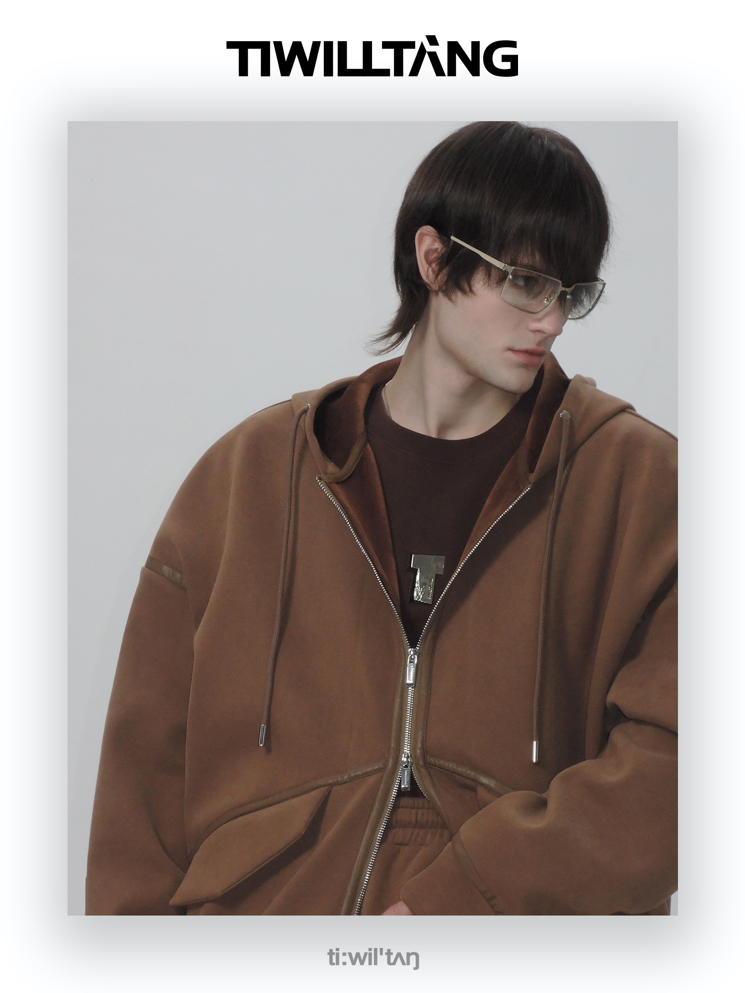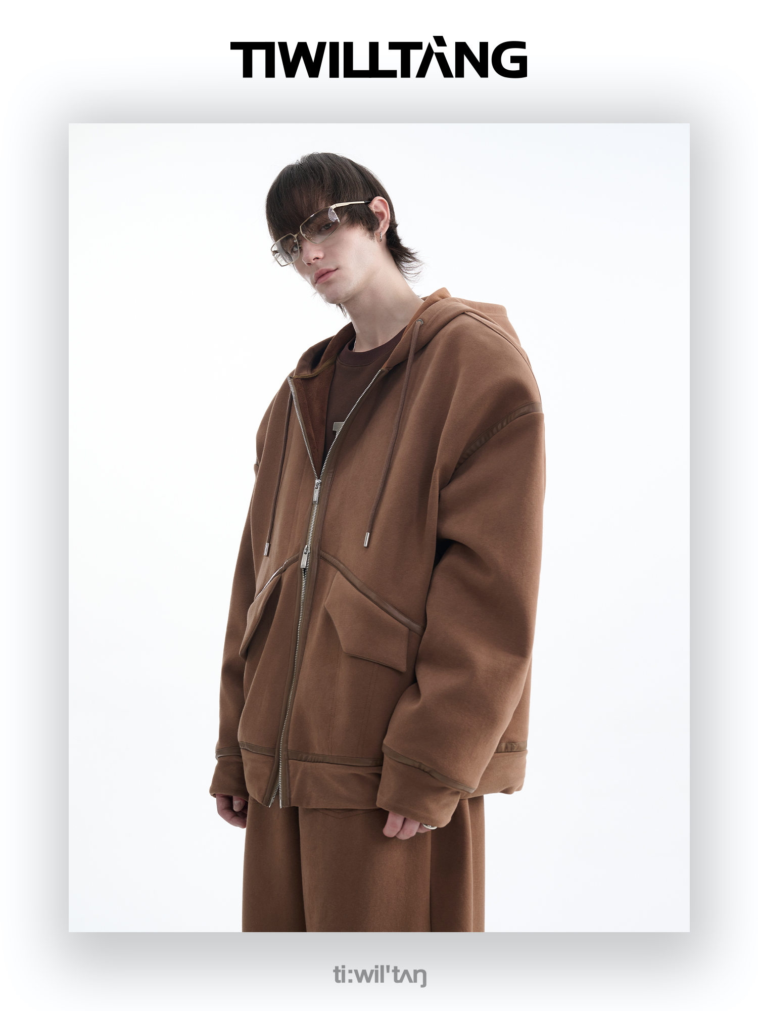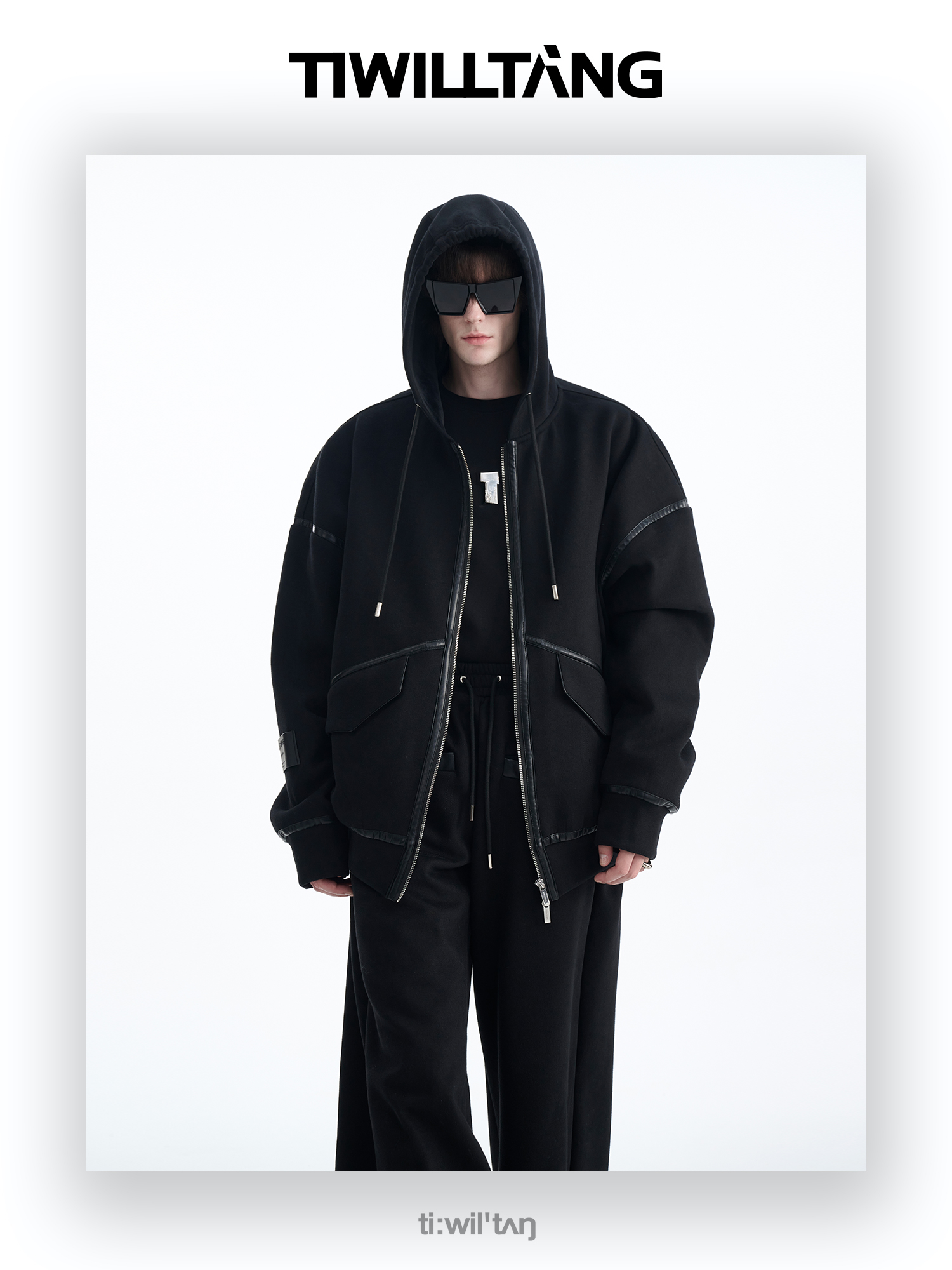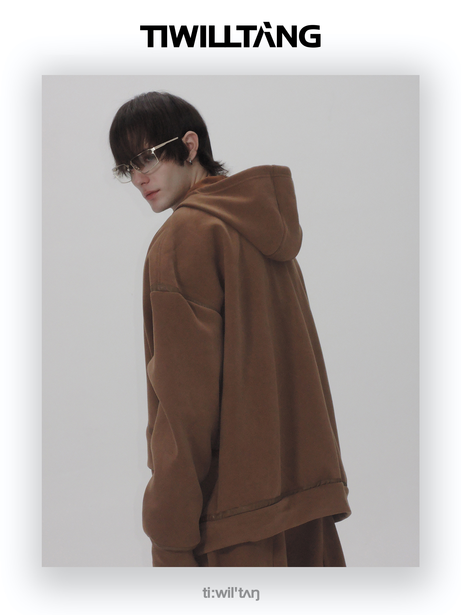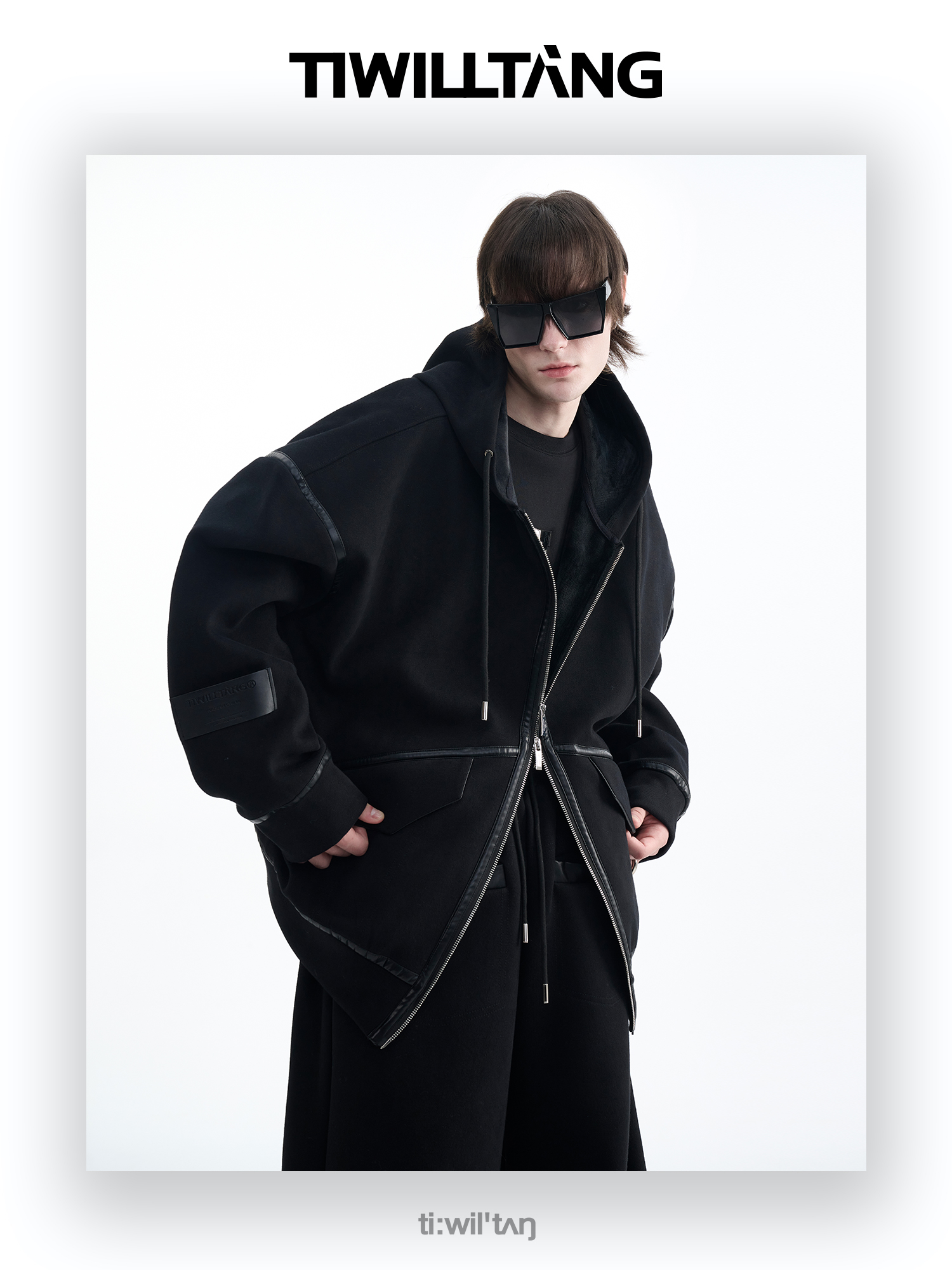 TIWILLTANG启世录“凛迹宇轶”重磅加绒加厚拼皮分割连帽慵懒卫衣