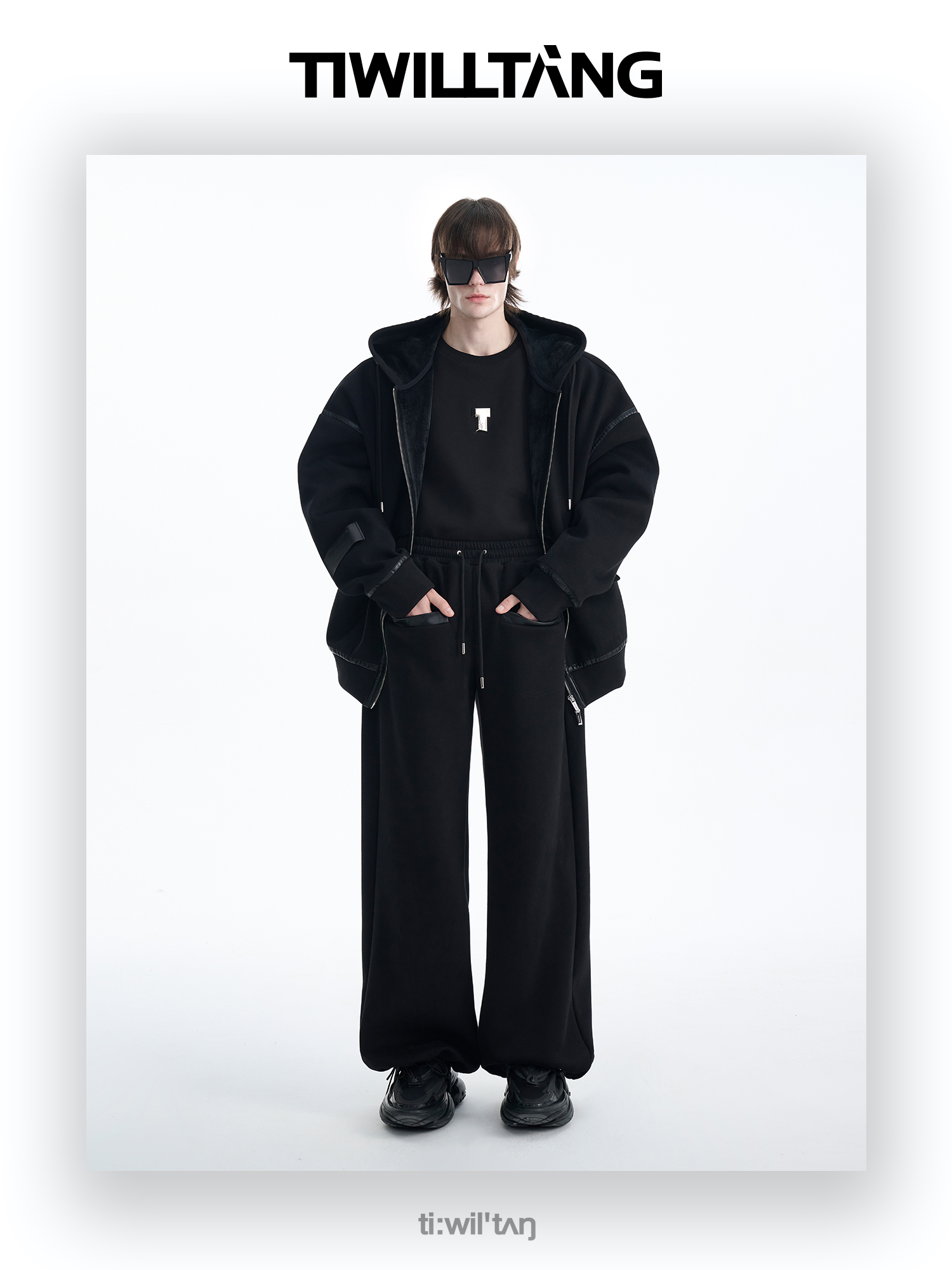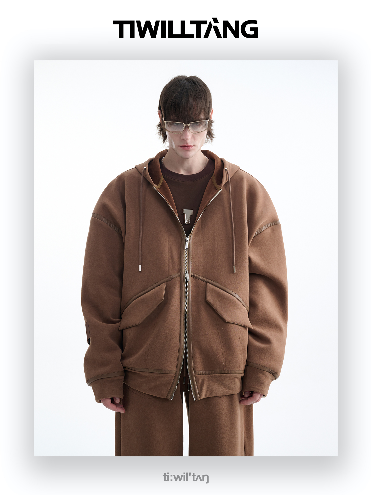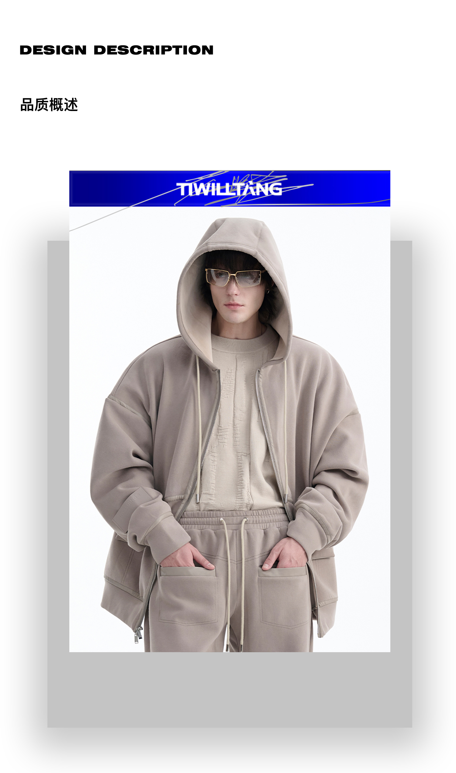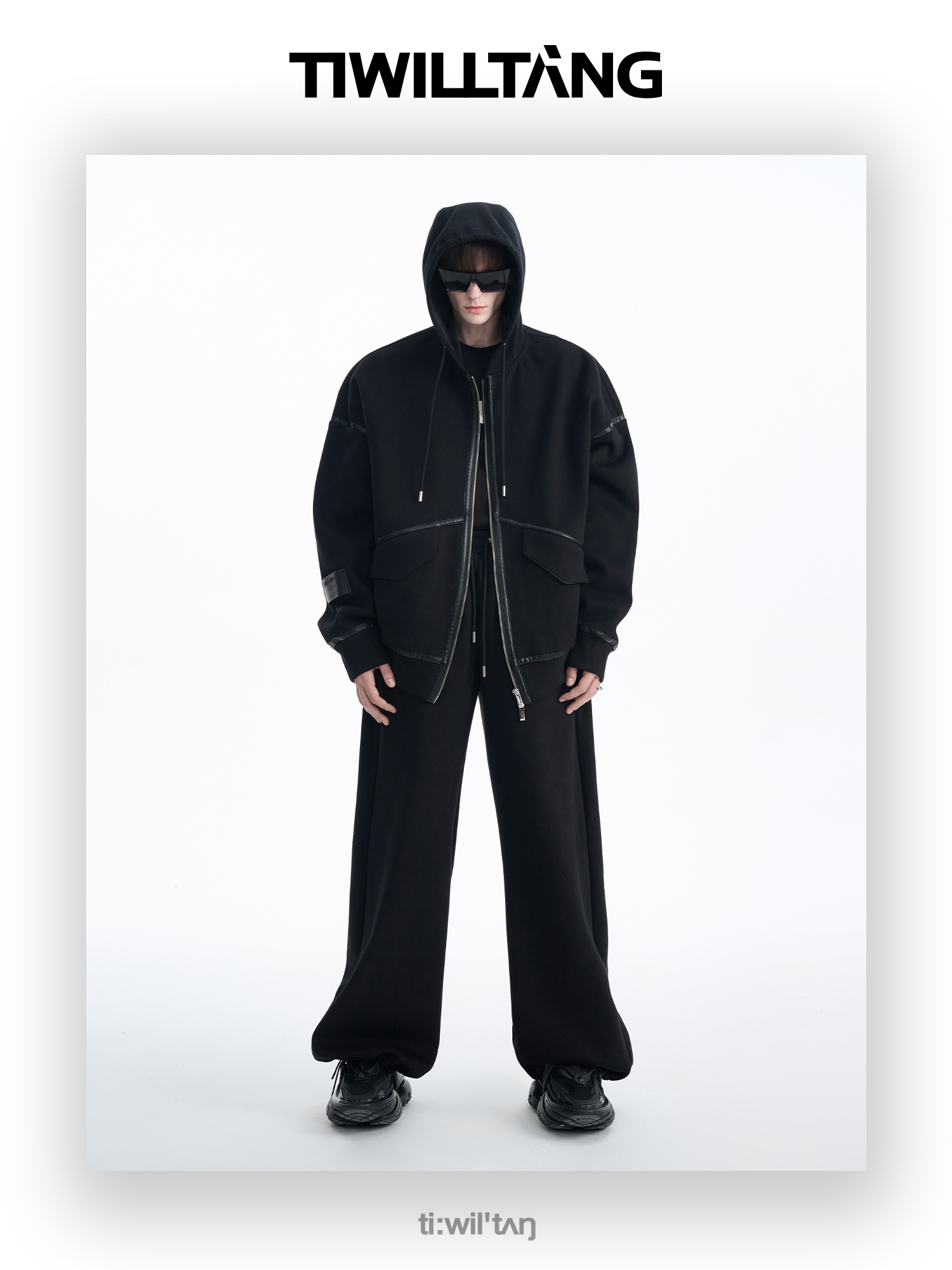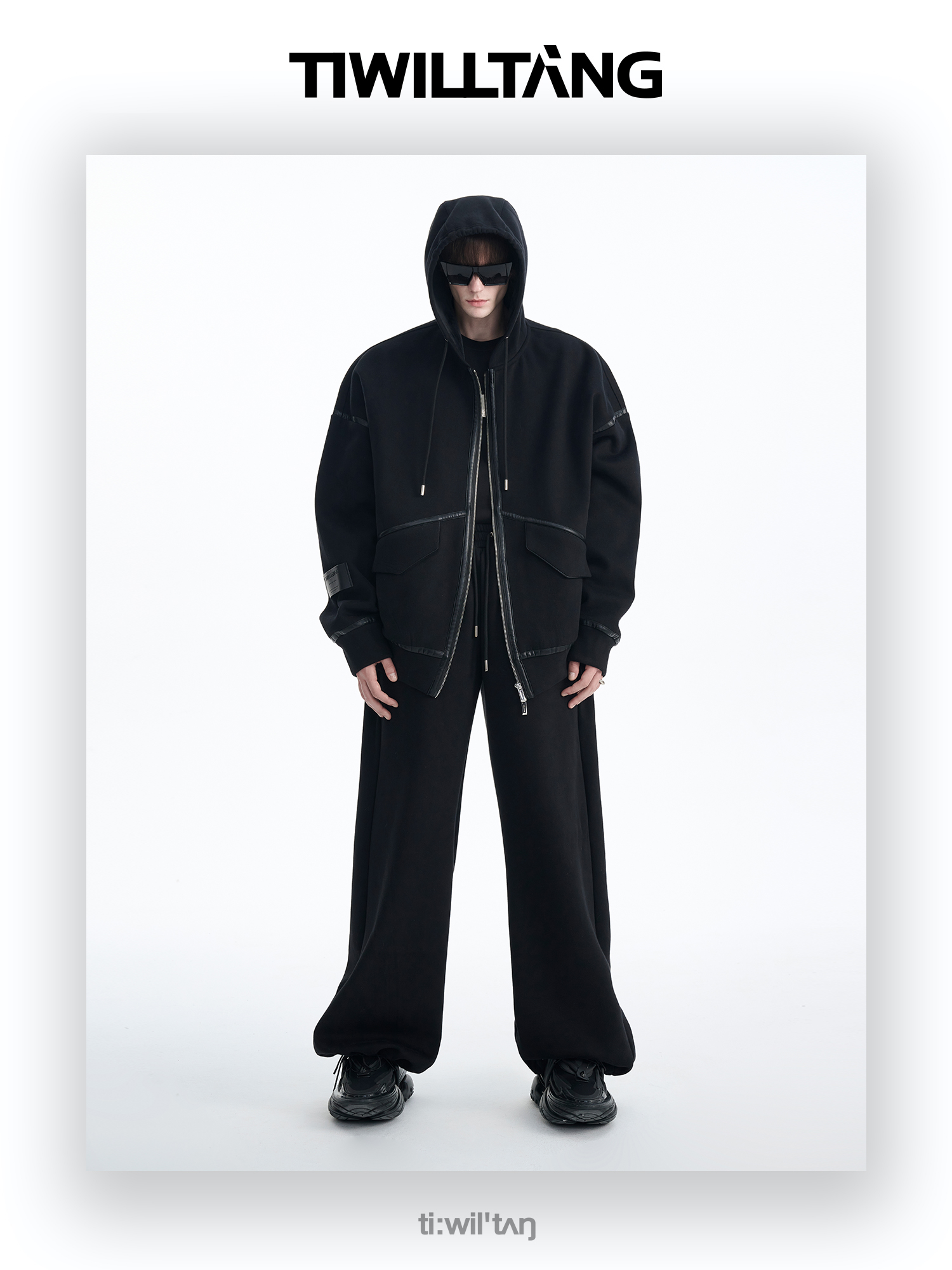 TIWILLTANG启世录“凛迹宇轶”重磅加绒加厚拼皮分割连帽慵懒卫衣