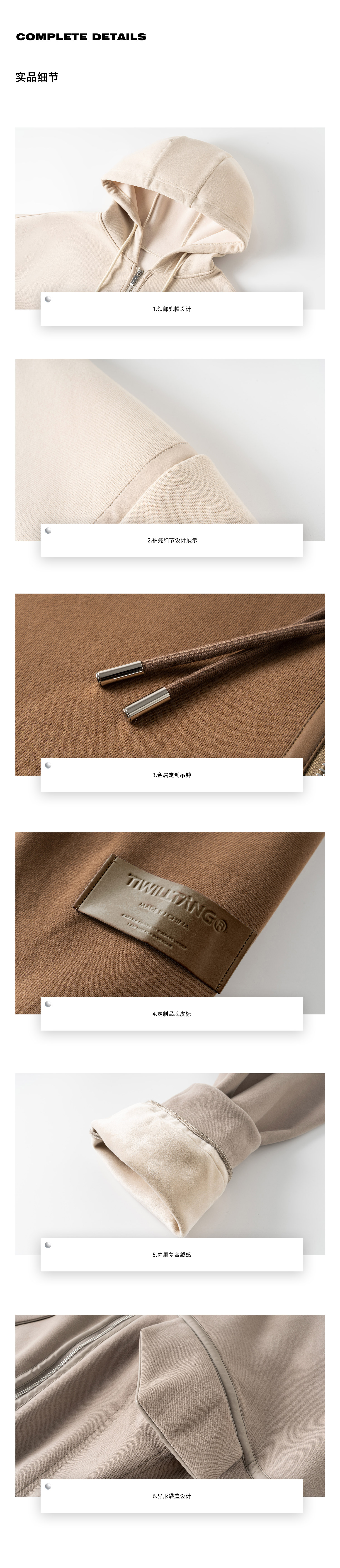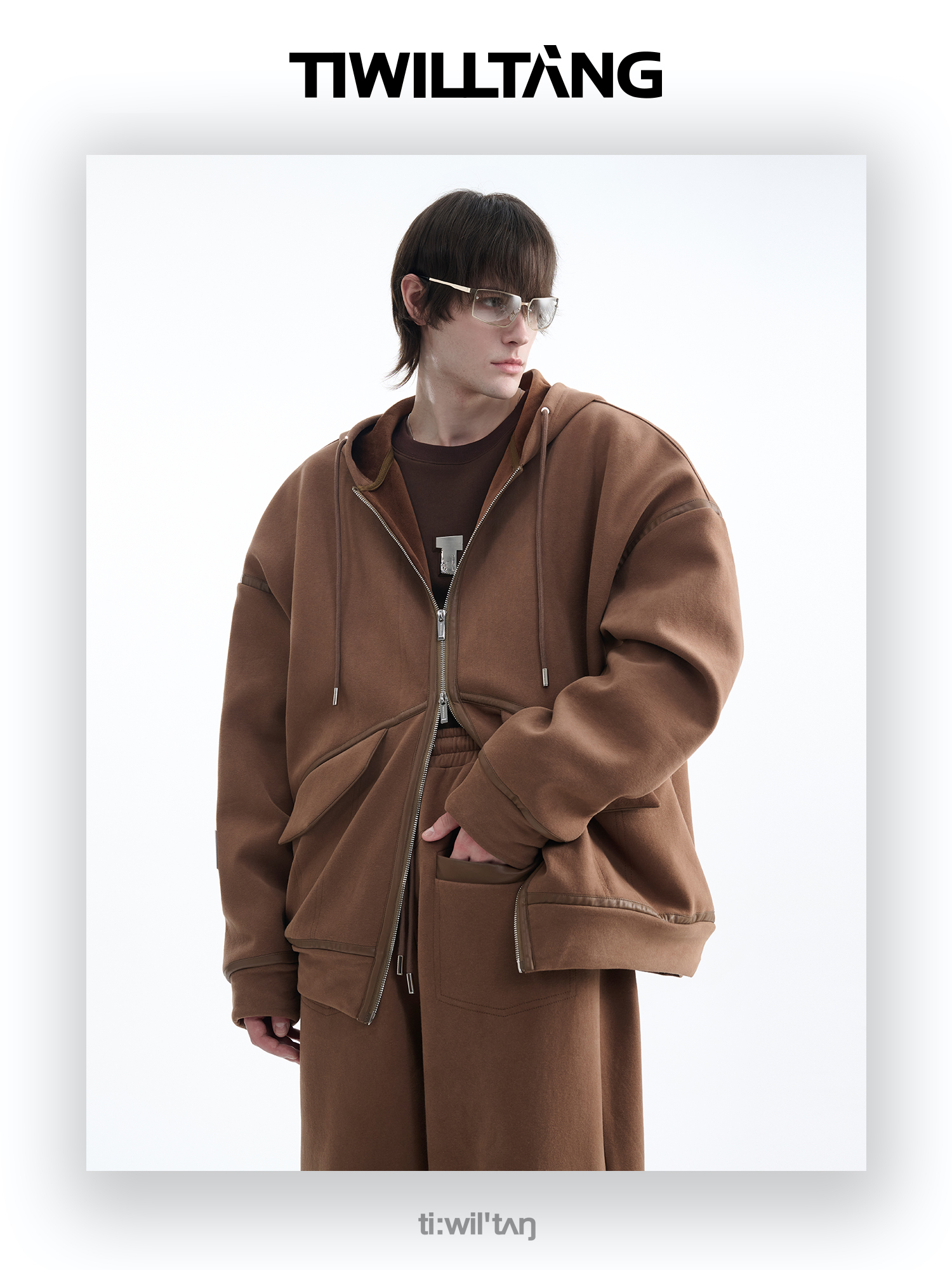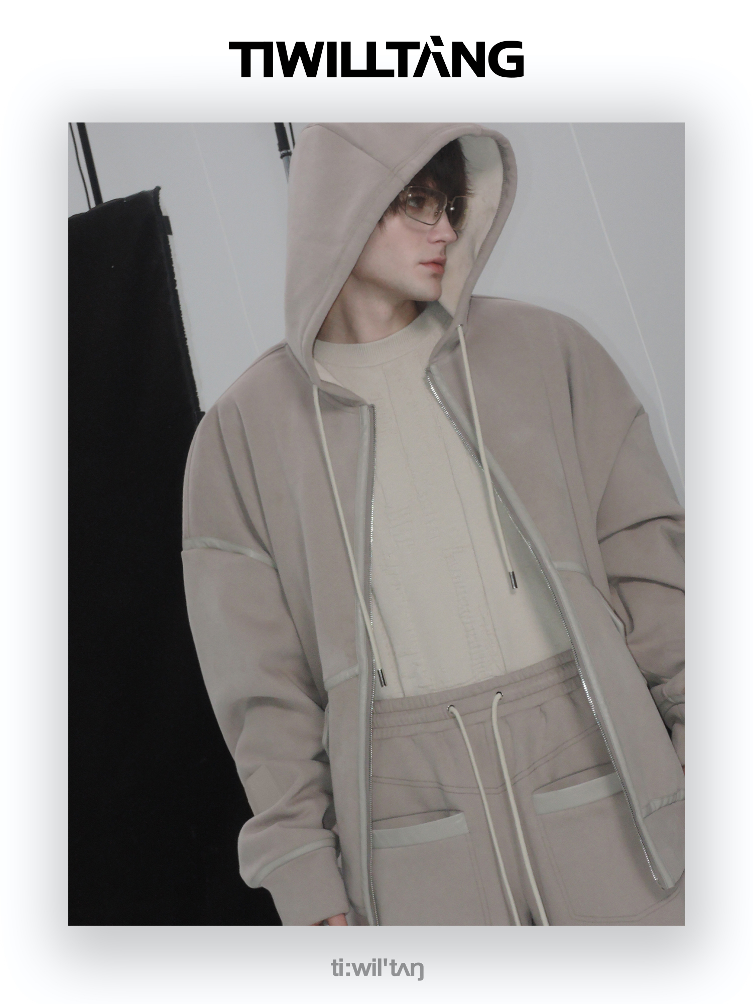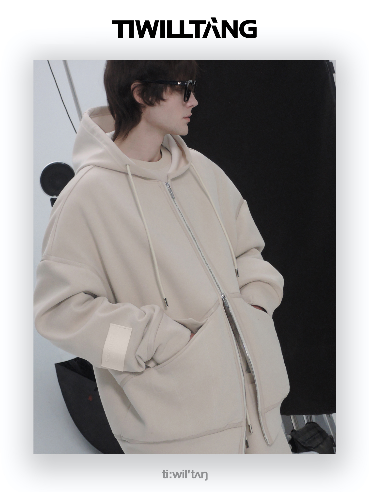 TIWILLTANG启世录“凛迹宇轶”重磅加绒加厚拼皮分割连帽慵懒卫衣