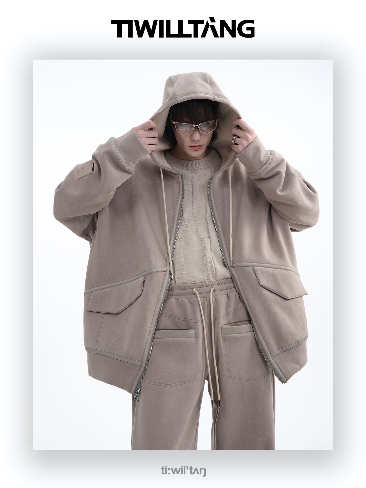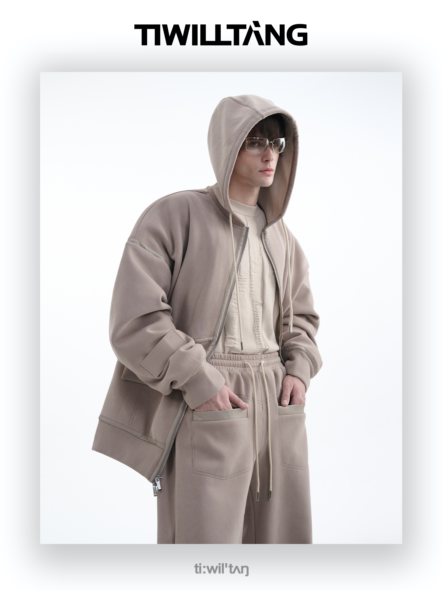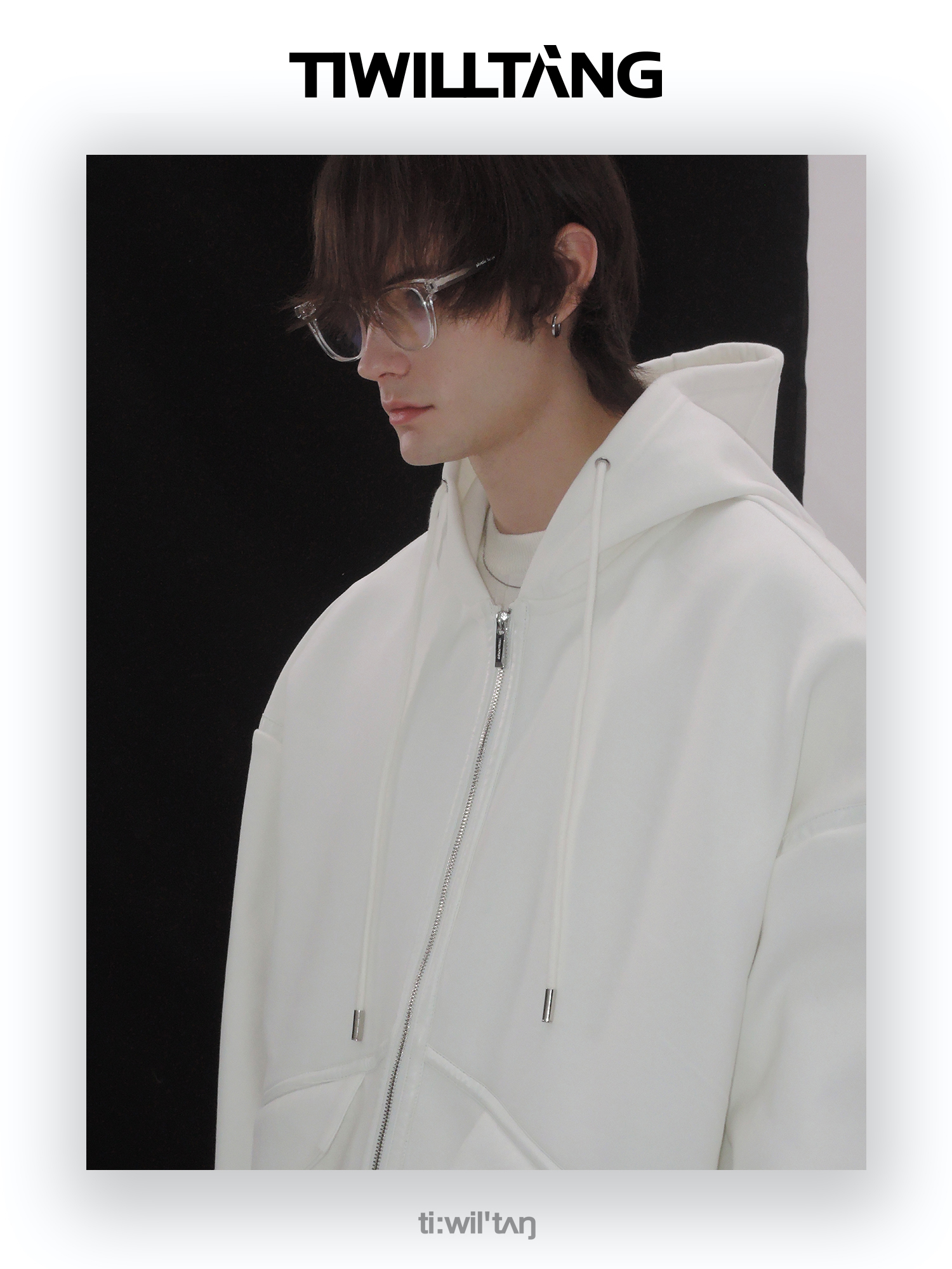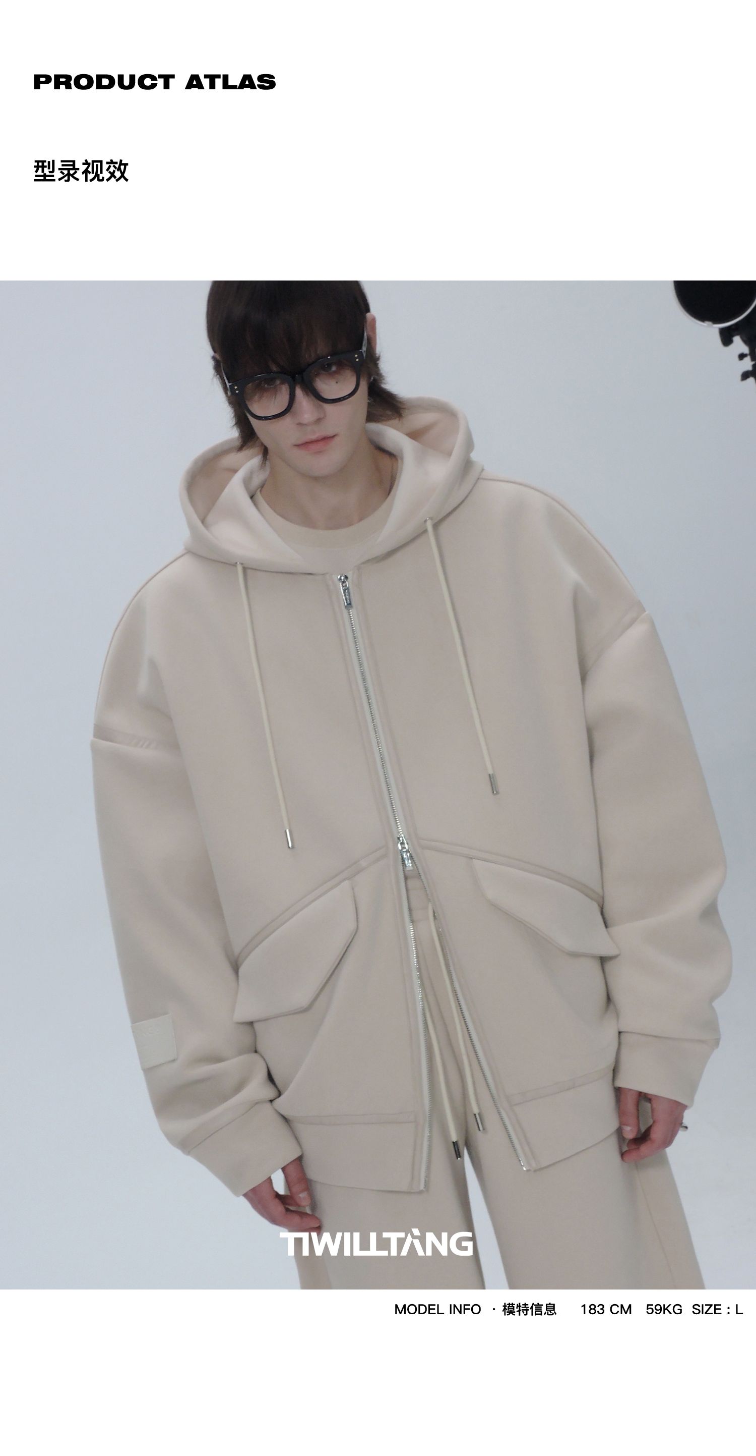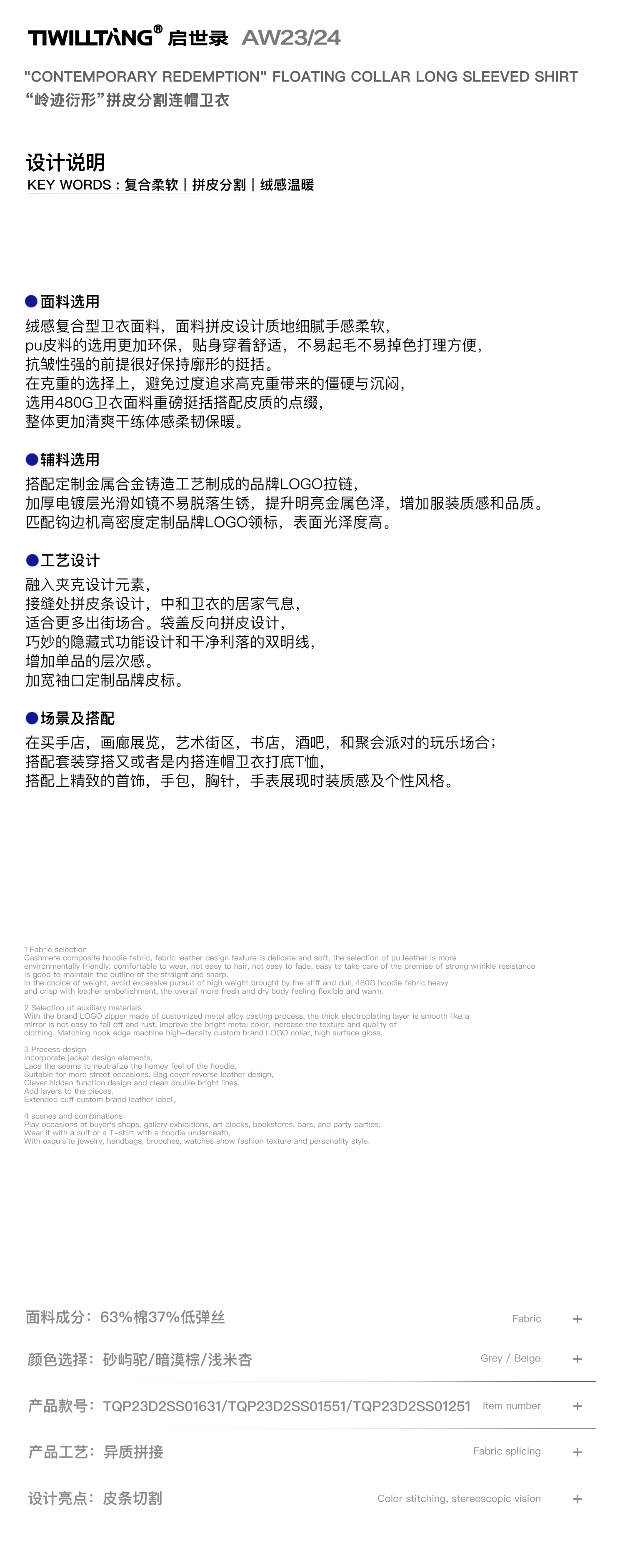 TIWILLTANG启世录“凛迹宇轶”重磅加绒加厚拼皮分割连帽慵懒卫衣