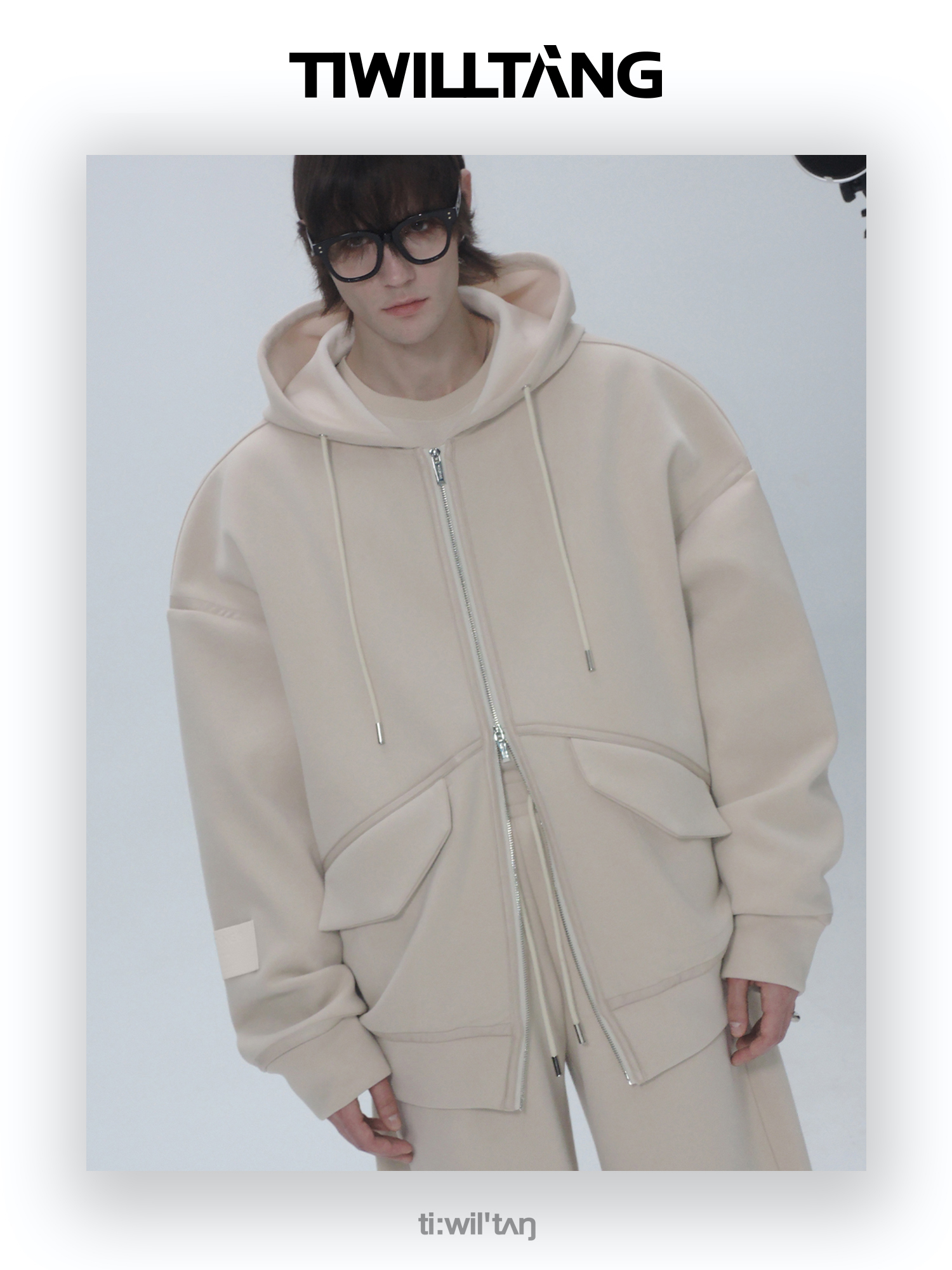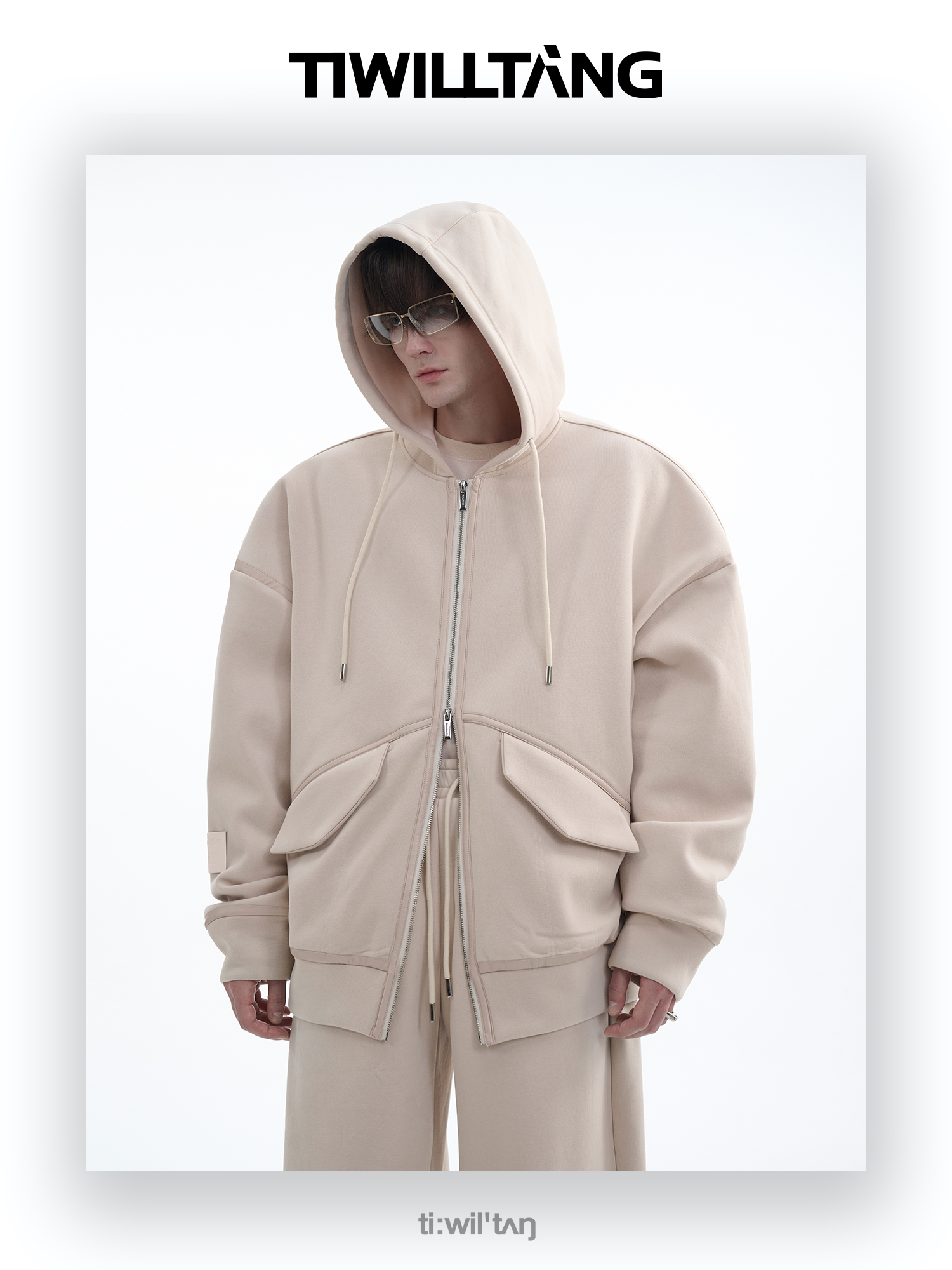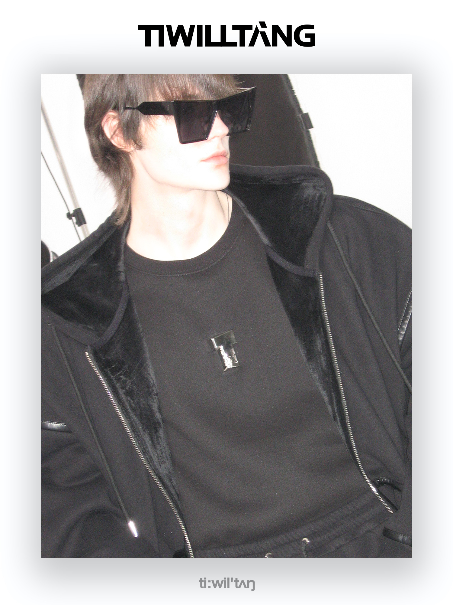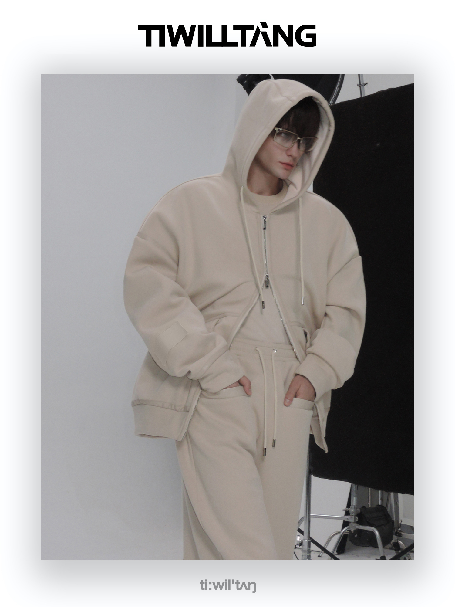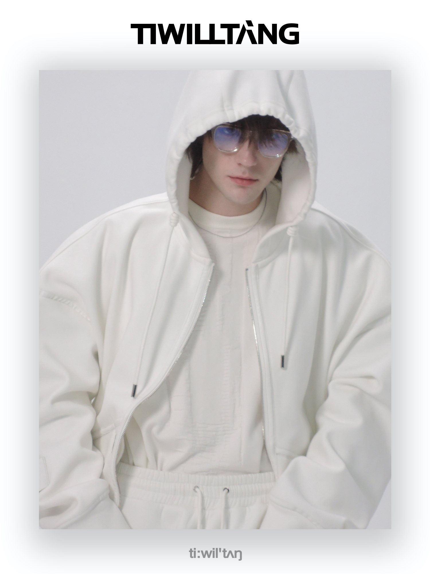 TIWILLTANG启世录“凛迹宇轶”重磅加绒加厚拼皮分割连帽慵懒卫衣