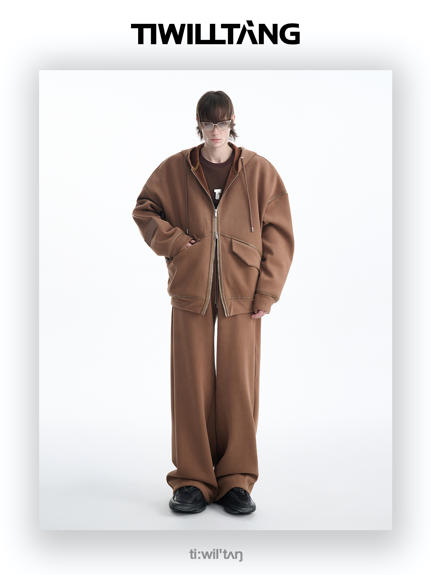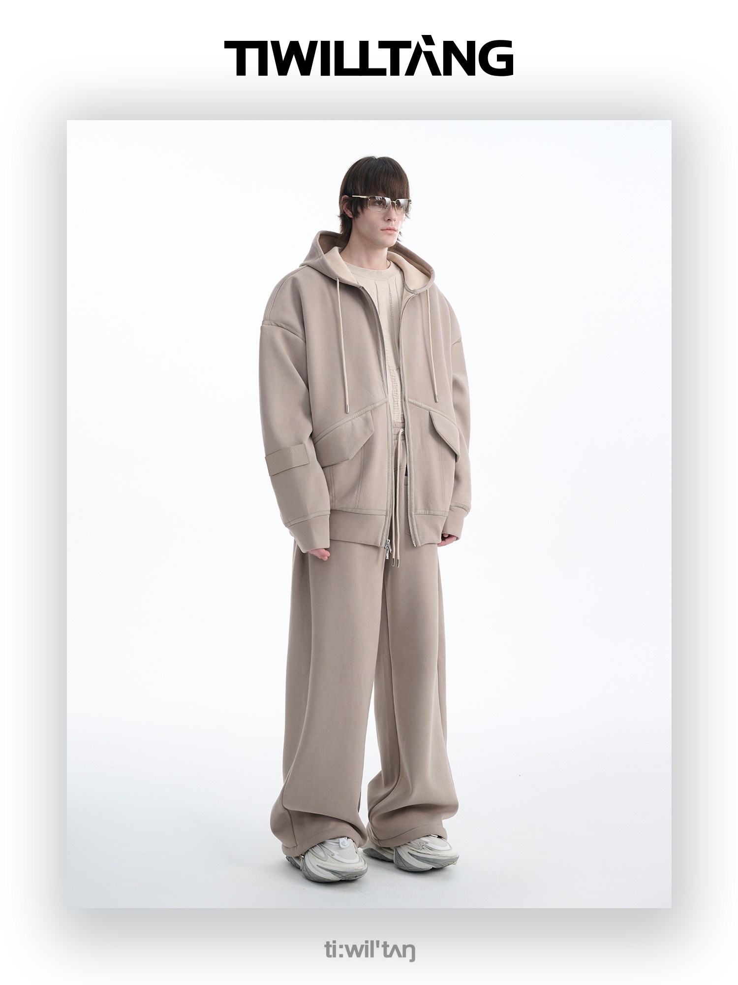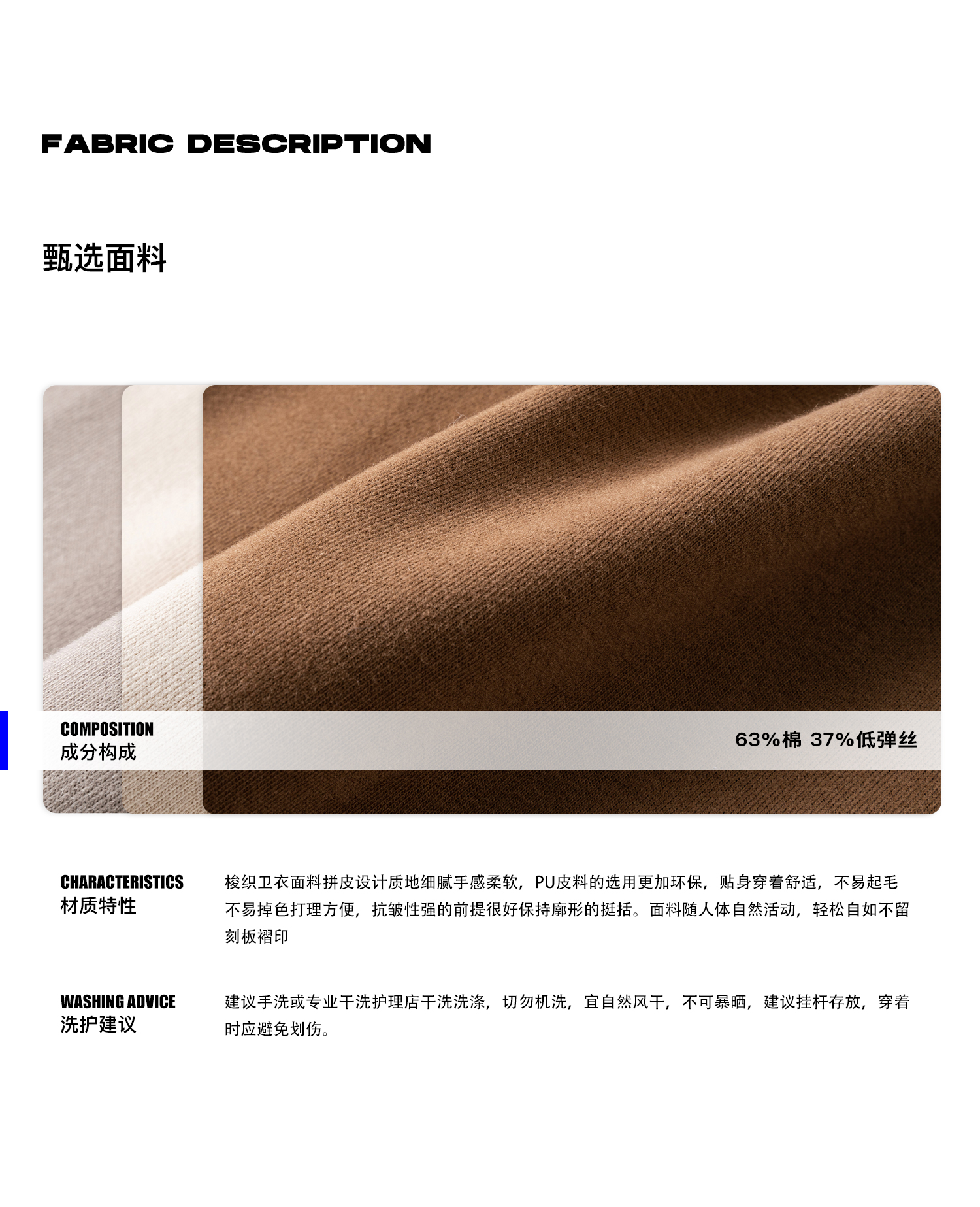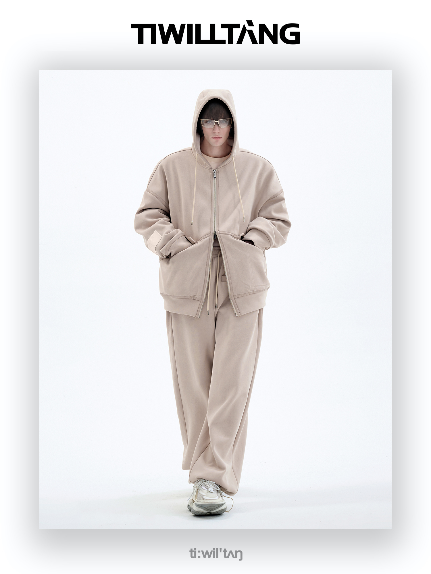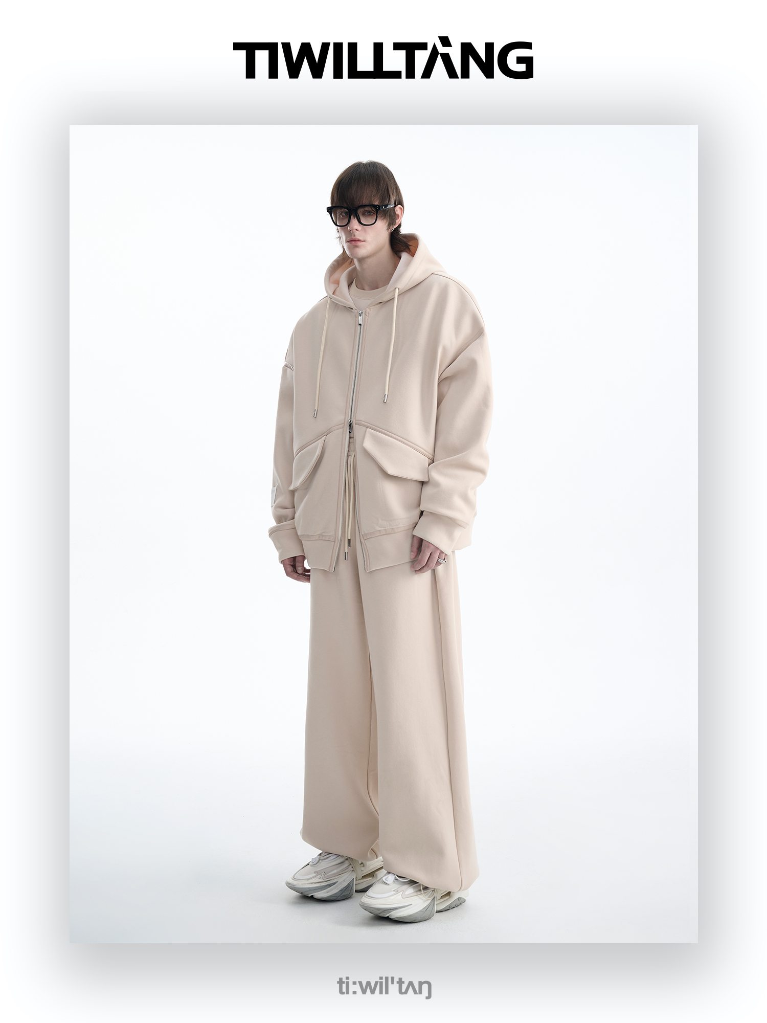TIWILLTANG启世录“凛迹宇轶”重磅加绒加厚拼皮分割连帽慵懒卫衣